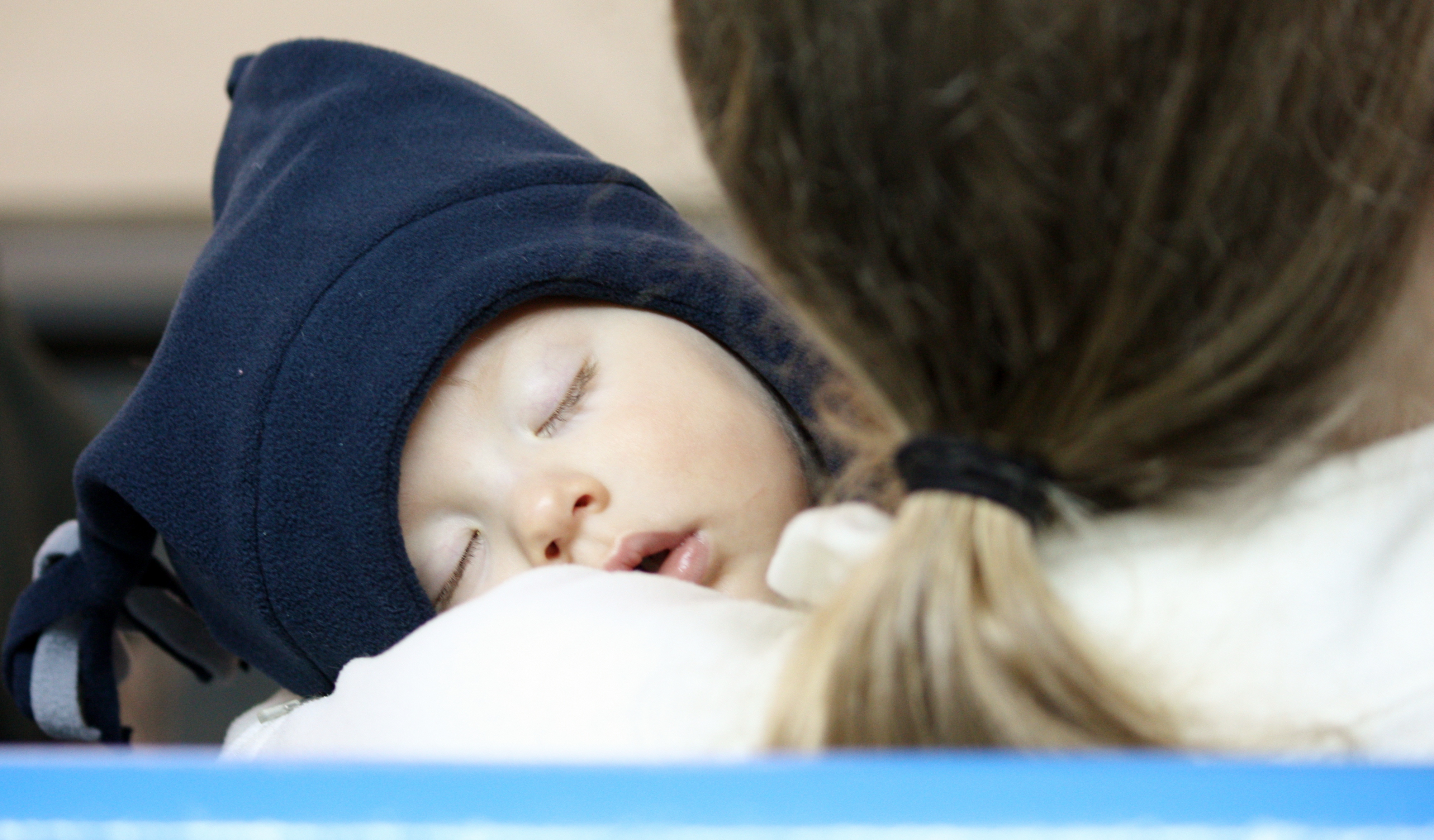 Jacqueline watches the game while Theodore smiles. We were in Quebec for Sebastian’s hockey tournament