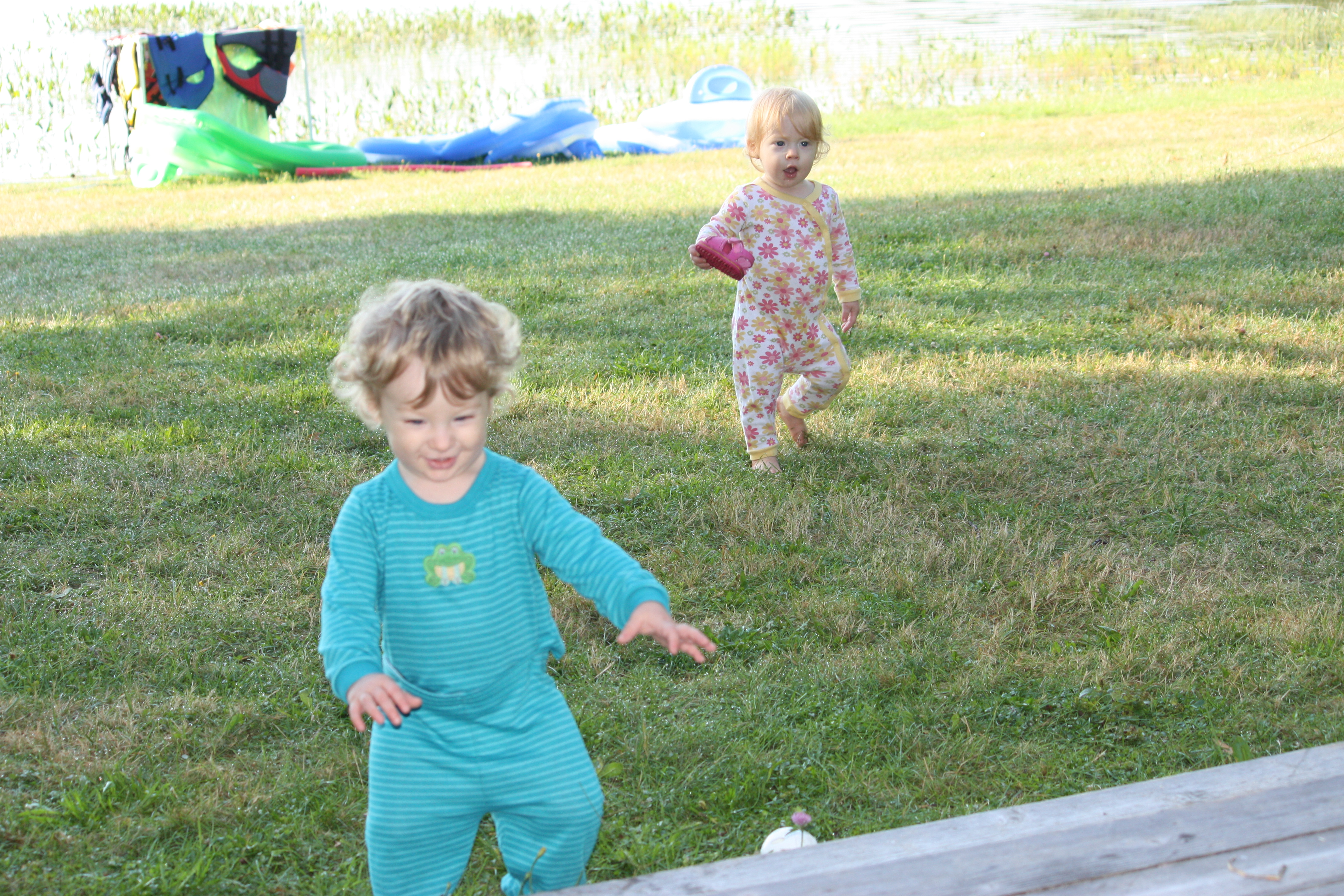 I have also included several photos from the twins first summer vacation, when we spent a week in Maine. During that week, the pictures will show how much the twins enjoyed the soft lawn and open areas around the rental house. They were so happy to come and go as they pleased. We had a great time at a beautiful place, just being a family.