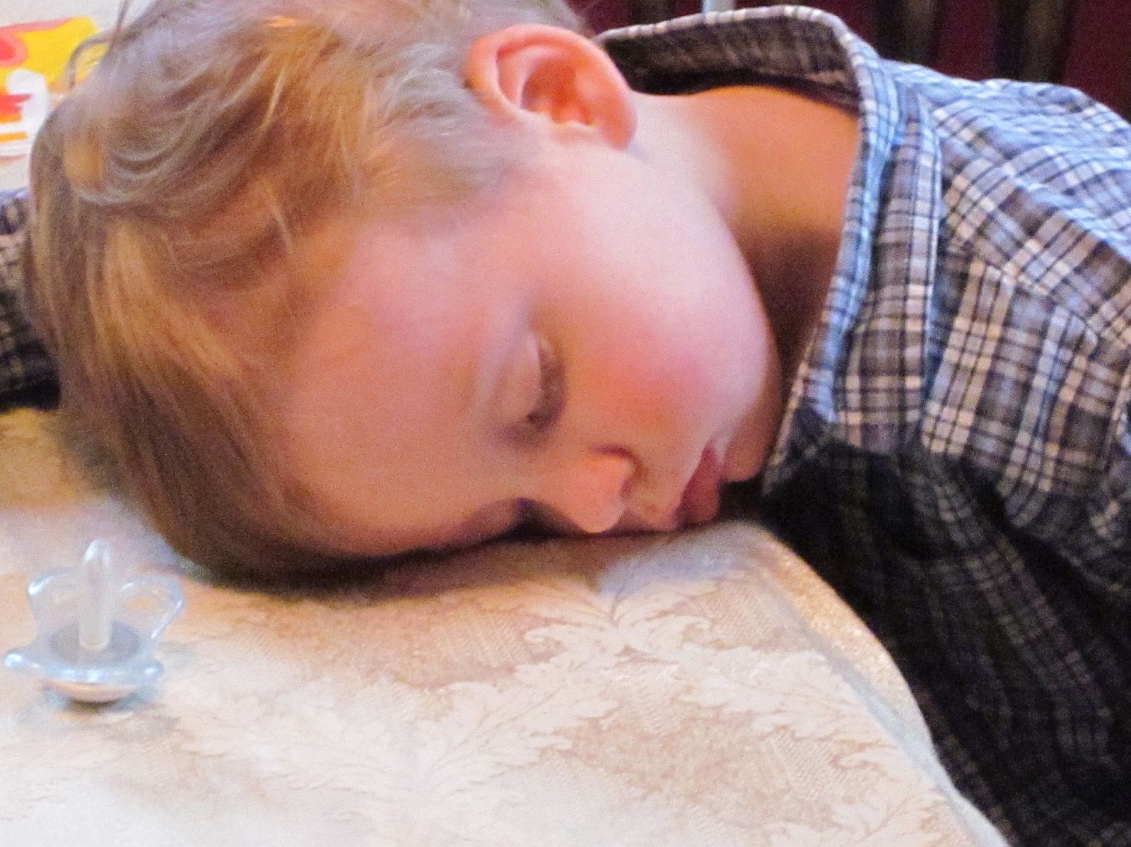 Theodore sleeps on the dinner table. Easter Sunday in CT