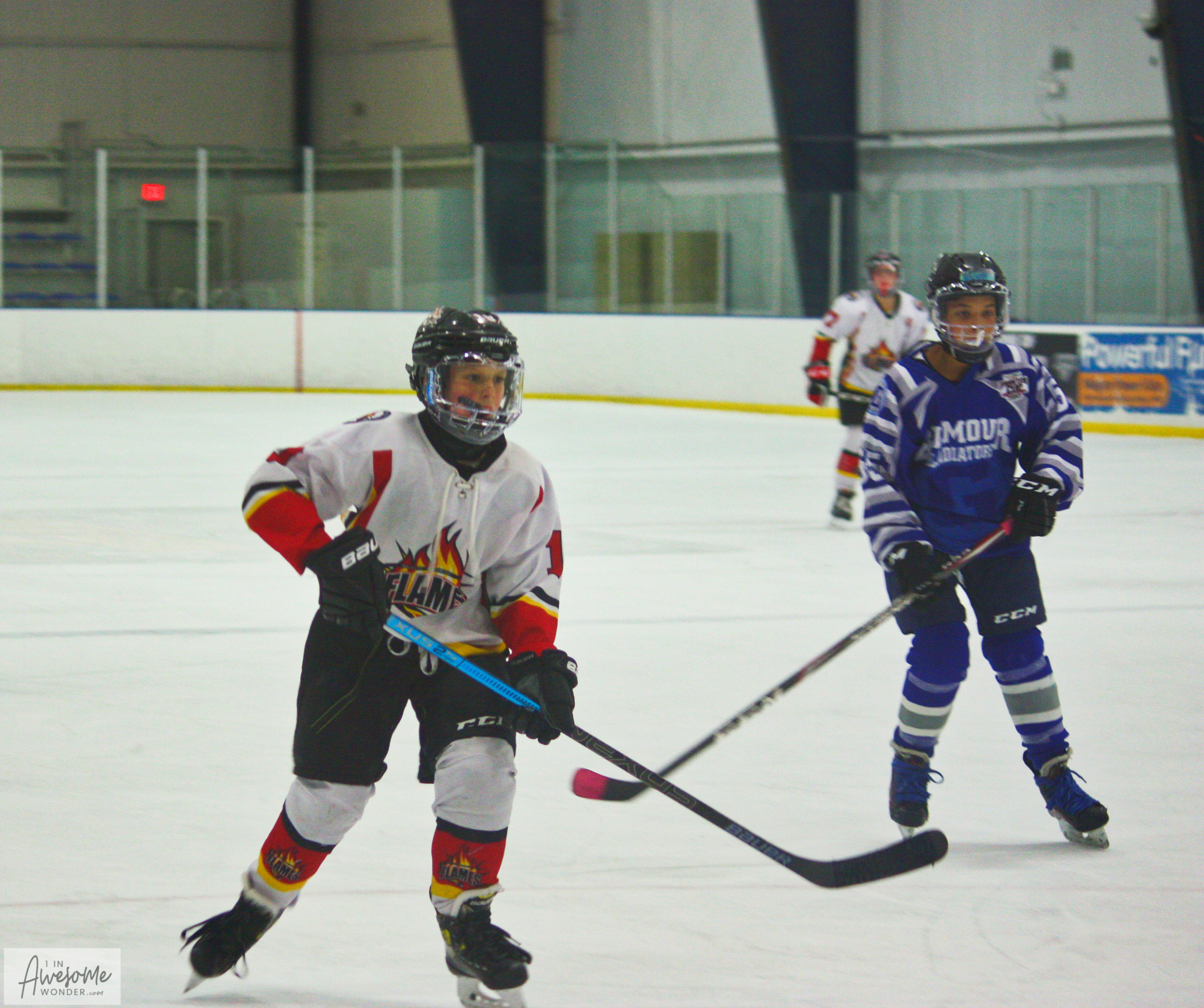 Game 3 featured the Flames against the Gilmour (Ohio) Gladiators. The 2010 Flames took a 1-0 lead when Caleb Powers put a heavy shot on goal and the rebound came out to Gavin Petrie who put the puck into the back of the net. Gilmour tied the game at 1-1, late in the second period on a shot from the right wing circle. The Flames had speed and intensity going all game long. This combination led to five penalties called on Gilmour with all of them being penalties that impeded the Flames from skating away from their opponent. The fifth one paid off for the Flames when Sean McGee scored from Soucy after a face-off win. The shot came from the left wing and hit the Gilmour goaltender inside the left pad and slid through the five-hole for the game-winning goal.