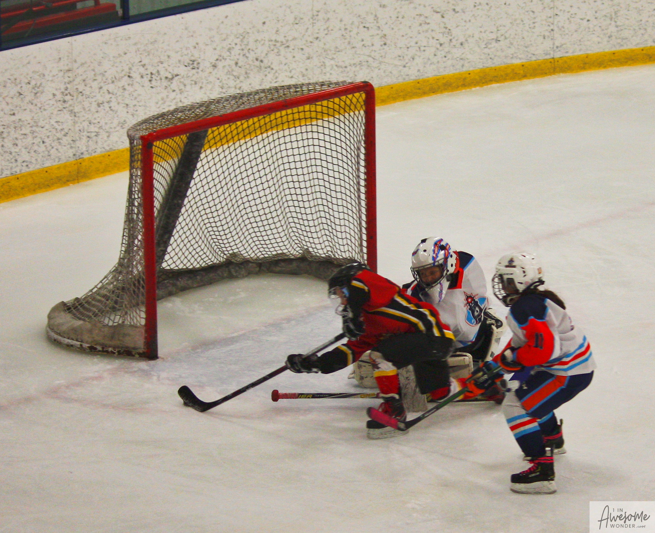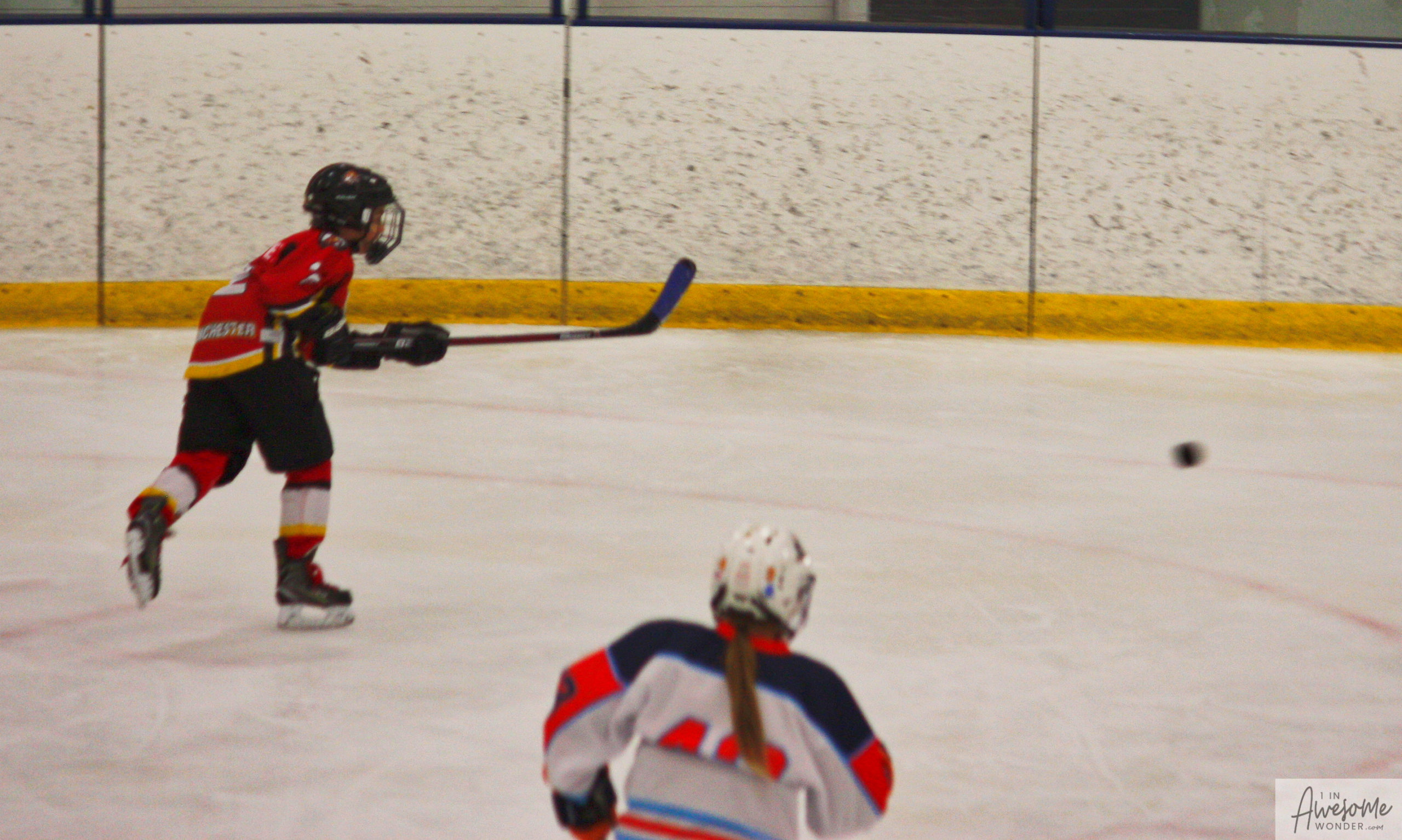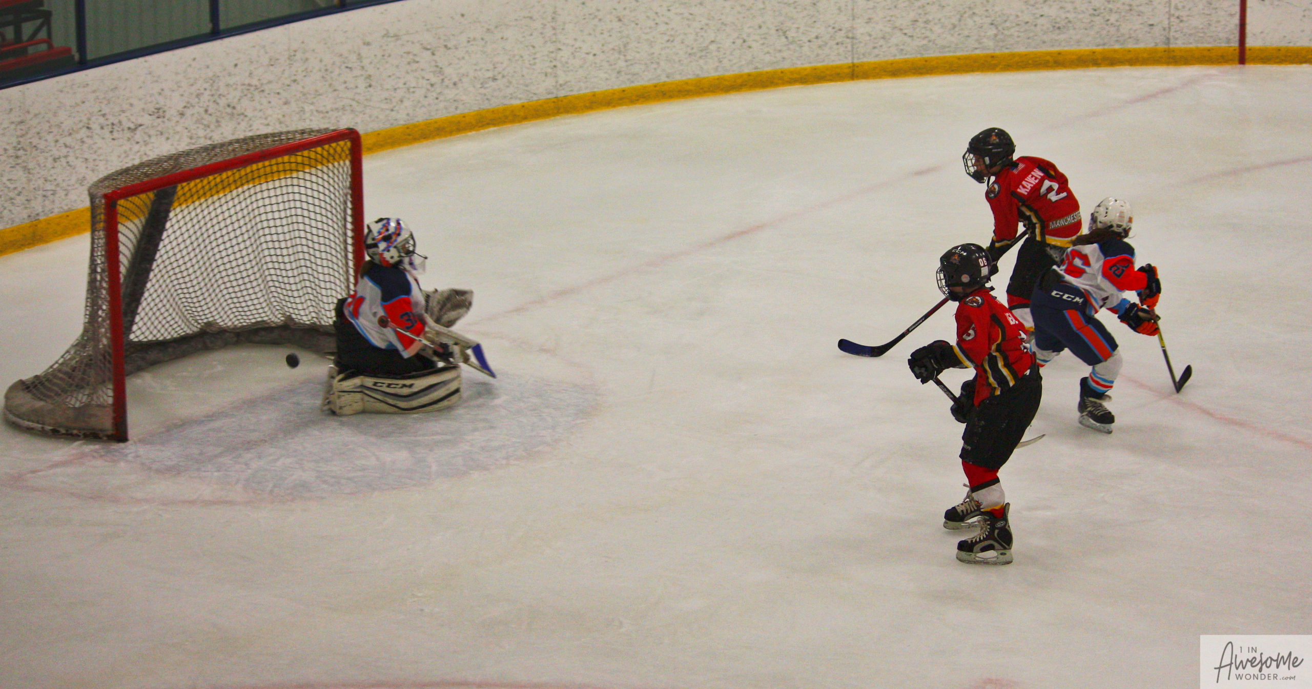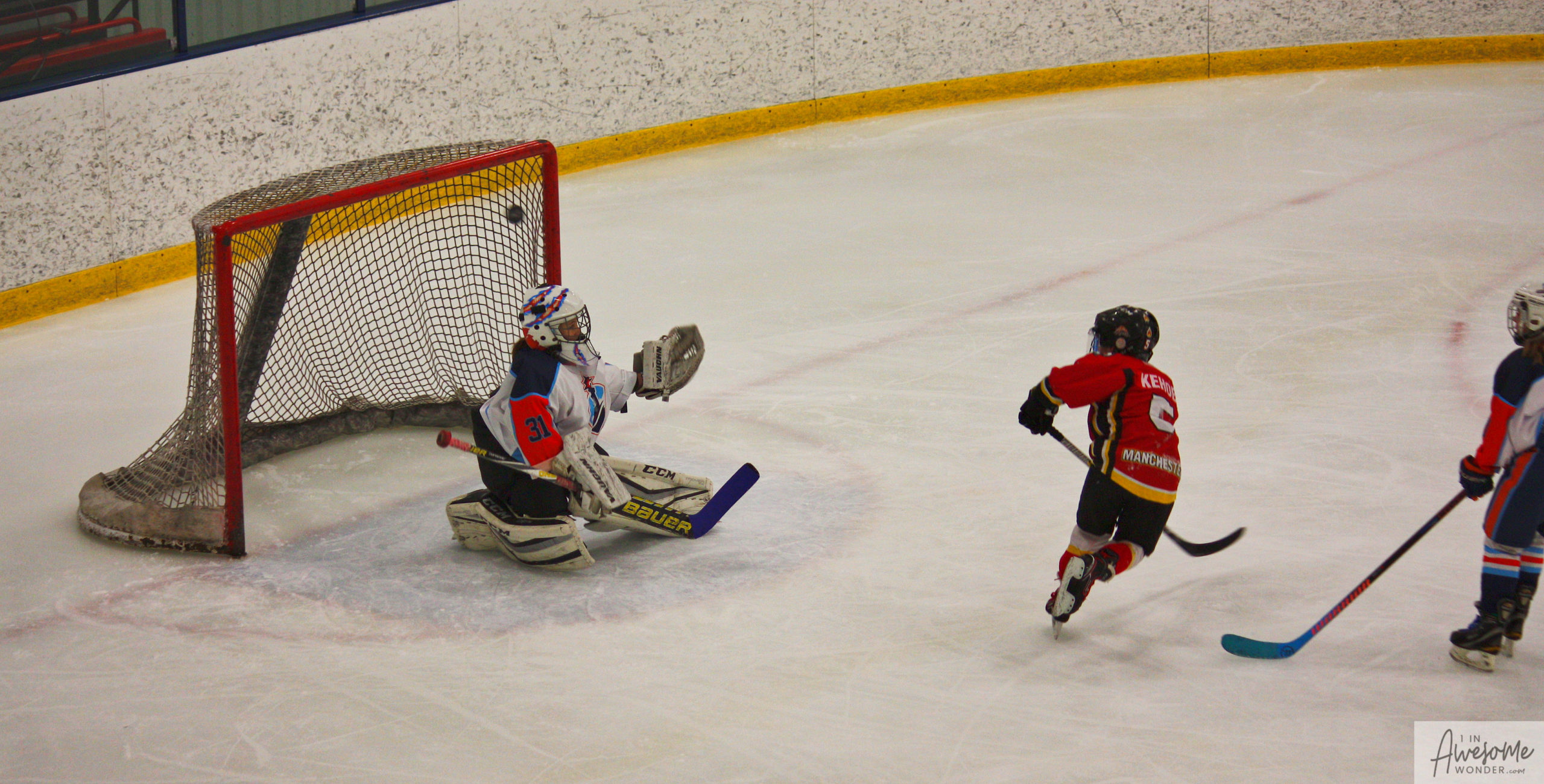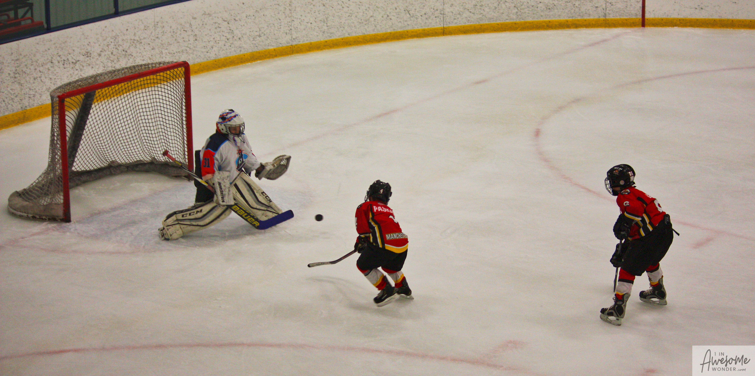 Ian does his best “Mark Messier off-wing wrister” (look it up), while Teddy runs some interference.