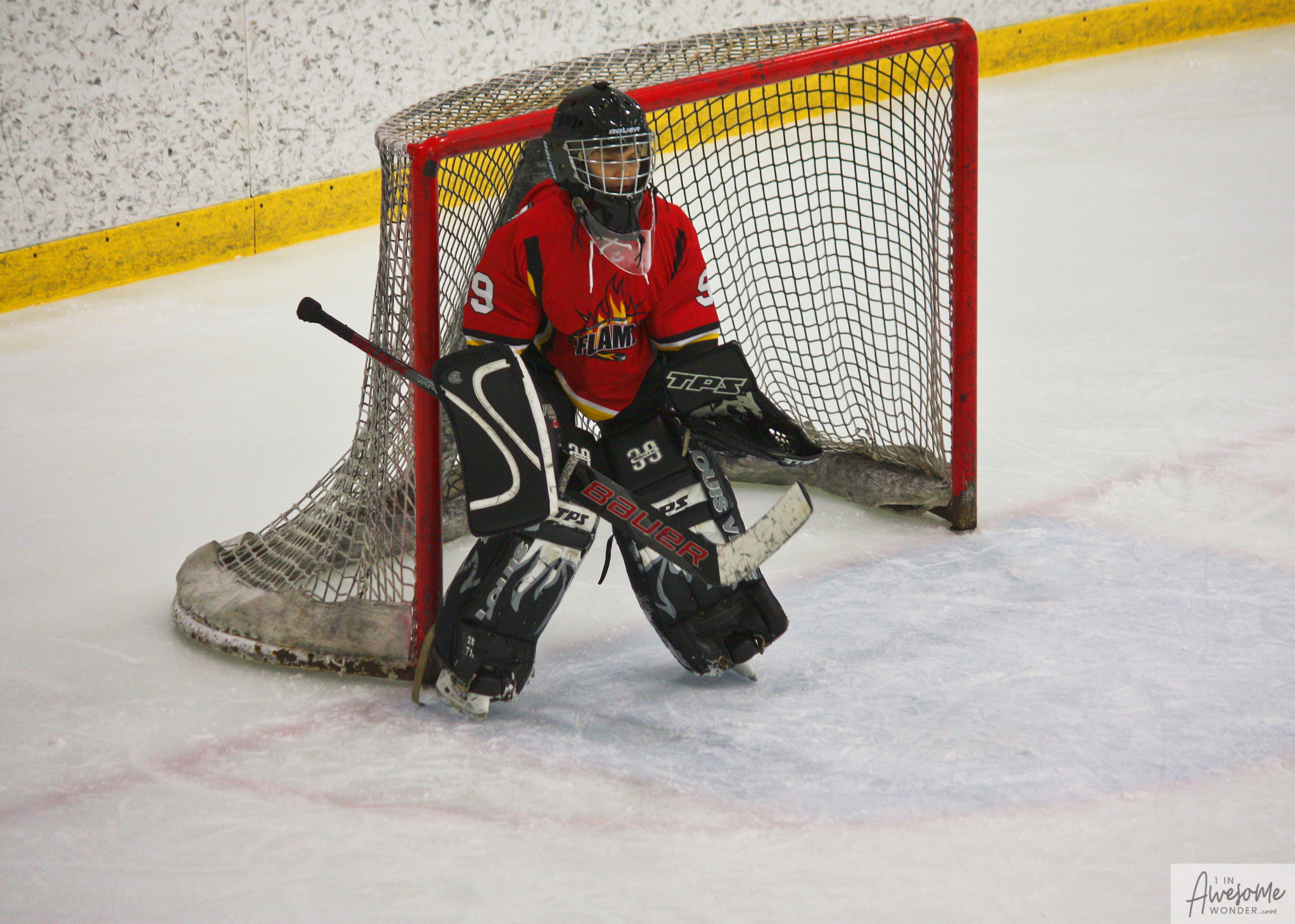 This is a goaltender in the wild, in his natural setting. If you listen closely, you might be able to hear his male parent calling, “Stick on the ice!”