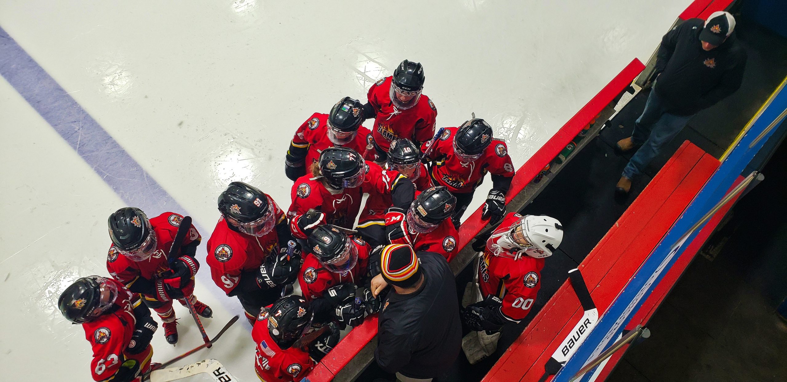 We arrived to a packed house in Concord, literally. The ice was full of public skaters and the stands full of their friends and families. The concession stand was fulfilling orders and the ice was covered with people. There was quite a layer of white snow covering the ice surface from all the traffic on the ice. Put all of that together and it was an awesome atmosphere in which to start a brand new year. Our team parents visited with one another as the skaters glided into 2022. Snacks, drinks, conversation, and laughter were the ingredients to the pre-game wait for the afternoon game. The Zamboni driver, recognizing the ice status, put 20-plus minutes into resurfacing the ice to get the sheet ready for a hockey game. Well done. I love that attention to detail and to the integrity of the game.