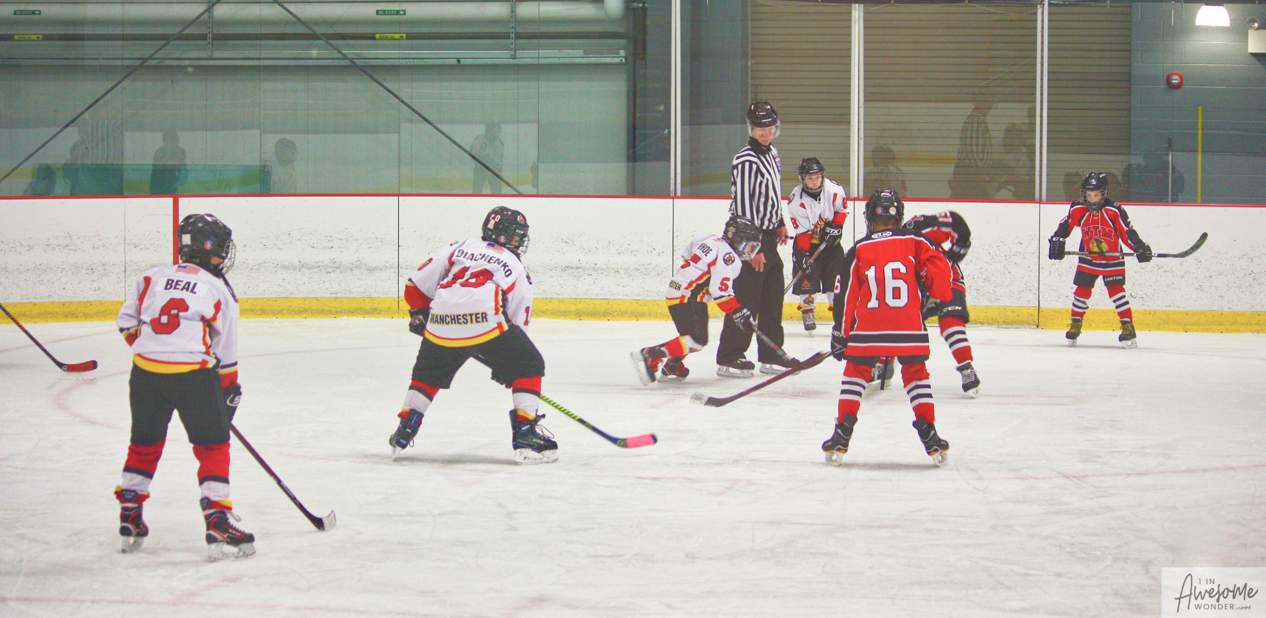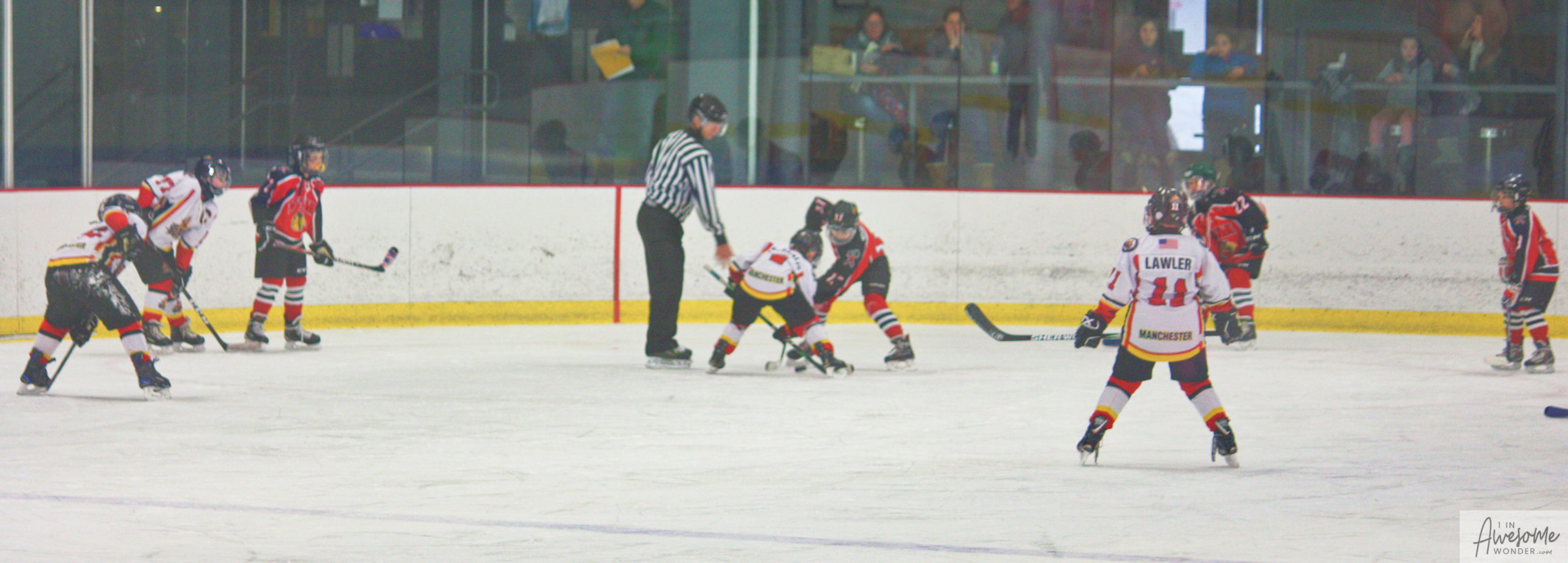 Long distance face-off photo as required by the rink.