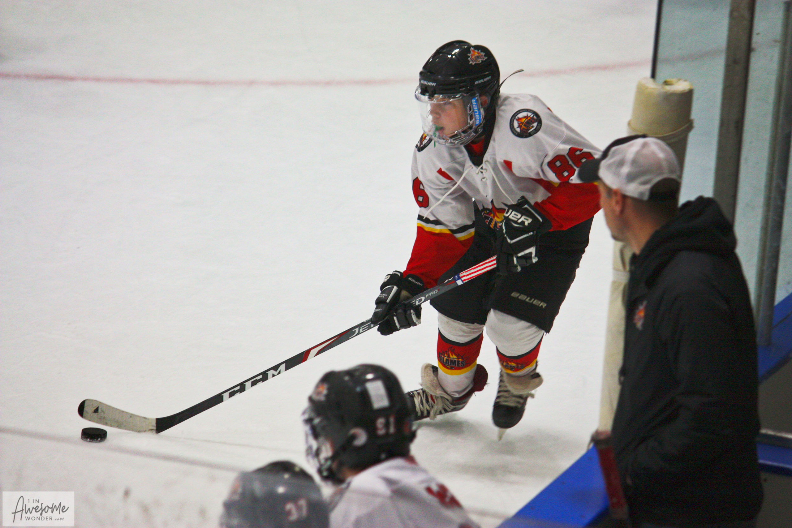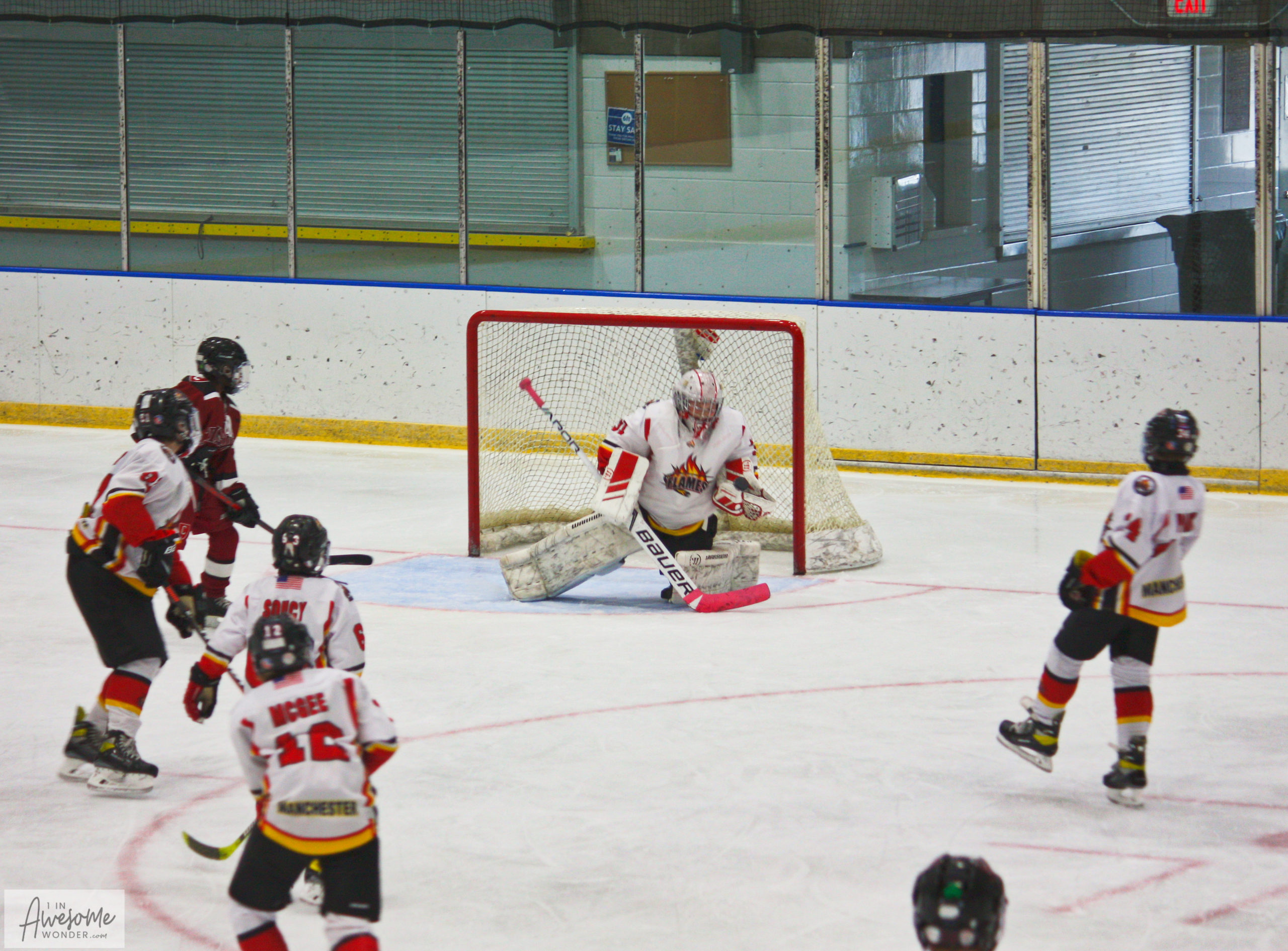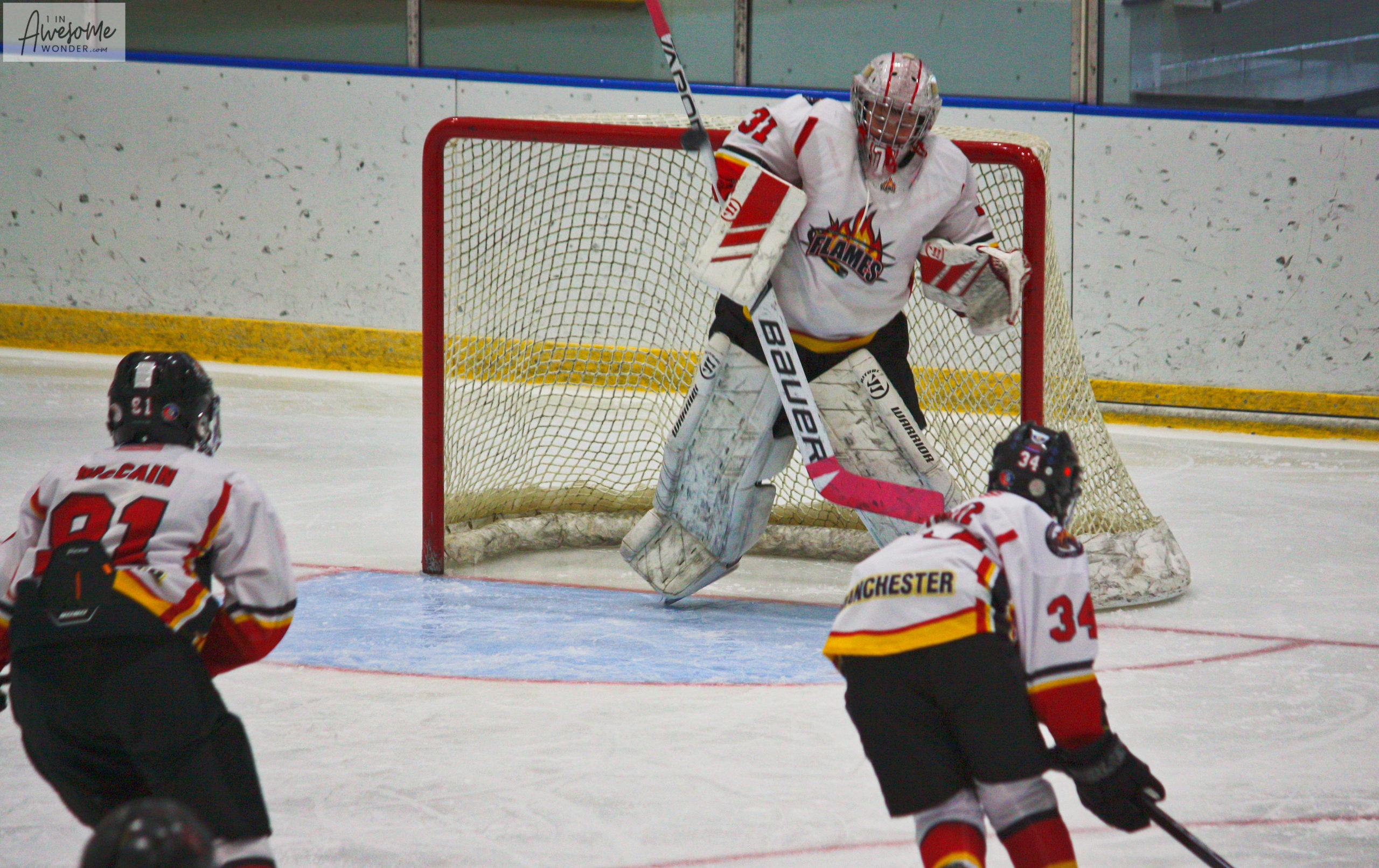 The first period of yesterday’s game could have buried the 2010 Flames as the Crimson Club 10 team stormed the offensive zone and clogged the shooting lanes in their defensive end. Despite a lopsided advantage in shots on goal, the Crimson only managed a 1-1 score after the opening period.