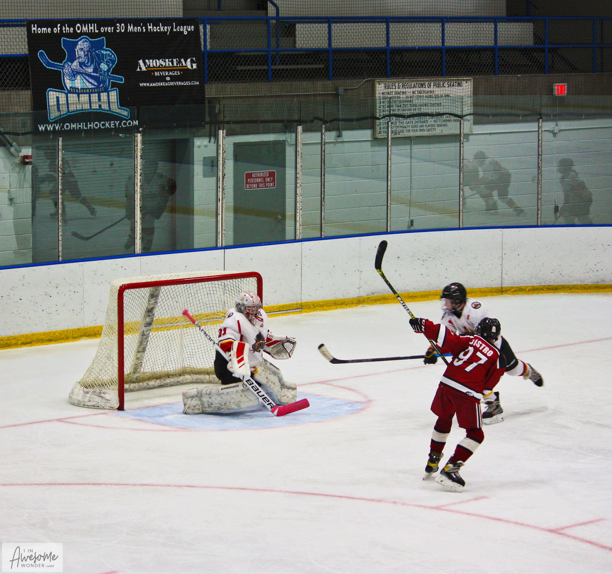 In the final period, the Flames just kept applying pressure, getting shots to the net, and breaking up Crimson rushes up ice. The home team scored goals on a nice backhand, and a quick shot before the goaltender could get set. Then the 2010 Flames punctuated the comeback with an empty net goal, to bring the final score to 7-3. The Flames were down a pair of forwards for the game, and the rest of the team stepped up to fill any void and impose their will en route to victory. It was a great team effort, as evidenced by their tireless work and a team total of 9 assists on their first 6 goals.