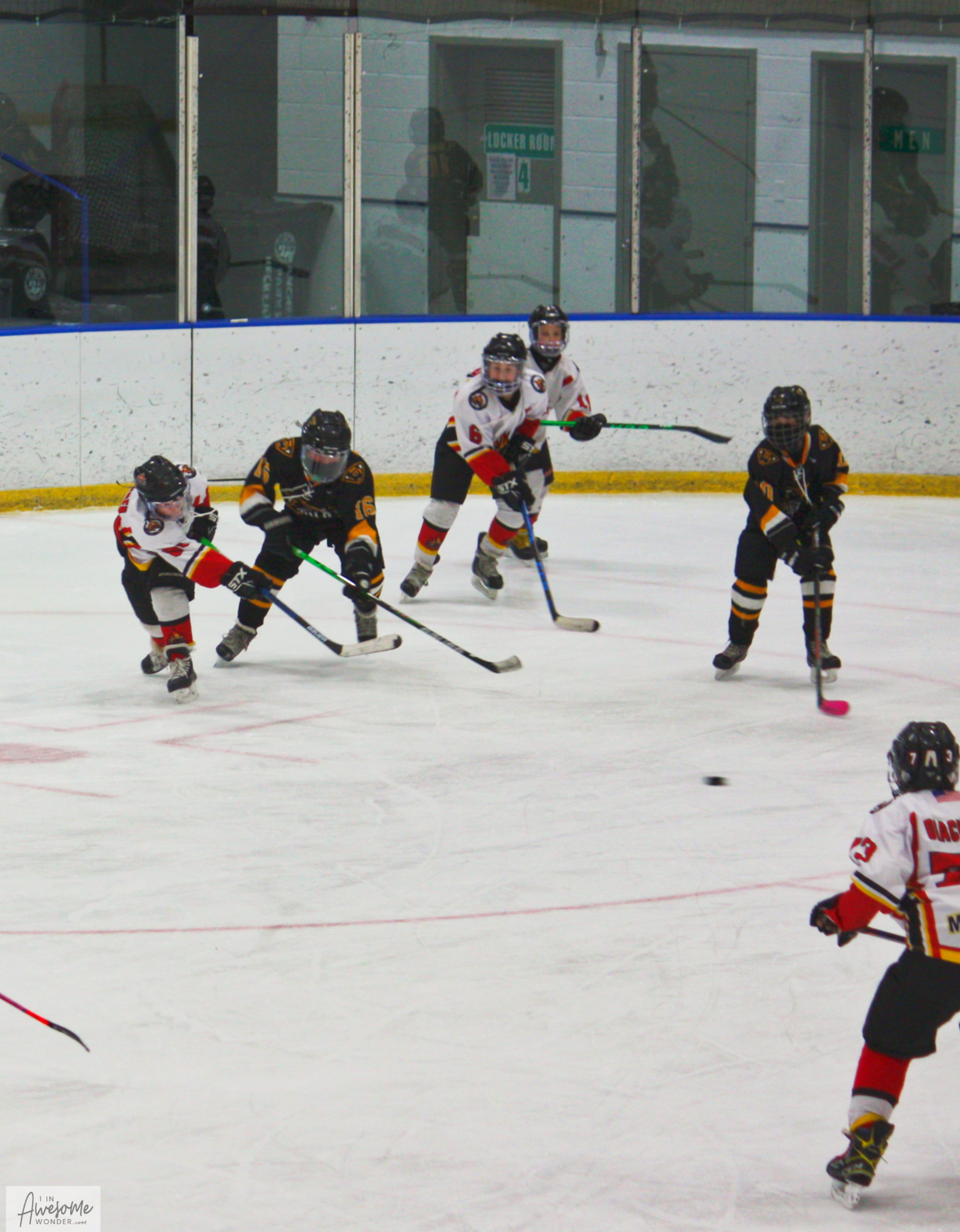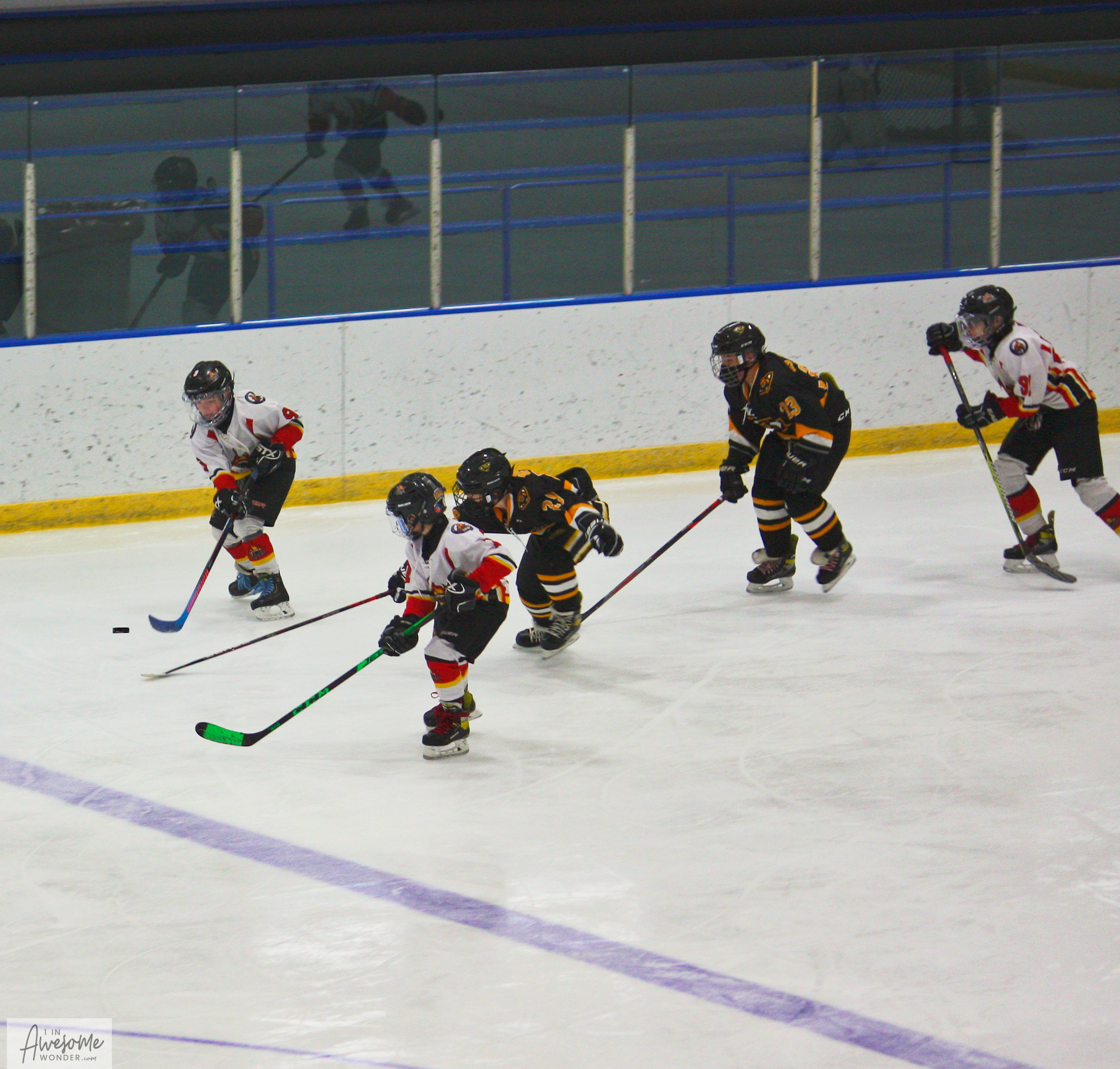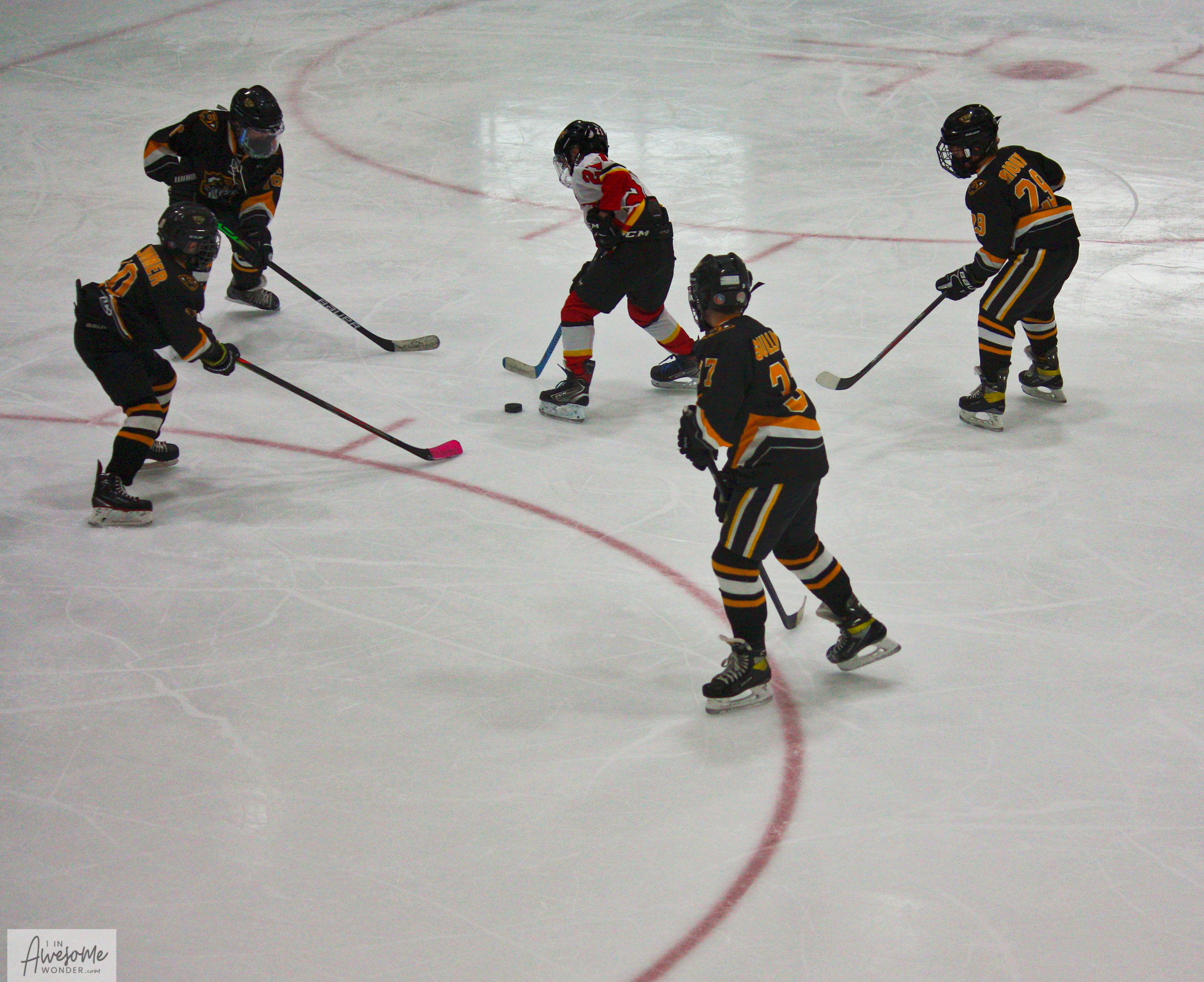 Ian leads the rush out of the zone with Jordan, Colby, Gavin, and Jax.