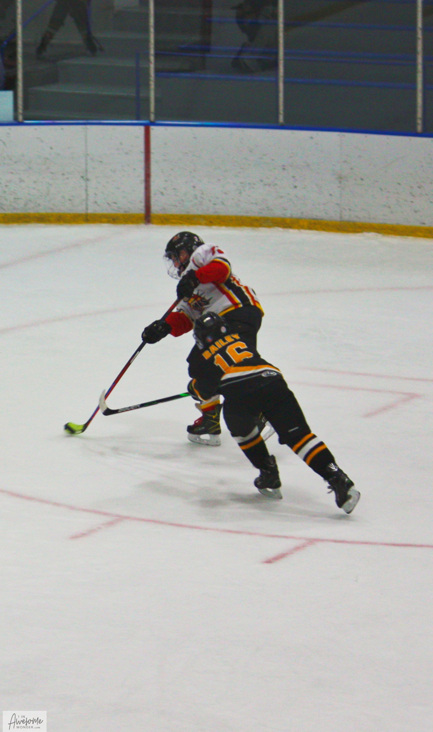 Jax leans into a shot and Soucy doesn’t look to pleased with the shot choice.