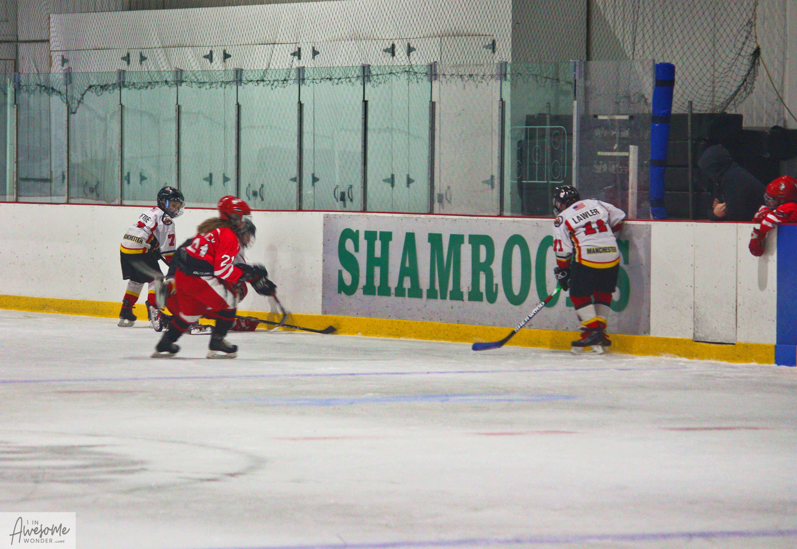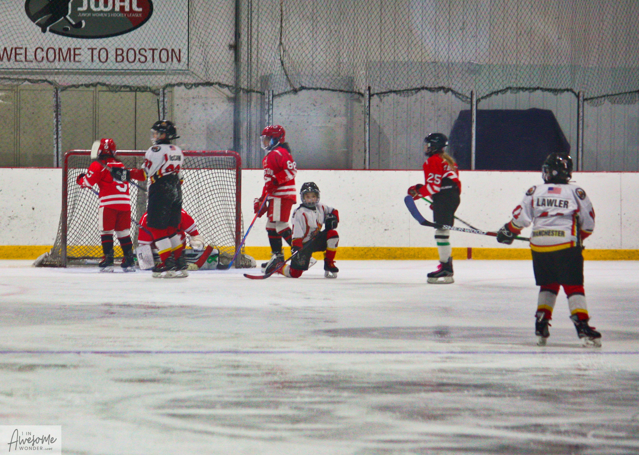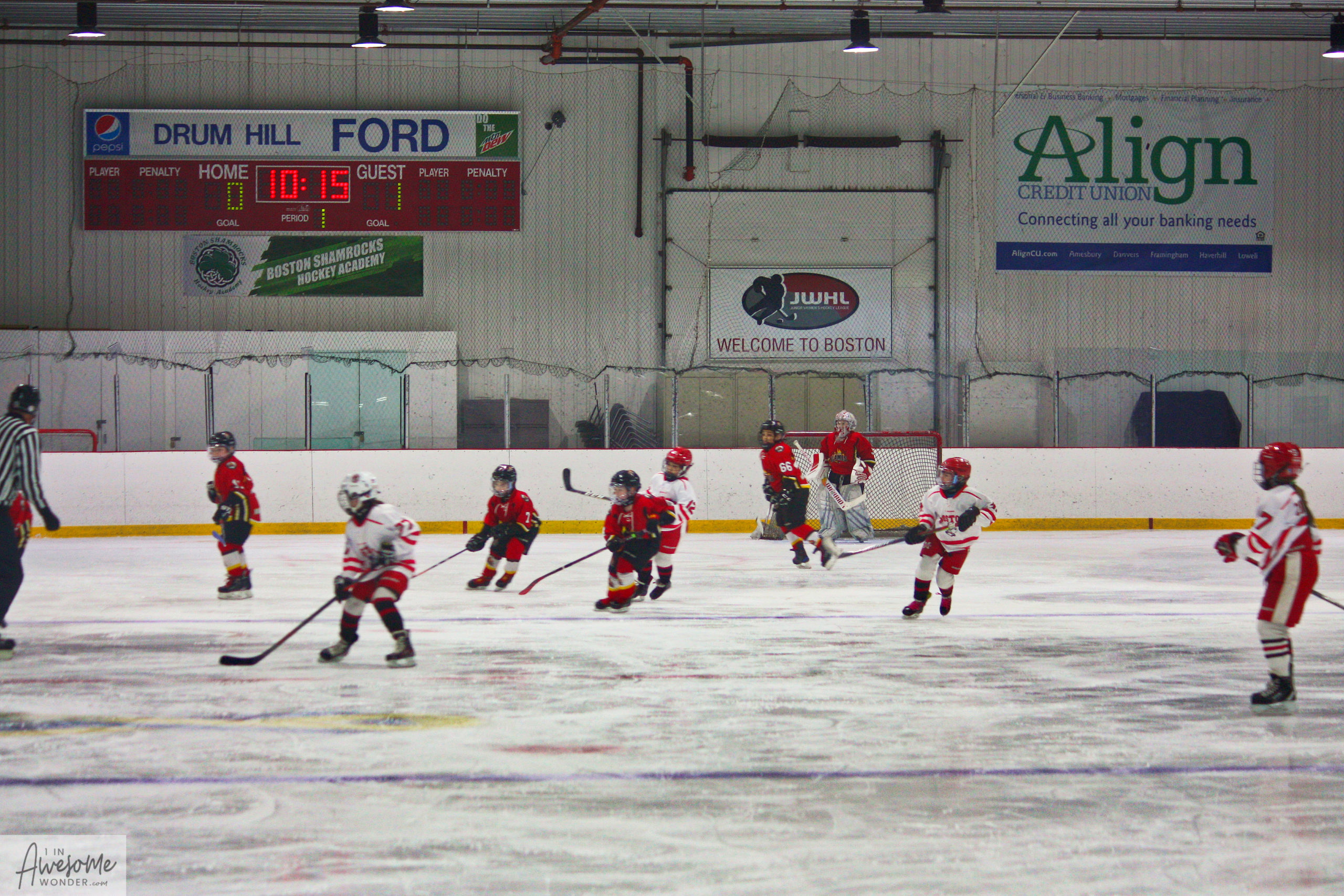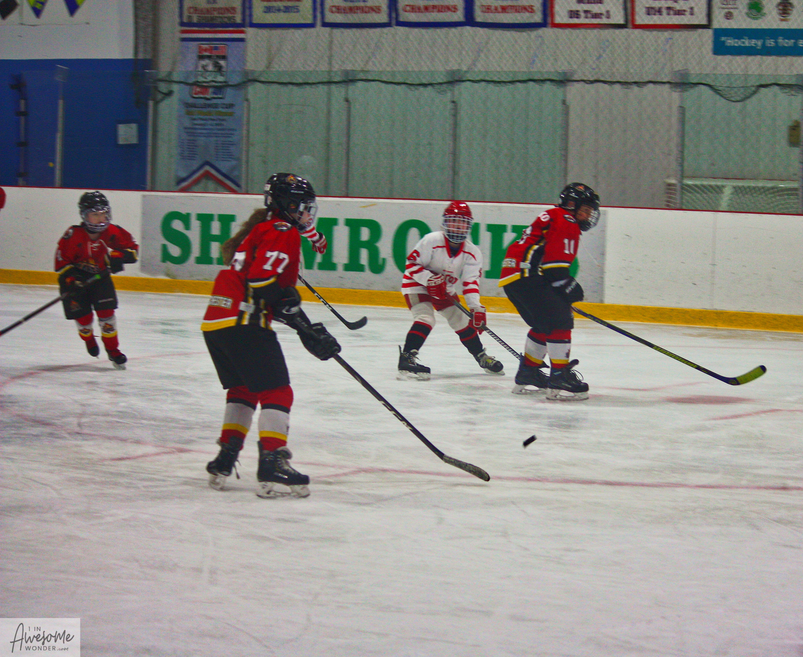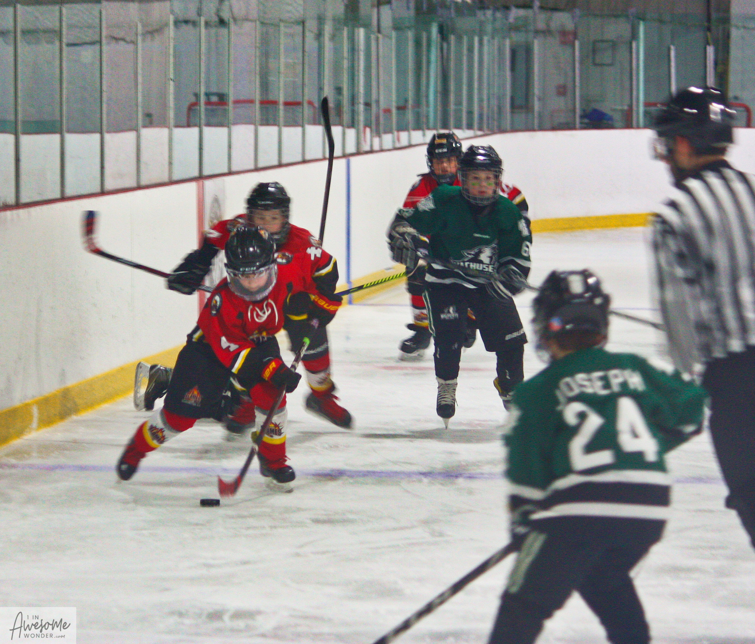 Travis is ready for hockey despite the Terriers yelling, “Red Rover, Red Rover, send Logan right over.”