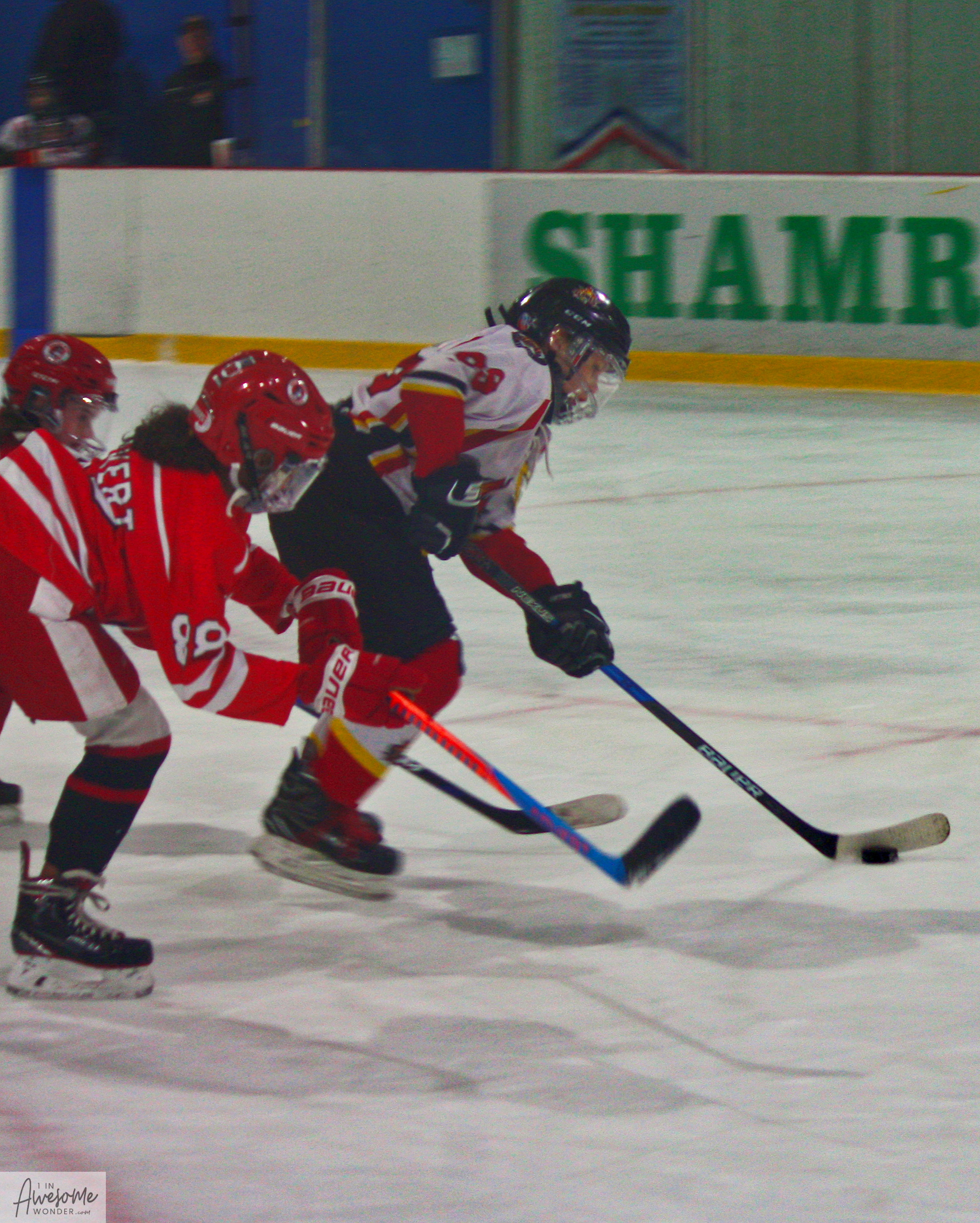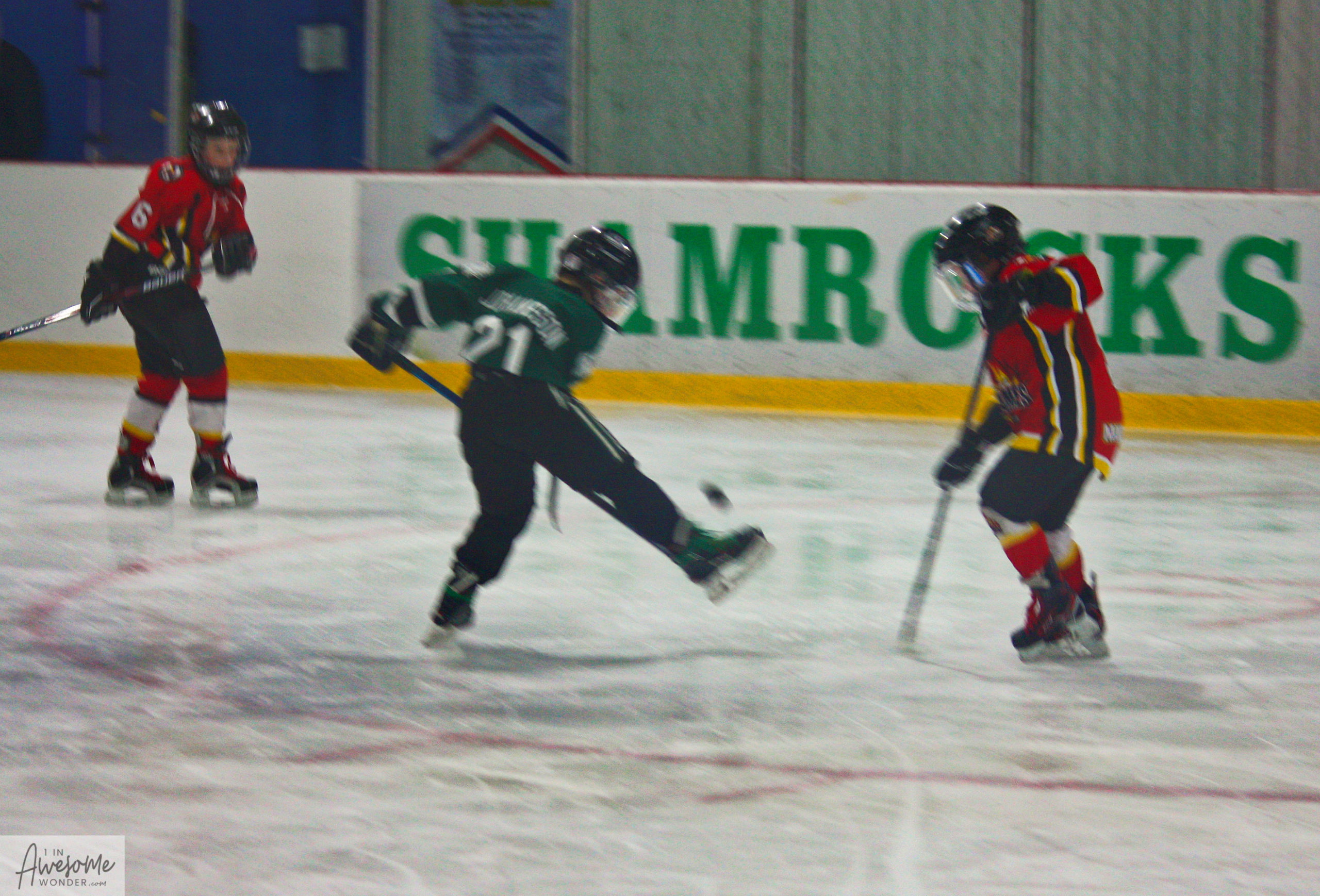 Austin takes his per puck for a roll while Gavin winks at more adoring fans in the crowd.