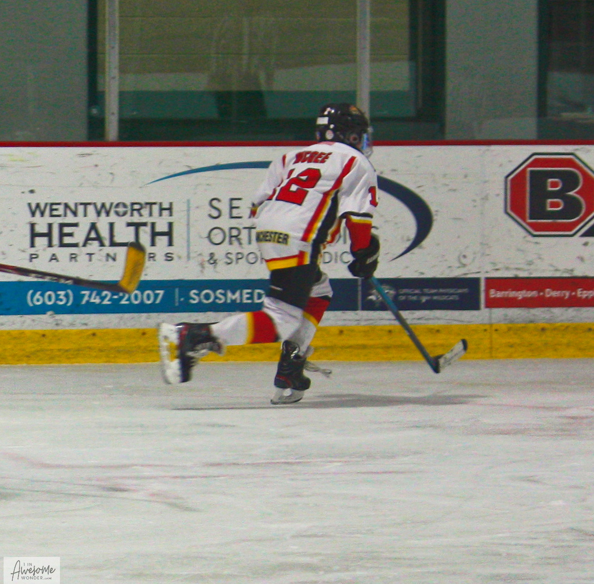 Sean sprints through some open ice in the offensive zone.