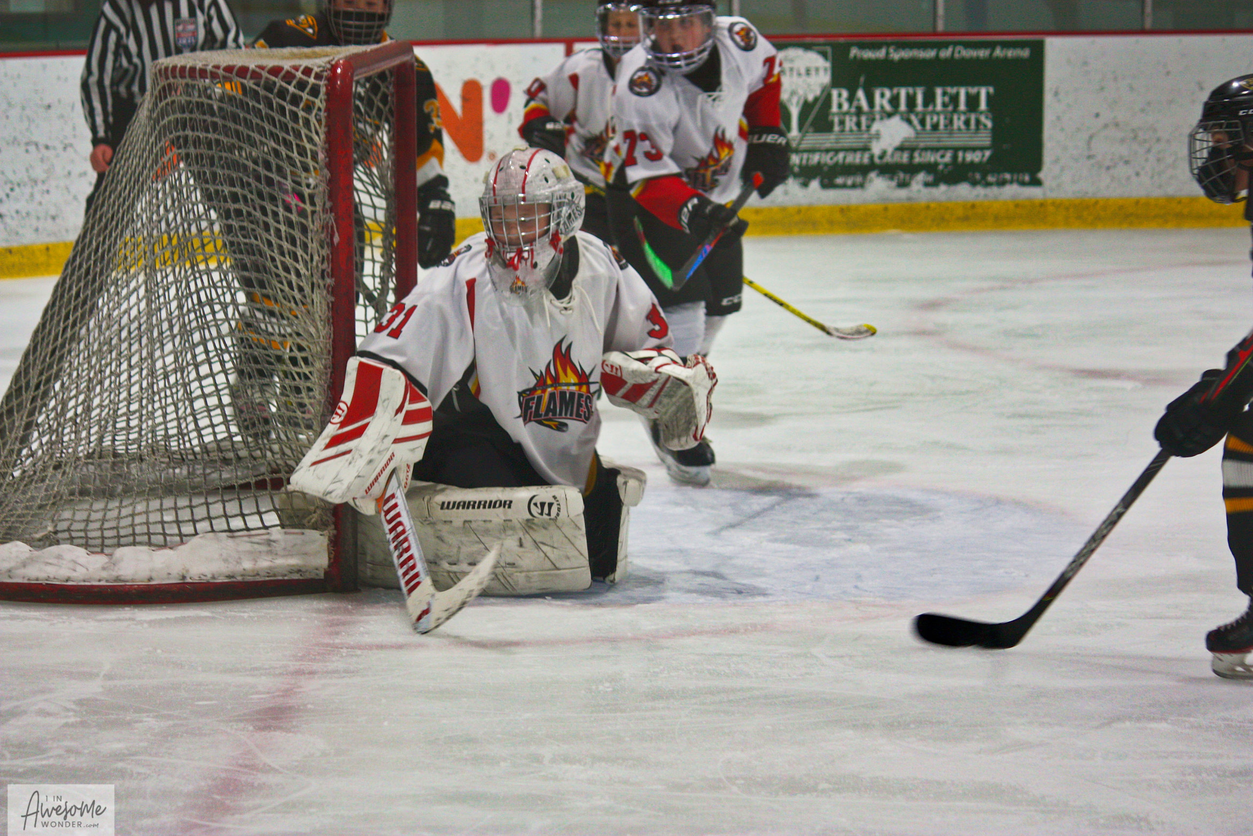 The 2010 Flames played in Dover on Saturday morning, against the Granite State Wild (undefeated). It was a really good game. Dover (Granite State) won by a 2-1 margin in a tightly contested game. The Flames trailed 1-0 before tying the game. Then, down 2-1, the Flames were awarded a penalty shot which was denied by the Wild goaltender. The game was that close.