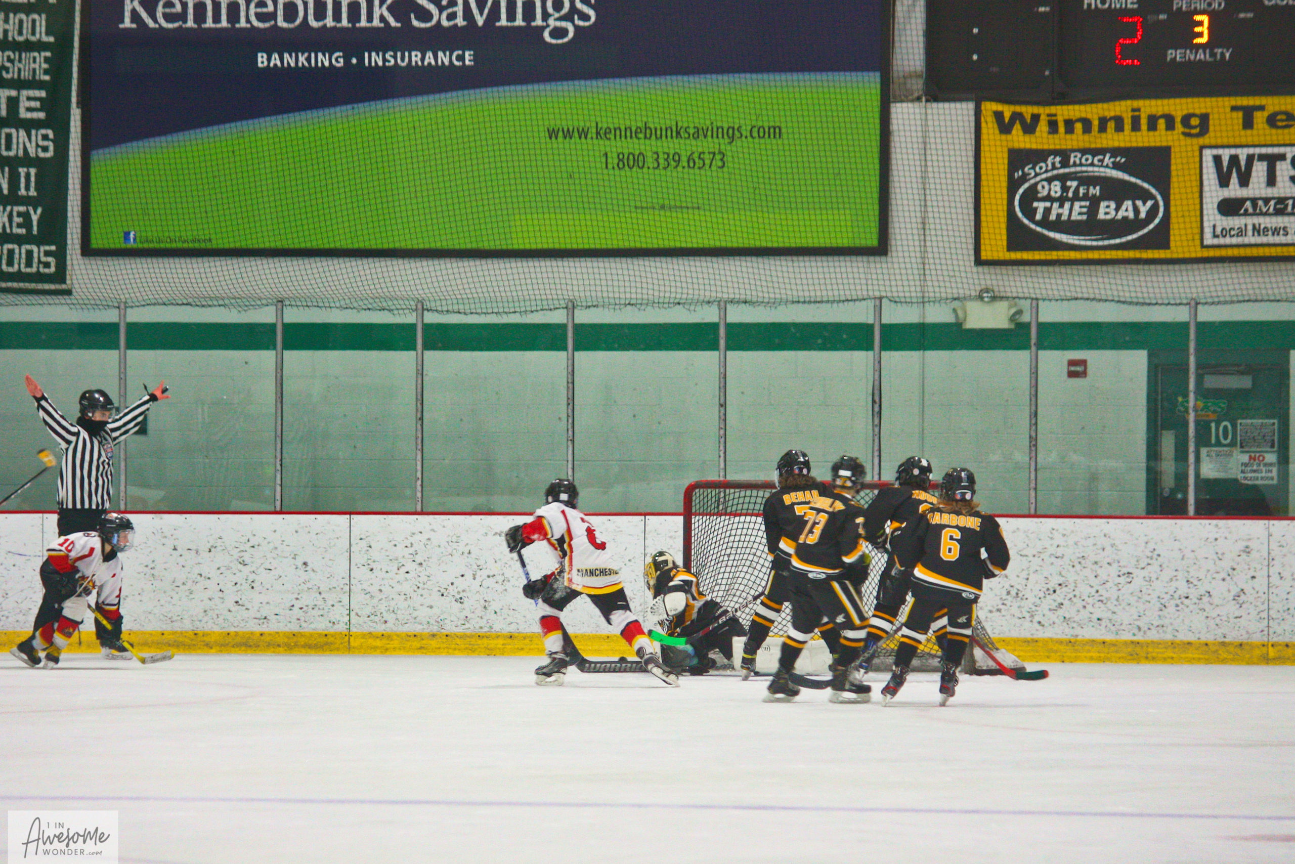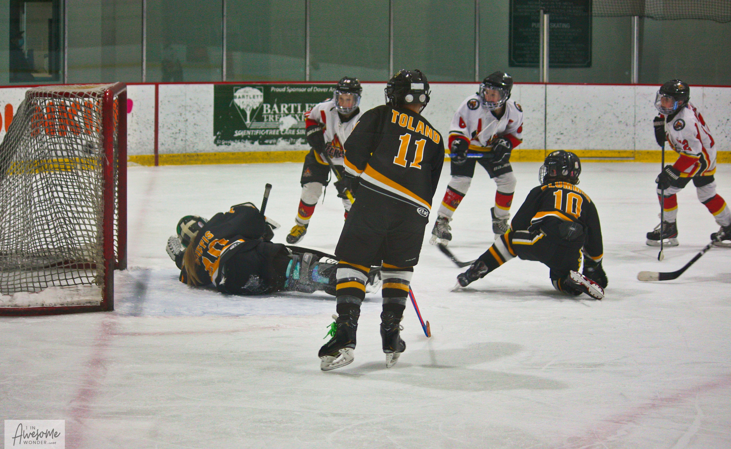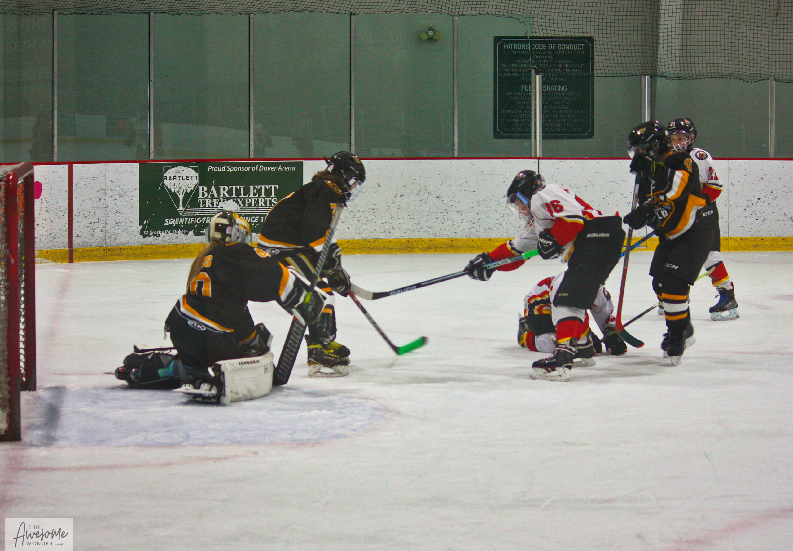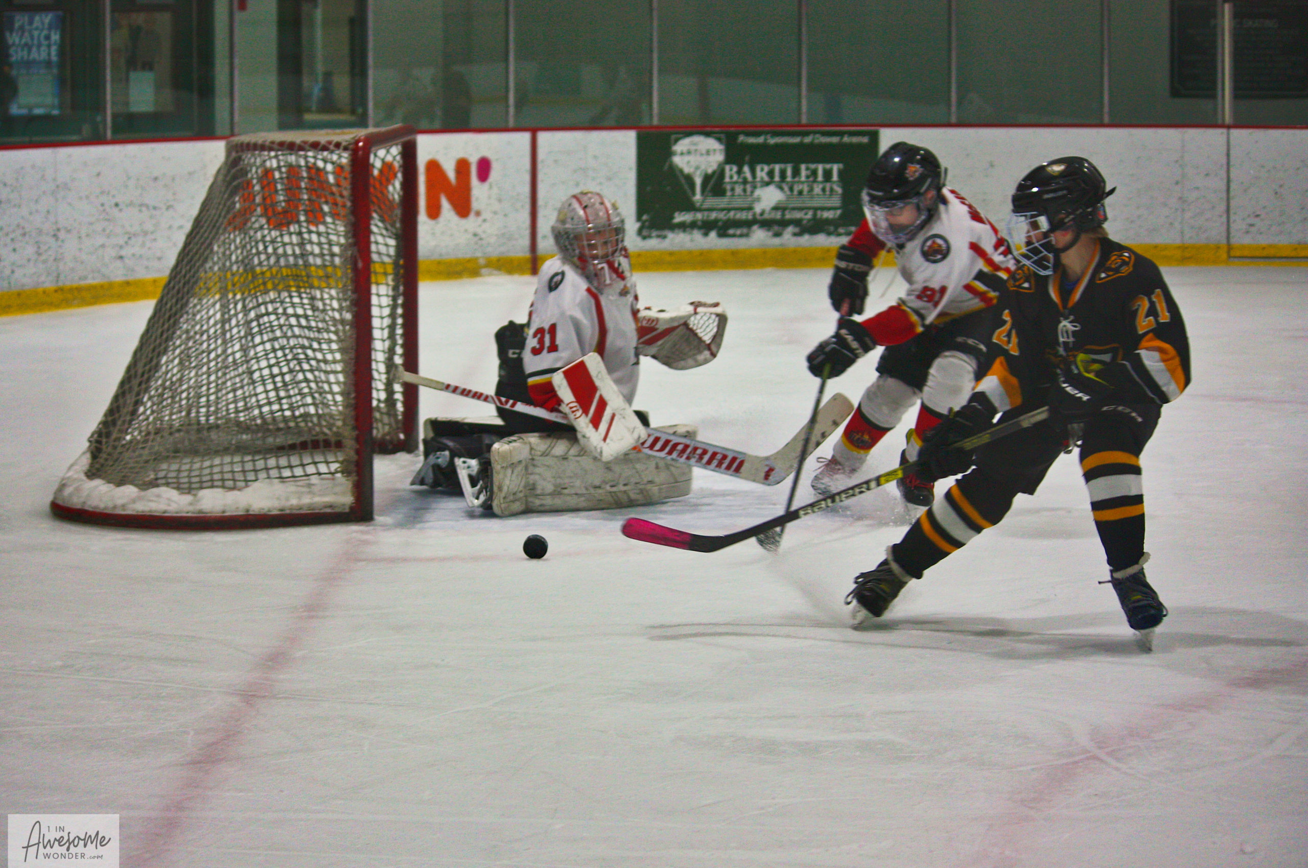 Travis and the supporting cast make sure the puck it outside the net.