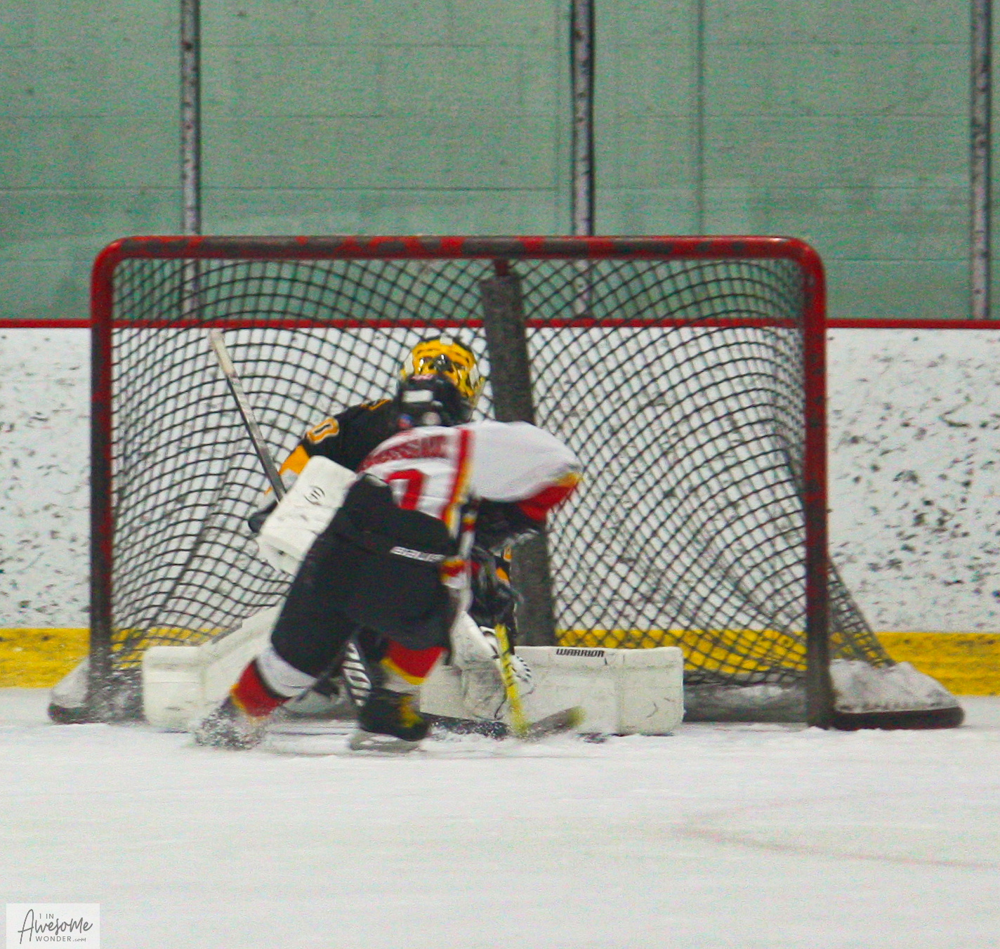 Garrett fires a shot while Soucy kneels in prayer that the shot finds the back of the net.