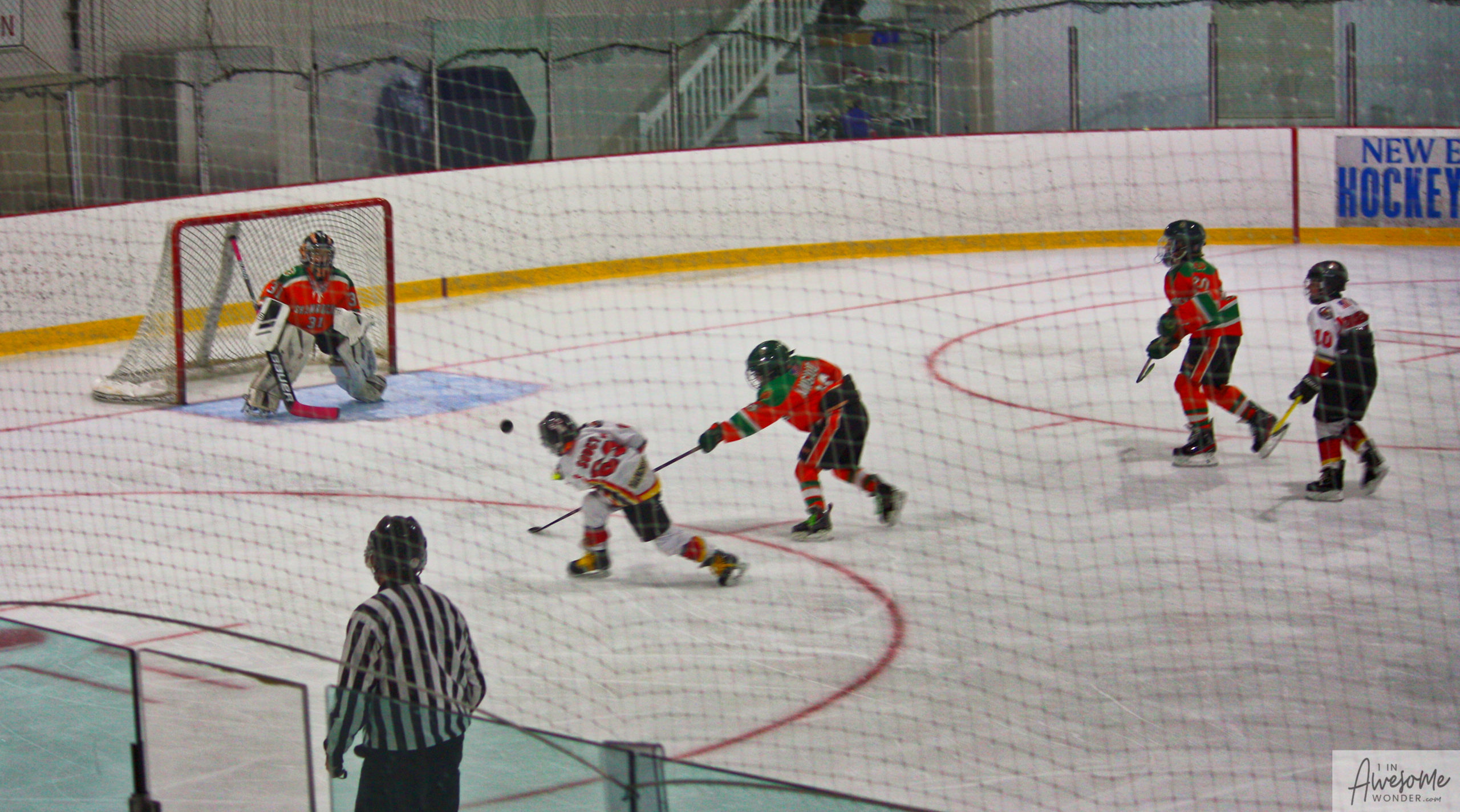 It was a gorgeous autumn morning and the only folks heading south from the foliage, pumpkins, and warm spicy concoctions throughout New Hampshire to the busy routes of Massachusetts were likely going to Ristuccia Memorial Rink. The Flames and their partial families arrived in the parking lot with smiles and lots of energy on this sunny Saturday morning.