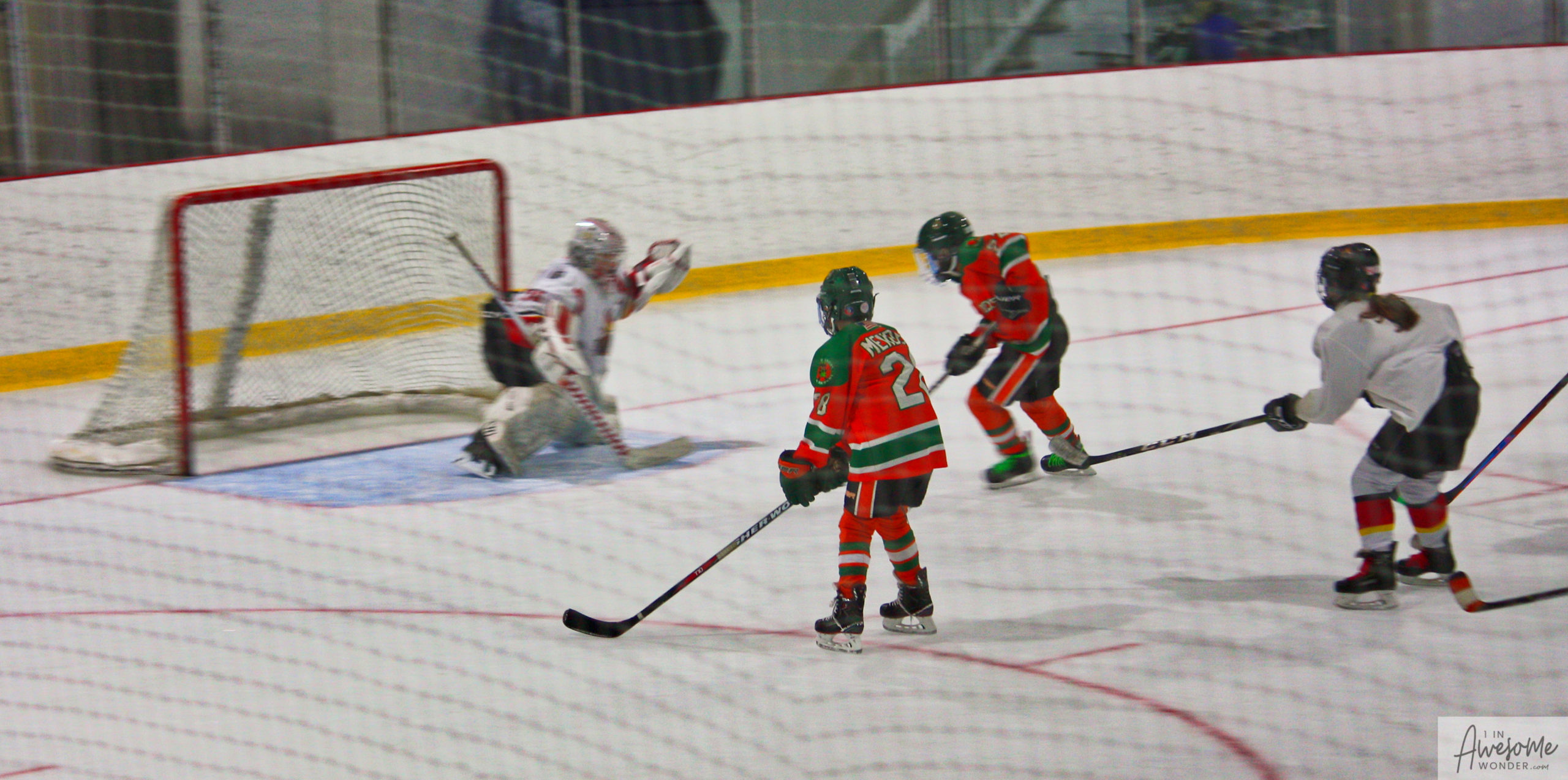 Believe it or not, this shot ended up beating the goalie, and hitting the far post.