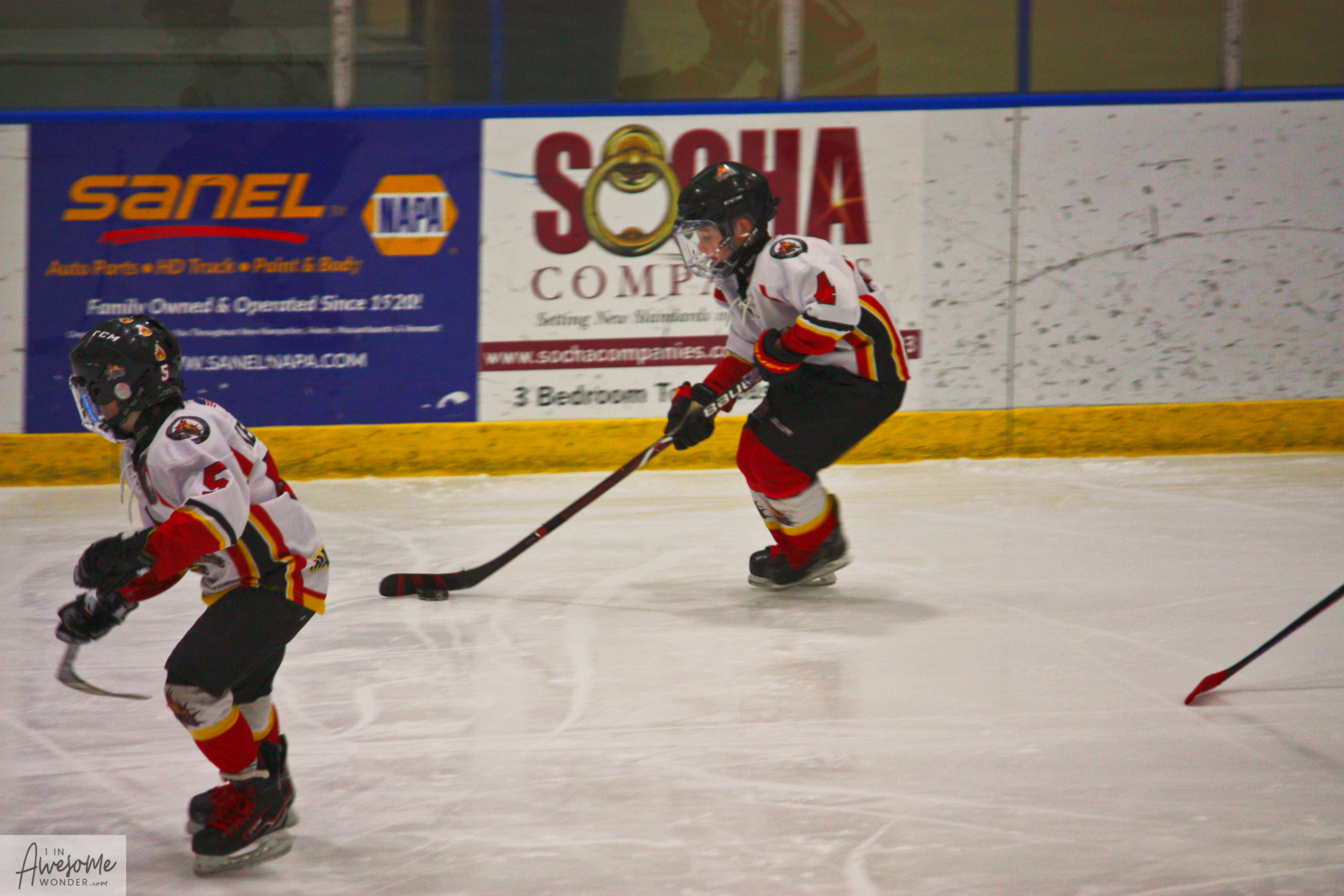 Drew and Austin flying up the ice with the puck.