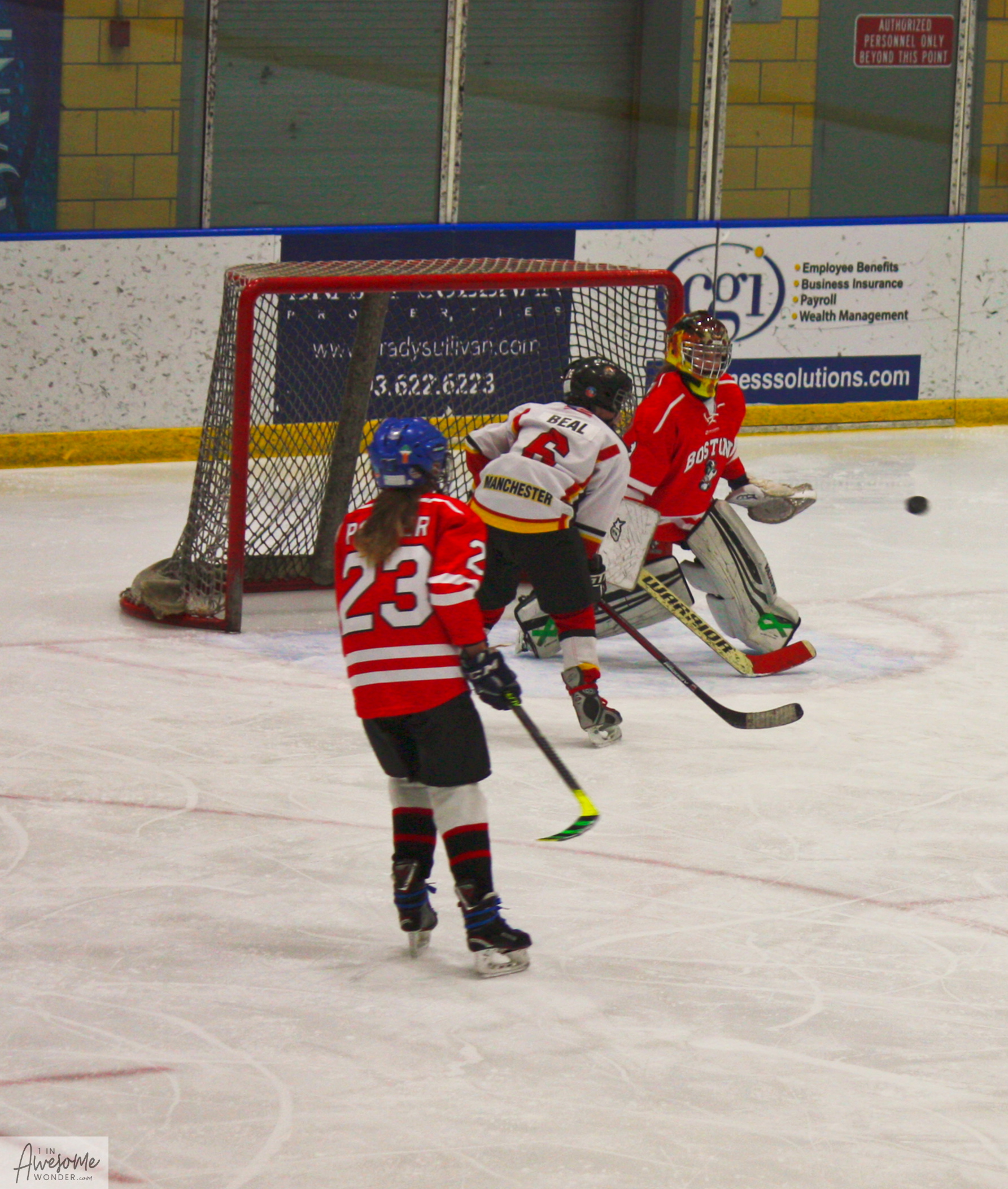 Playing another round of ‘Find the Puck’, and I can’t remember if this was a goal or not. Either way Teddy gets a shot in close against the Cyclones.