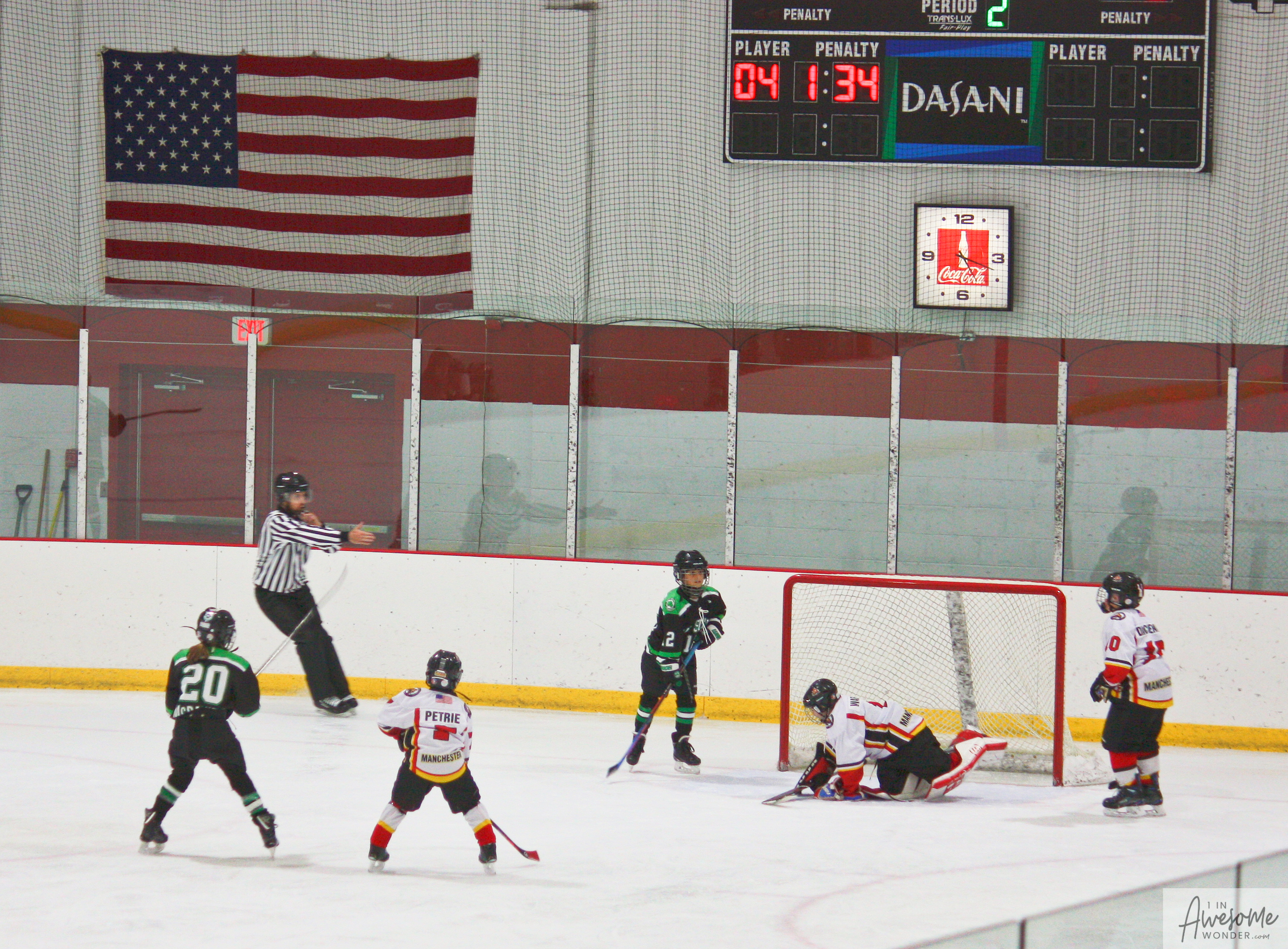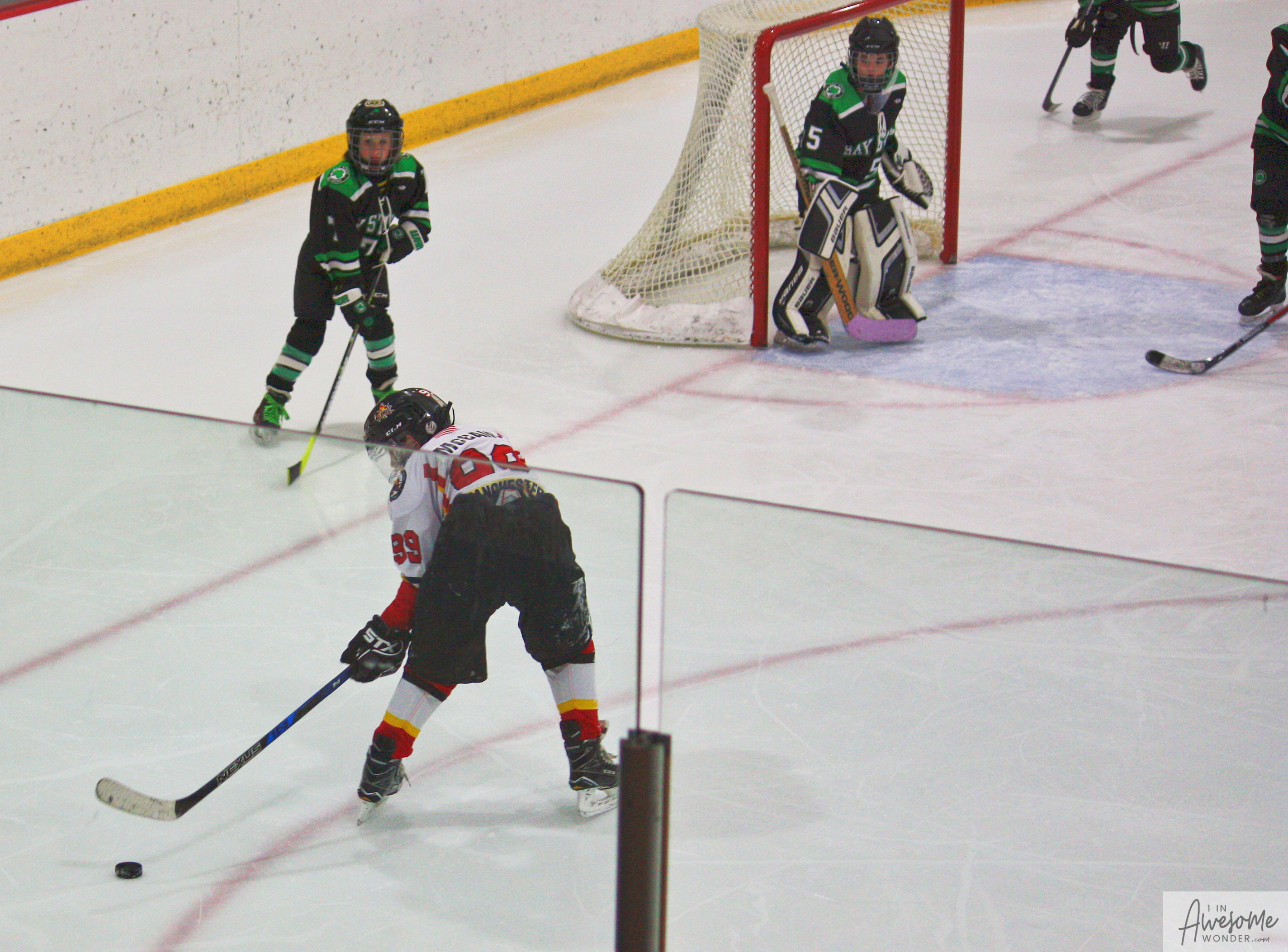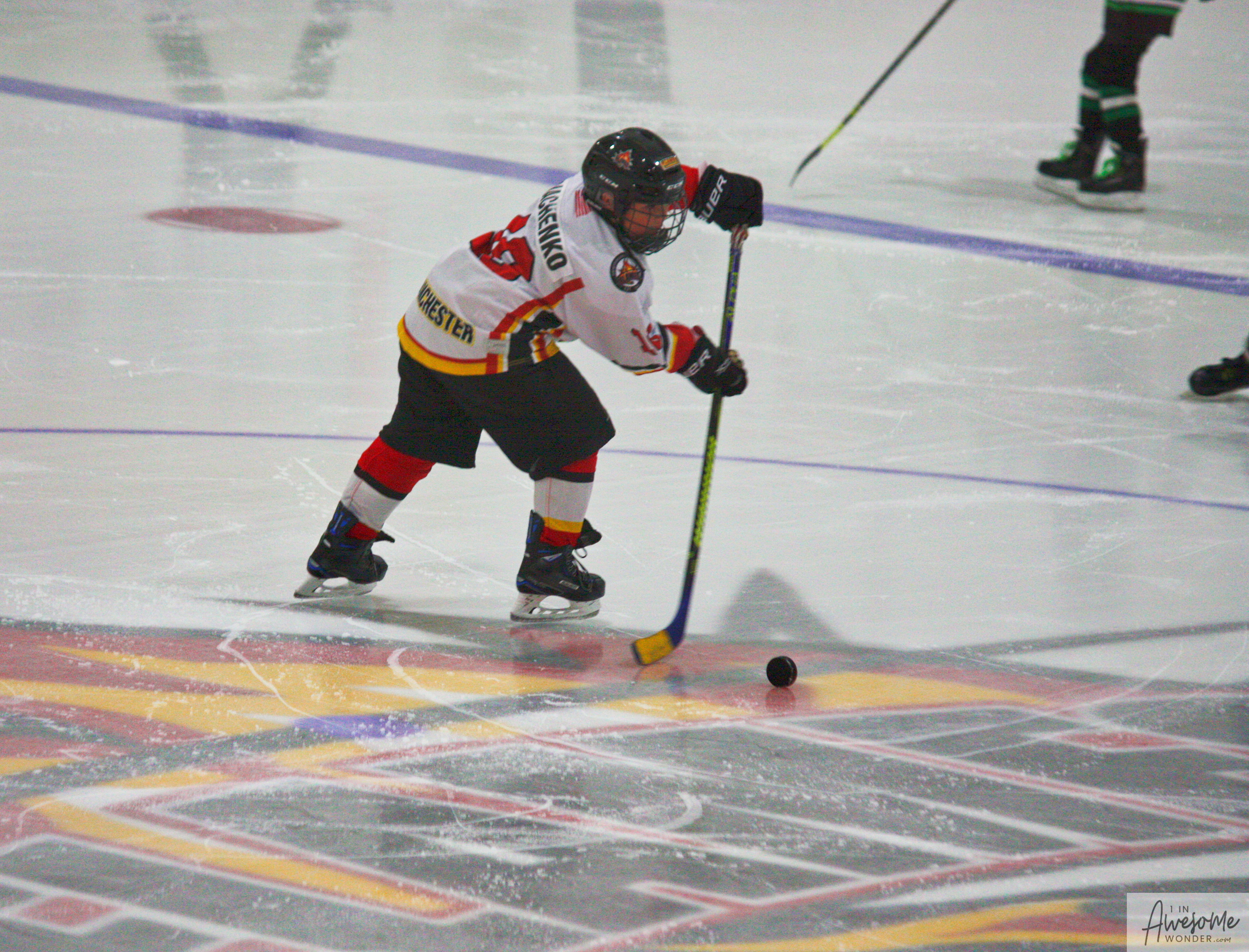 I took a lot of pictures and though the rink seemed darker than last week, here are some pictures from the game. Click on the photos to open that picture and you can zoom in from there, if you wish.