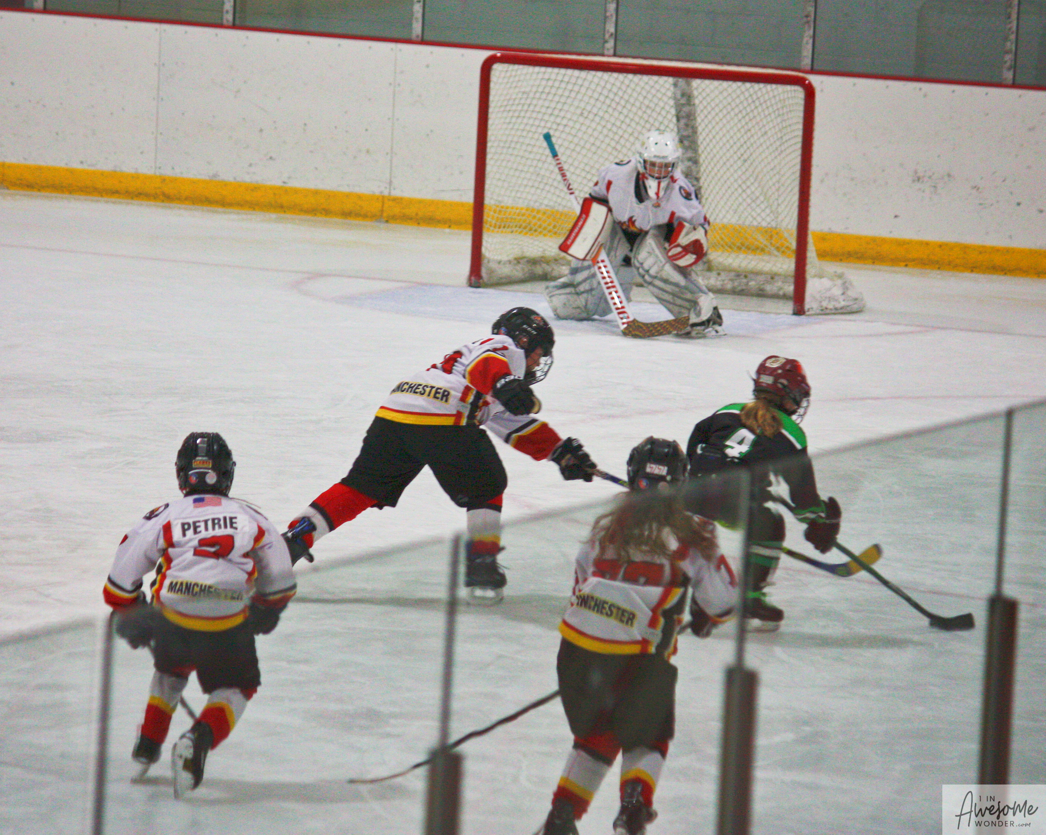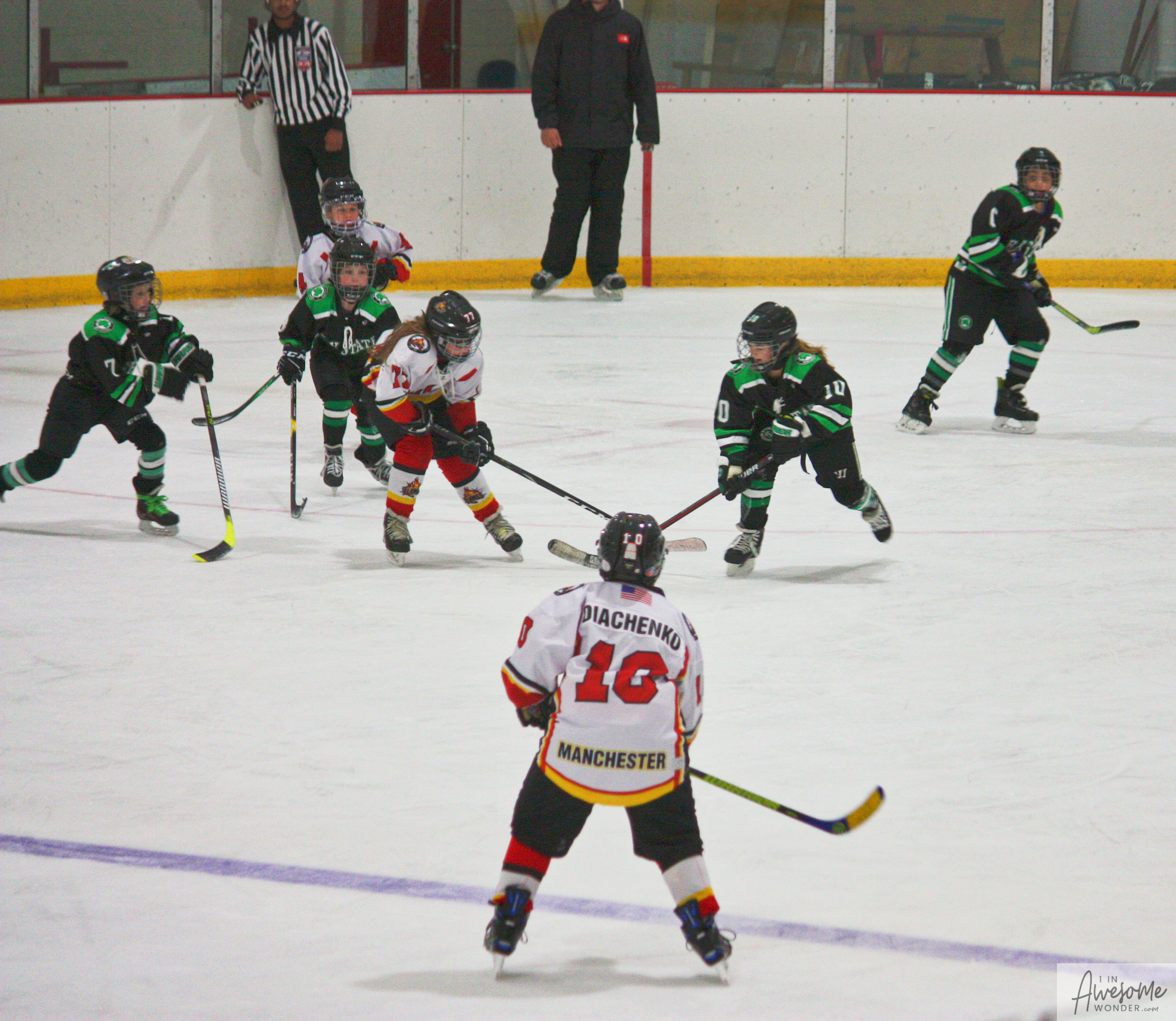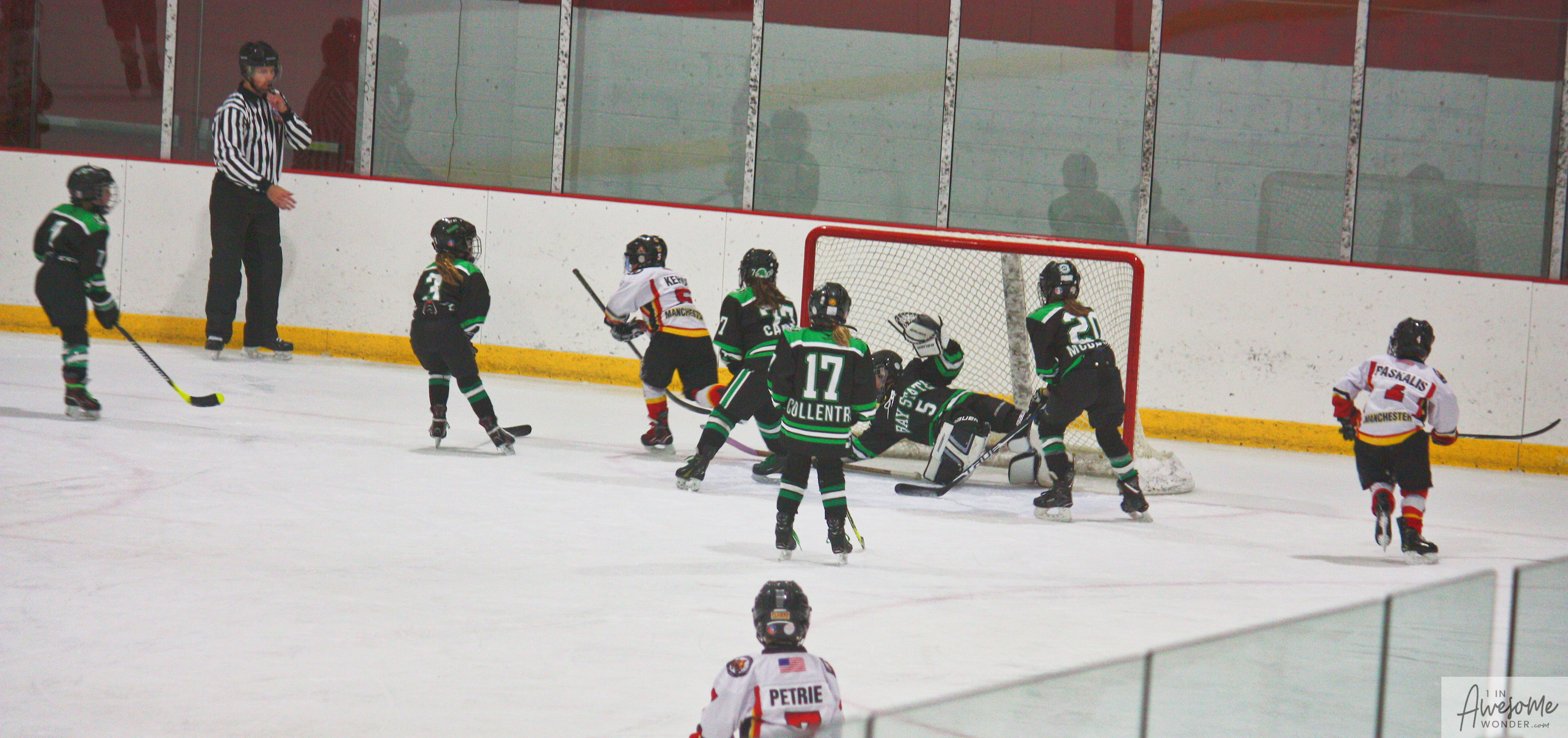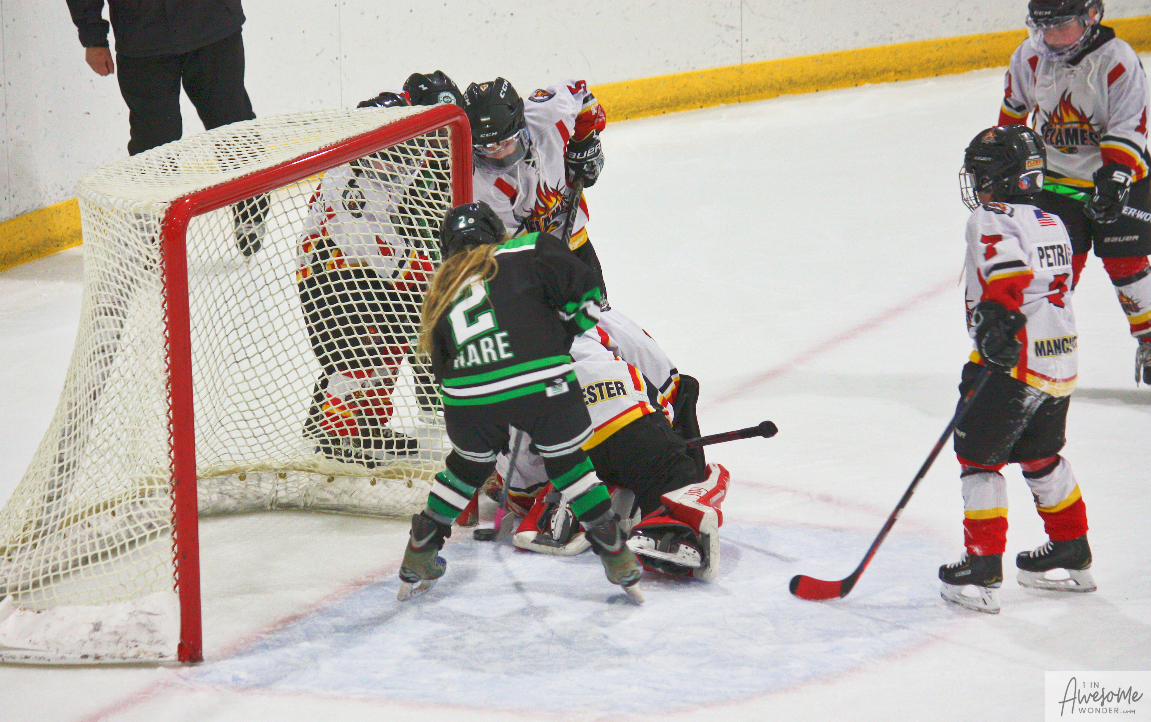 I took a lot of pictures and though the rink seemed darker than last week, here are some pictures from the game. Click on the photos to open that picture and you can zoom in from there, if you wish.