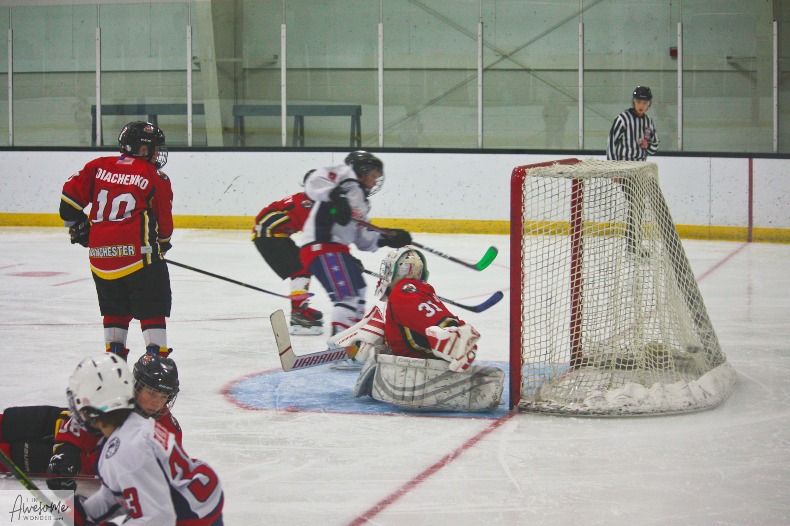 On Sunday morning the 2010 Flames went up to Tilton School to play the Concord Capitals. The last time these two teams met, the Flames were able to get a 7-4 win at West Side Arena. This time the Flames jumped out to a 4-1 lead in the first period. The Capitals cut the deficit to 4-3 after two periods. Then, with 4:50 left to play in the game, Concord took the lead, 5-4. The Flames ended up pulling their goaltender in the last minute of the game. And with 0:36.2 left to play, and the goalie pulled, the Flames tied the game at 5-5. It was quite a game and I honestly thought that the Capitals were the better team on the day.