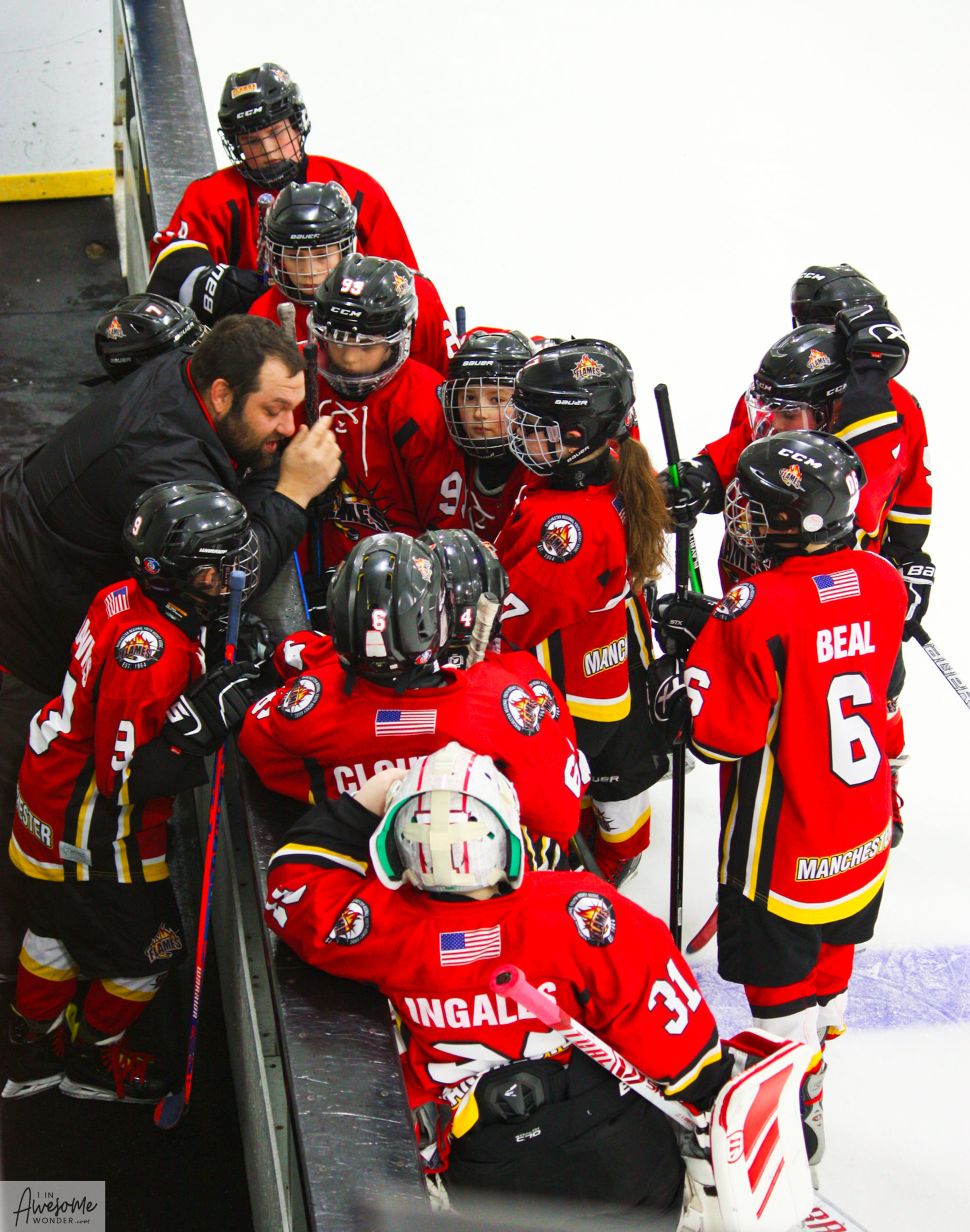 Coach Nick tries to motivate the troops before the third period.