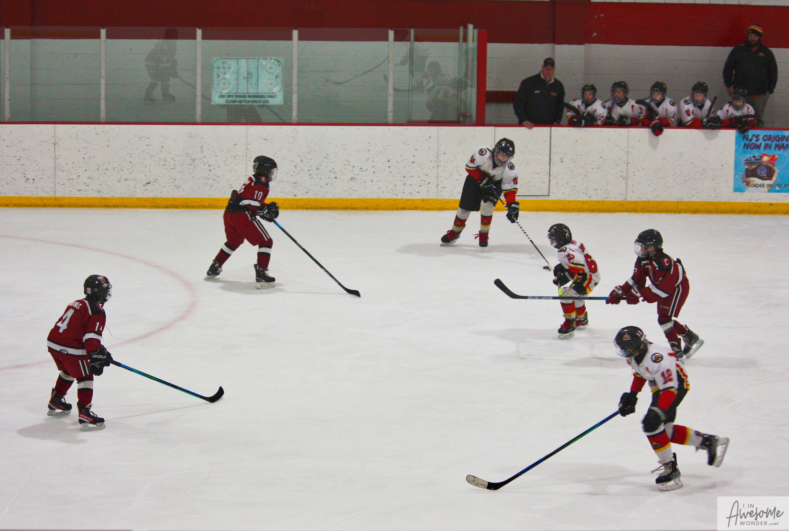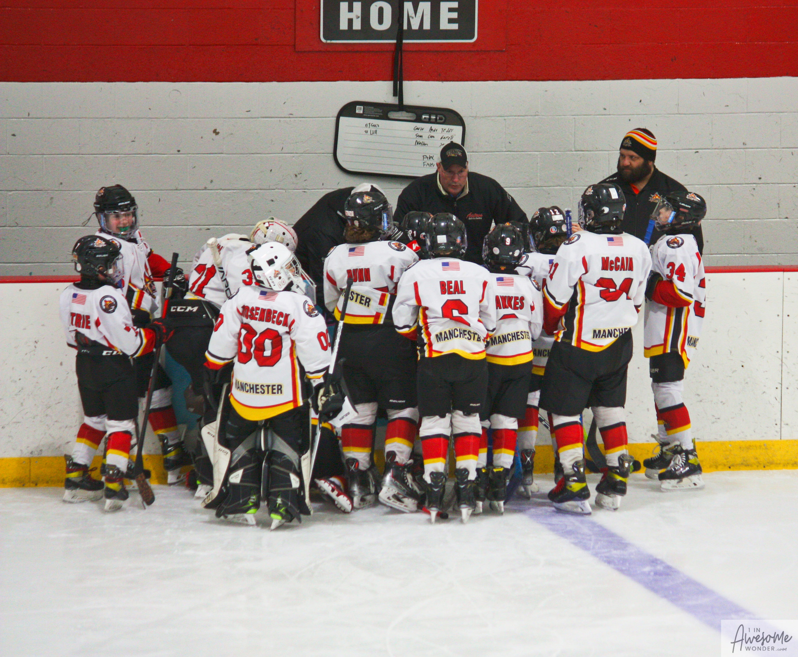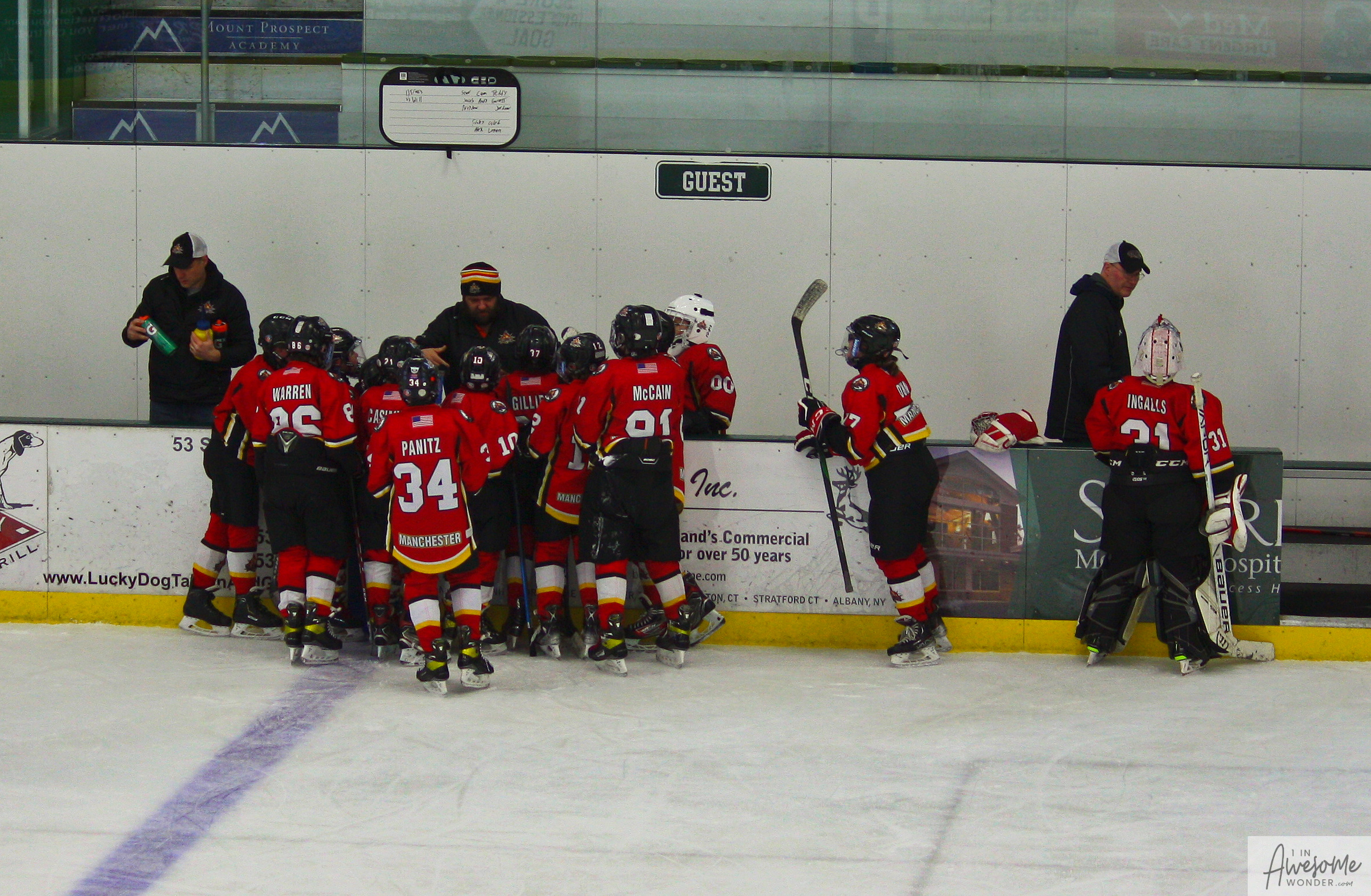 Backing up for a minute, we had a special guest join us at JFK Coliseum on Saturday morning. Jen Webber from Jen Webber Photography, and a friend of Goffstown Hockey, came to take pictures of our 2010 Flames team. Jen is awesome and so very talented. I am so grateful that she was willing to give up her time on a Saturday to come take pictures of our 11-year olds. Our team parents passed the hat as they say to give Jen at least a meager attempt at covering some time and expenses for her efforts. Thank you Jen.