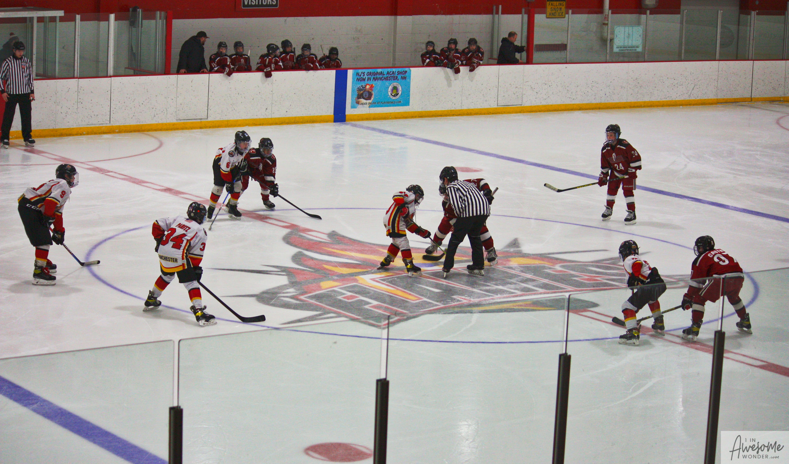 First, at the friendly confines of JFK Coliseum the Flames played the pesky North Shore Shamrocks on Saturday morning. The Shamrocks scored first on a possession that the Flames had a chance to end by clearing the zone. They didn’t get the puck out of the zone, and the Shamrocks took a 1-0 lead. A few minutes later, the combination of Logan McCain, Jordan Hawkes, Teddy Beal, and Cam Desruisseaux worked relentlessly to put a goal on the board. McCain fired into the traffic, Beal and Hawkes had touches on the rebound before Desruisseaux put the puck in the net. The score was tied, 1-1 after one period.