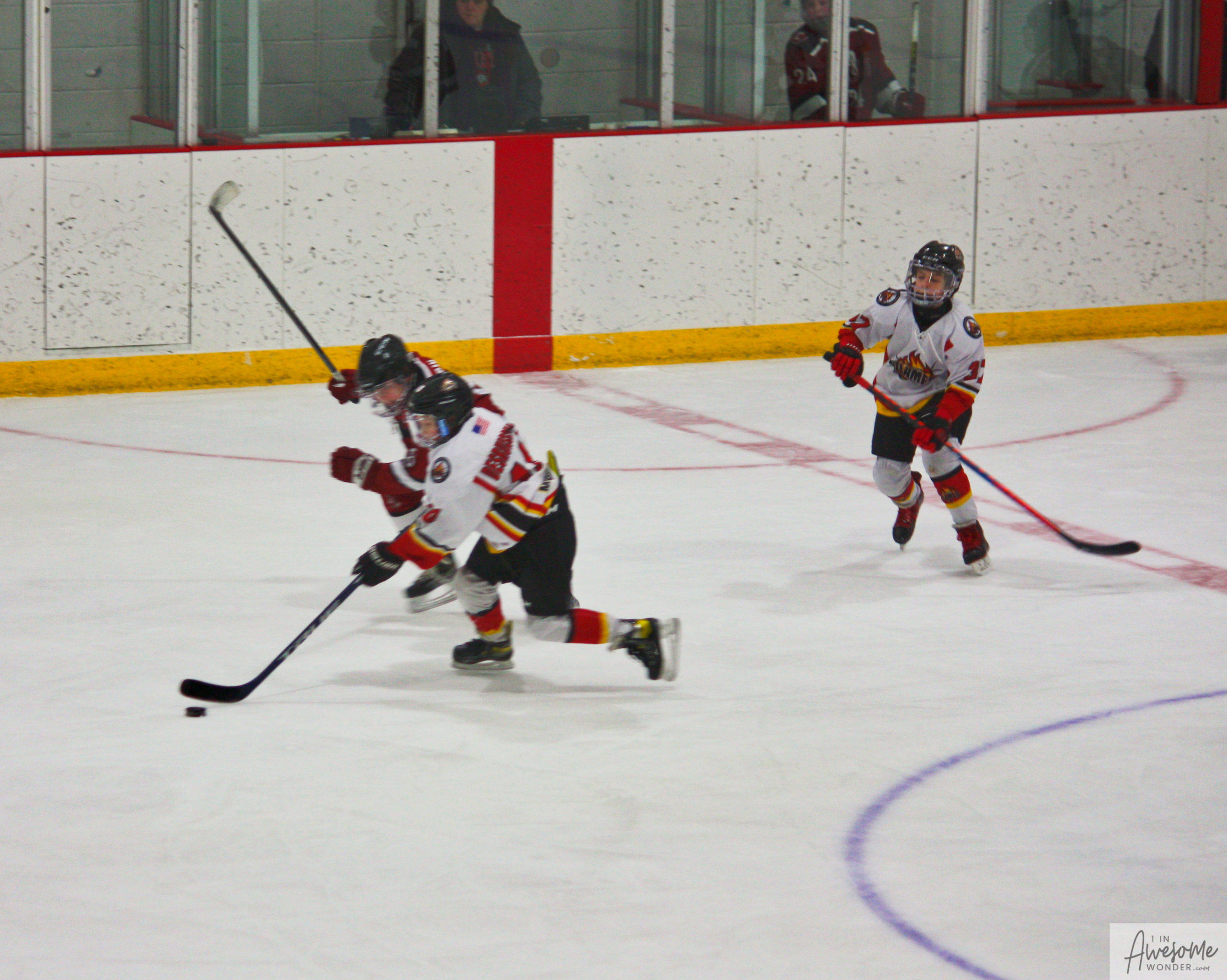 The Flames had power play opportunities throughout the final period but they could not get the tying goal. With about 1:45 left in the 3rd, the Flames pulled Will from the net for the extra attacker. With 30.9 seconds left in the game, Andy Soucy put the puck in the net and if I had to guess, I would give assists to Casimiro and Desruisseaux. There were a lot of players in a small area but Soucy found the net. The game ended in a 3-3 tie. Great comeback! Great effort from the entire team!
