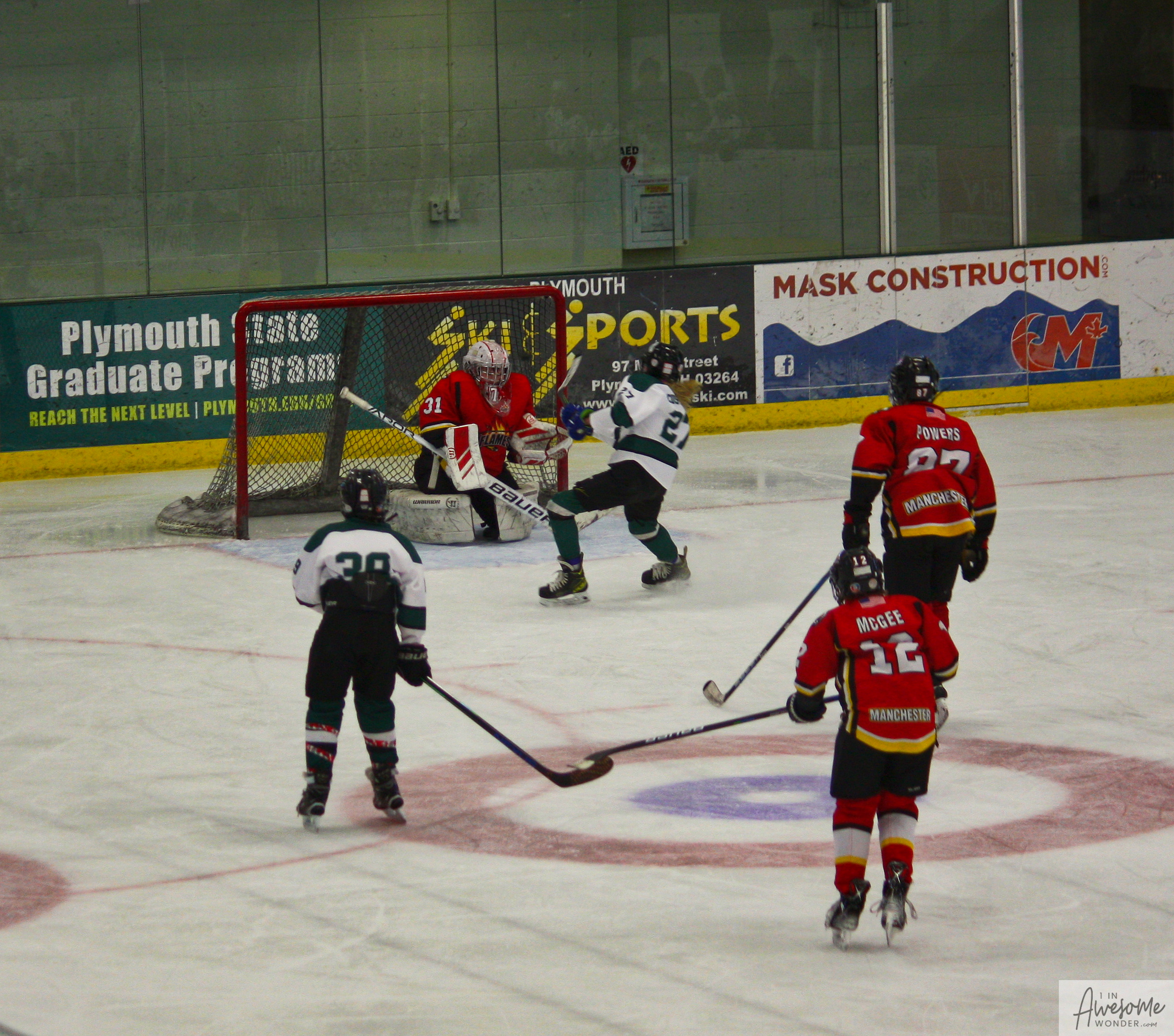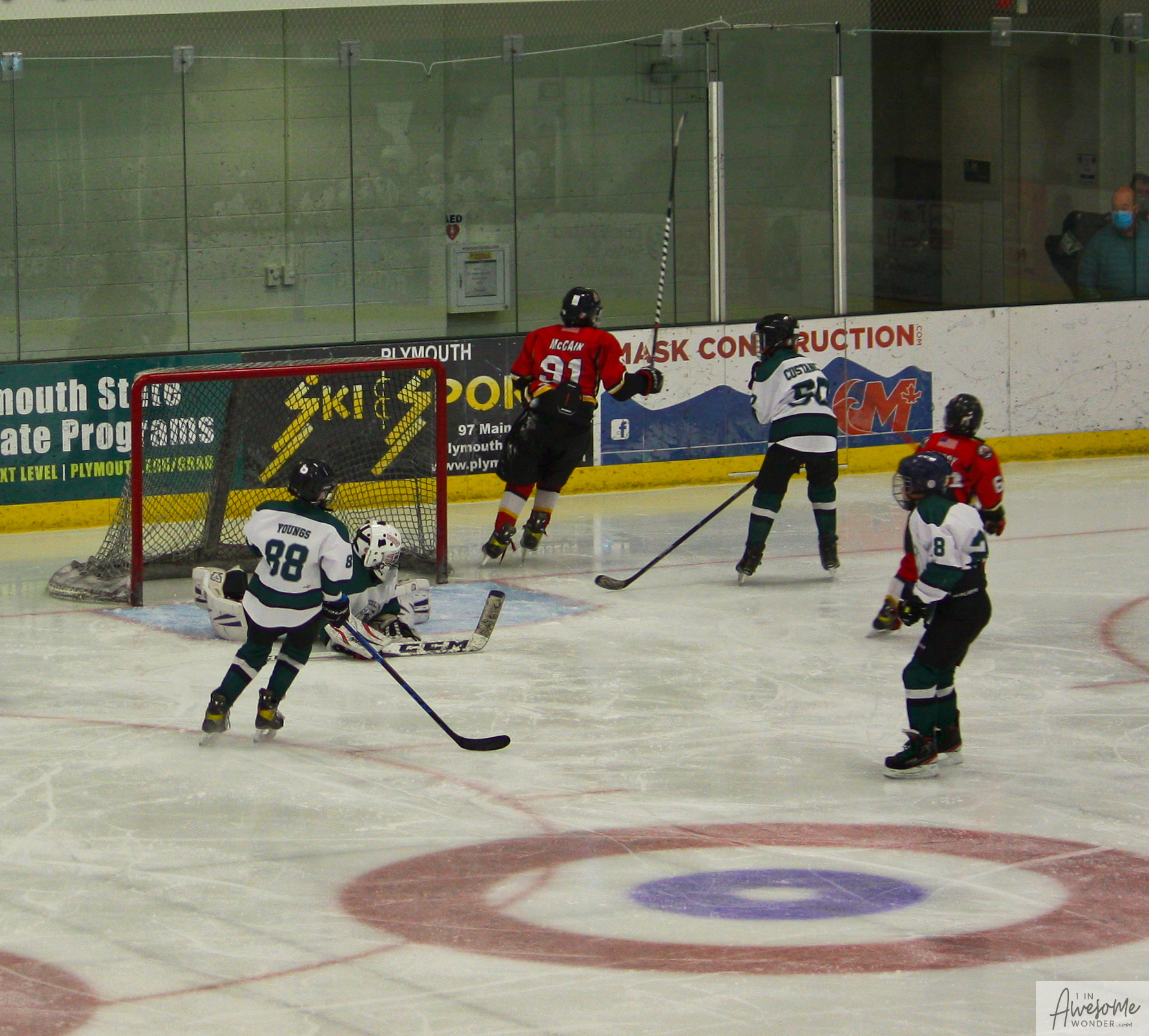 Travis Ingalls gave up the tying goal right at the half way of the game, right before Will Rosenbeck entered. The goal was a clean breakaway against one of the better skaters in the entire league, after the Flames defense got caught at their own blue line. It was a tough break for Ingalls and the team. The second and third period’s both ended with the score tied, 1-1. This was just a good hockey game with both teams playing good hockey and with a healthy respect for each other’s game. In a show that the kids often know how to manage things better than we do, the Plymouth team stood and high-fived the Flames as they left the ice after the game. That, is a pretty cool sportsmanship gesture.