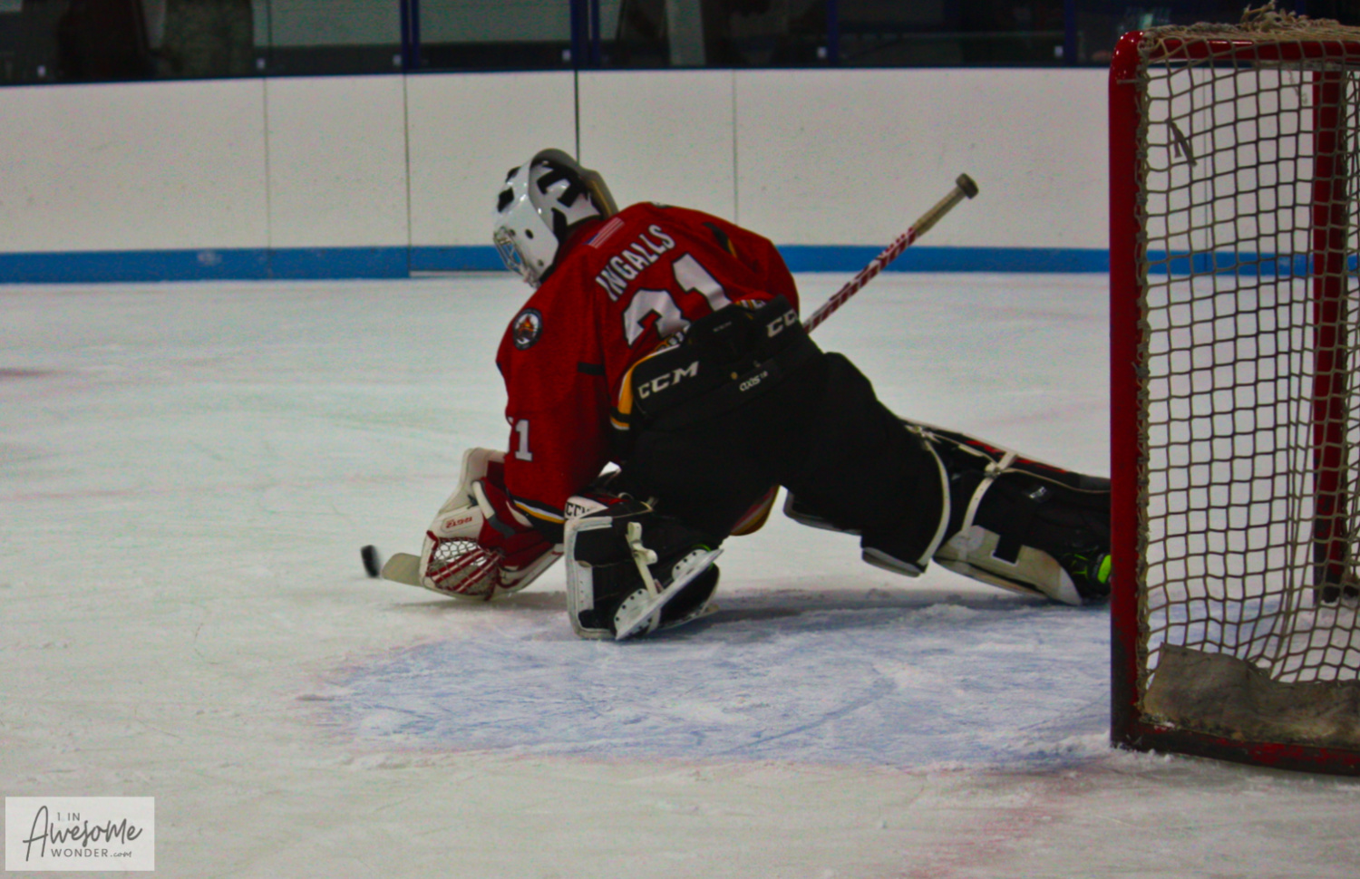Rosenbeck missed one game in net while trying to get well and then he played on Sunday. Ingalls played the whole game on Saturday and the Flames were able to win. These two goaltenders push each other to be better because there’s always another kid wearing big pads waiting to play if something goes awry for the other goaltender.