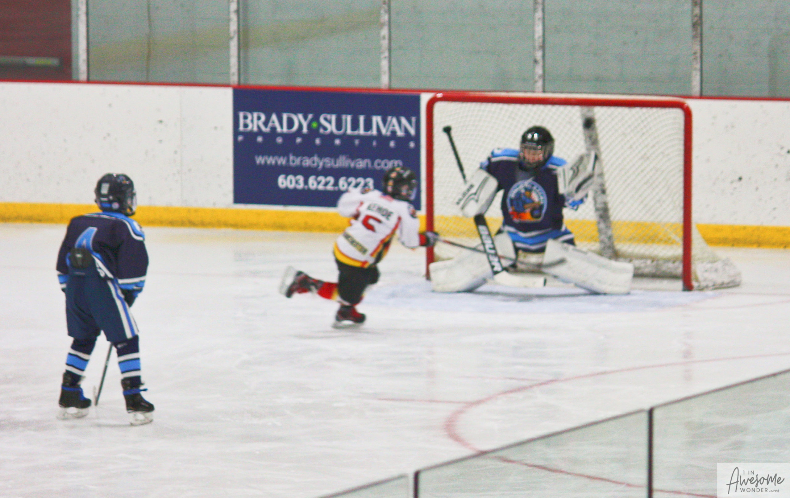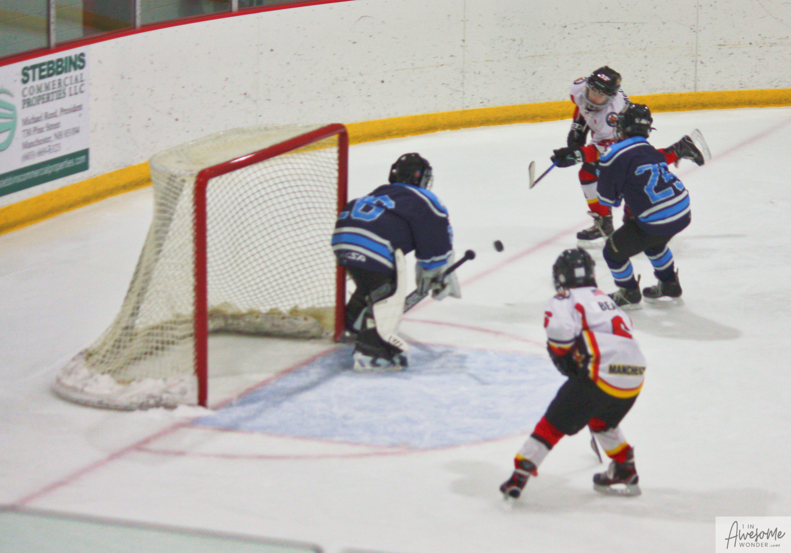 Logan blasts a shot on goal with Teddy on the doorstep. (C) 1inawesomewonder 2019