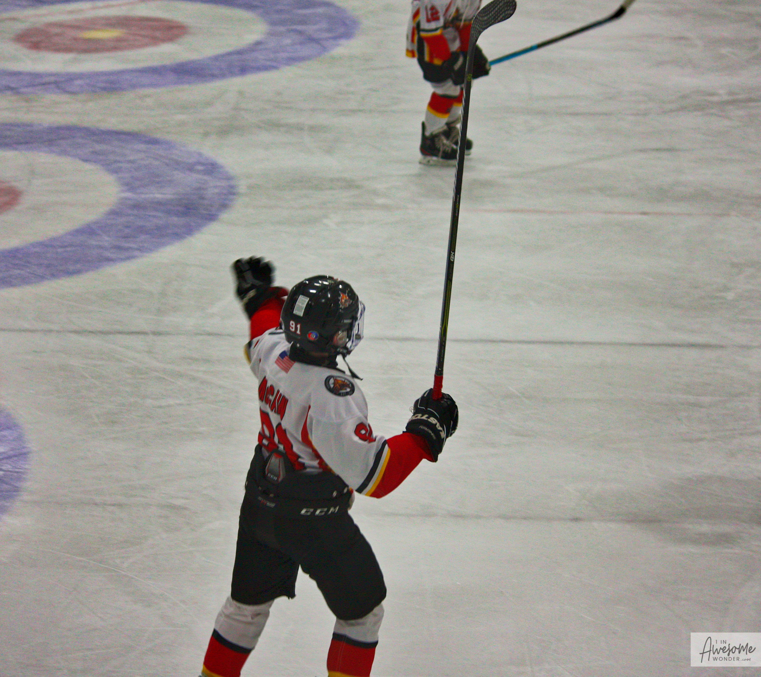Teddy on his post-goal skate around the rink looking for someone to celebrate with.