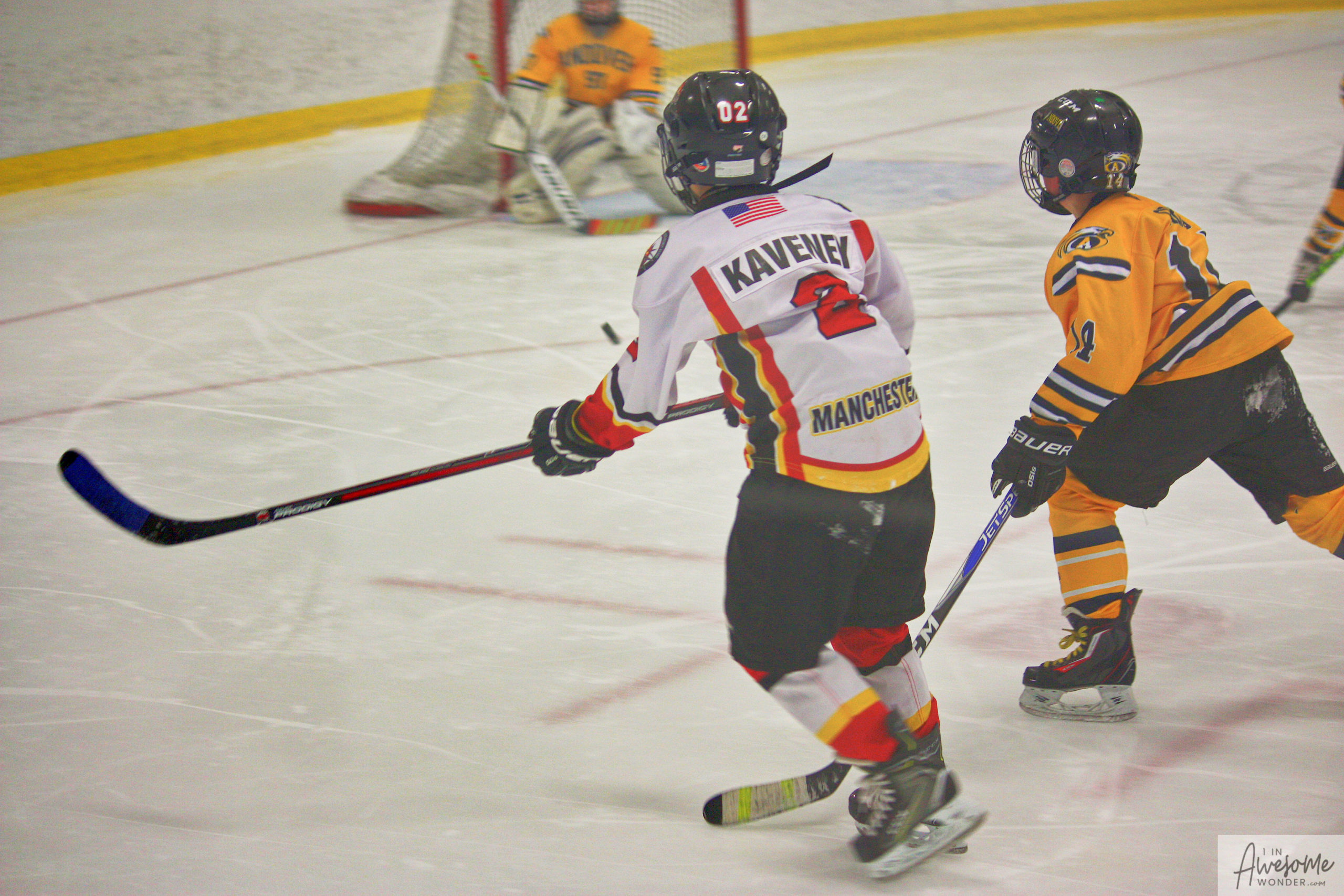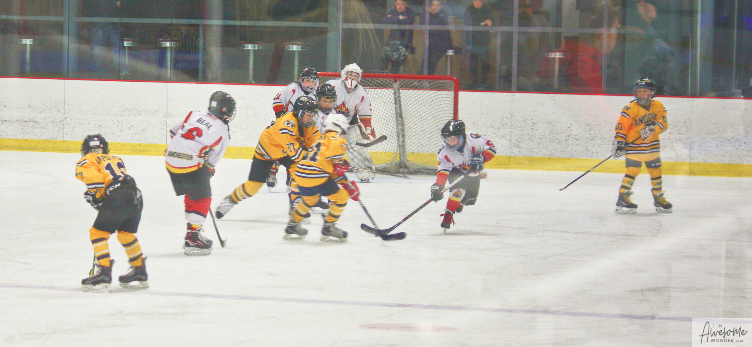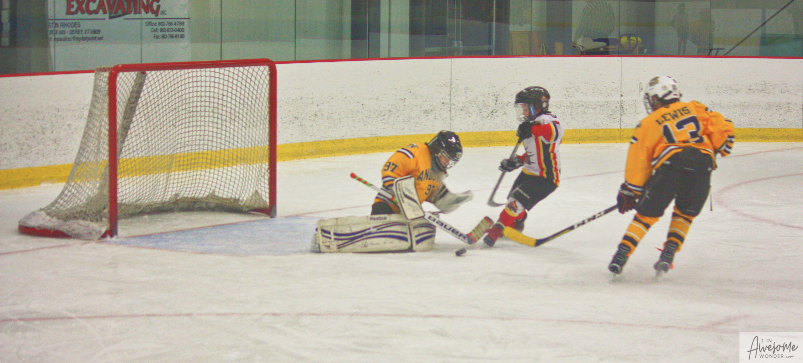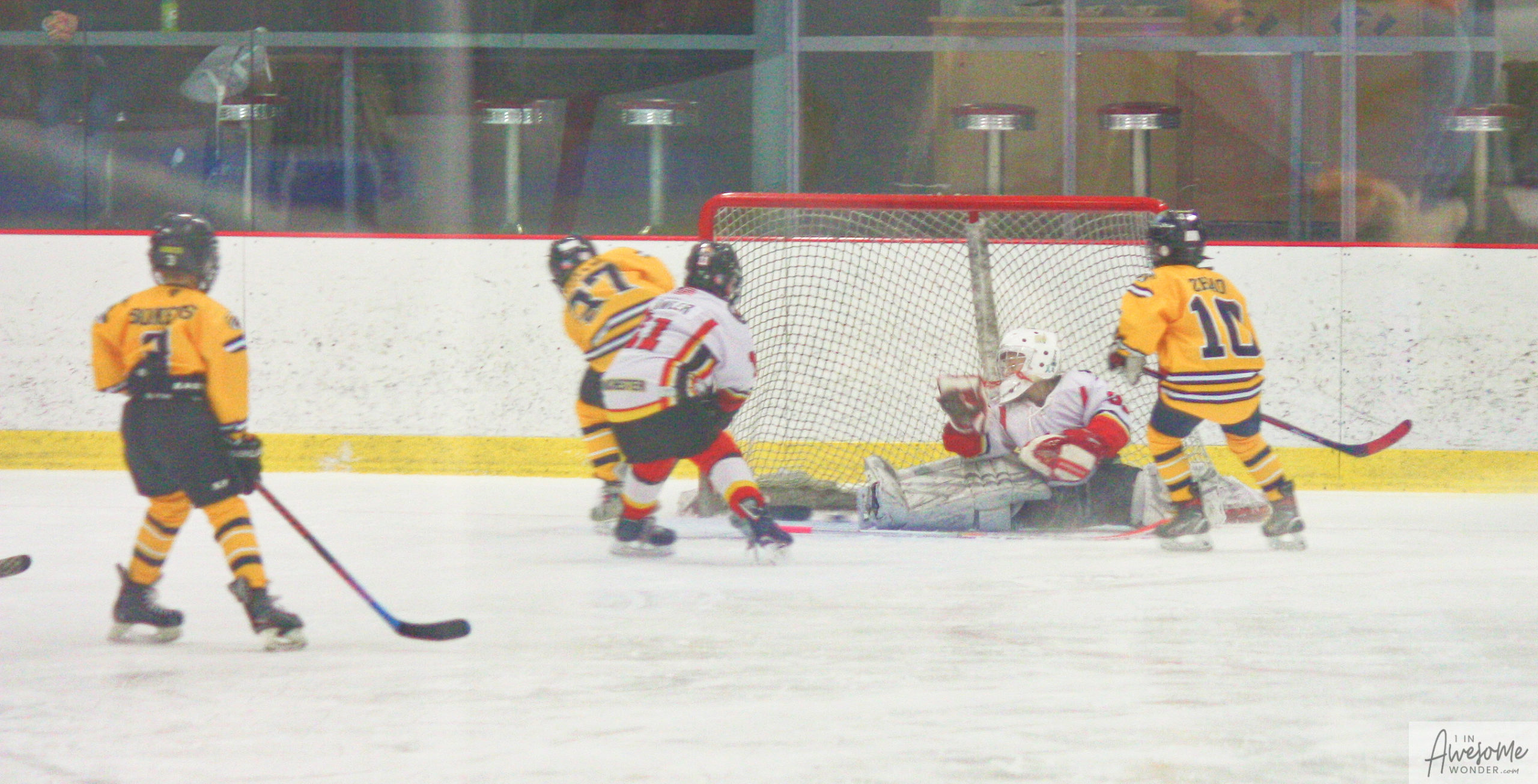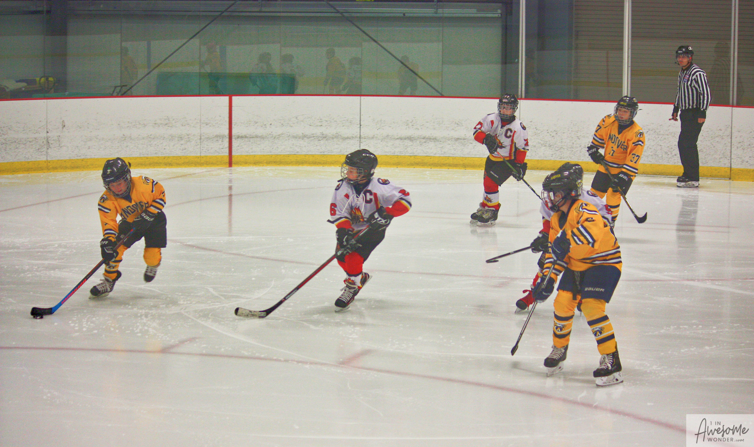 Jordan and Austin are hustling up ice while the scorekeeper seems to think that watching the game on his phone is better than the live action right in front of him.