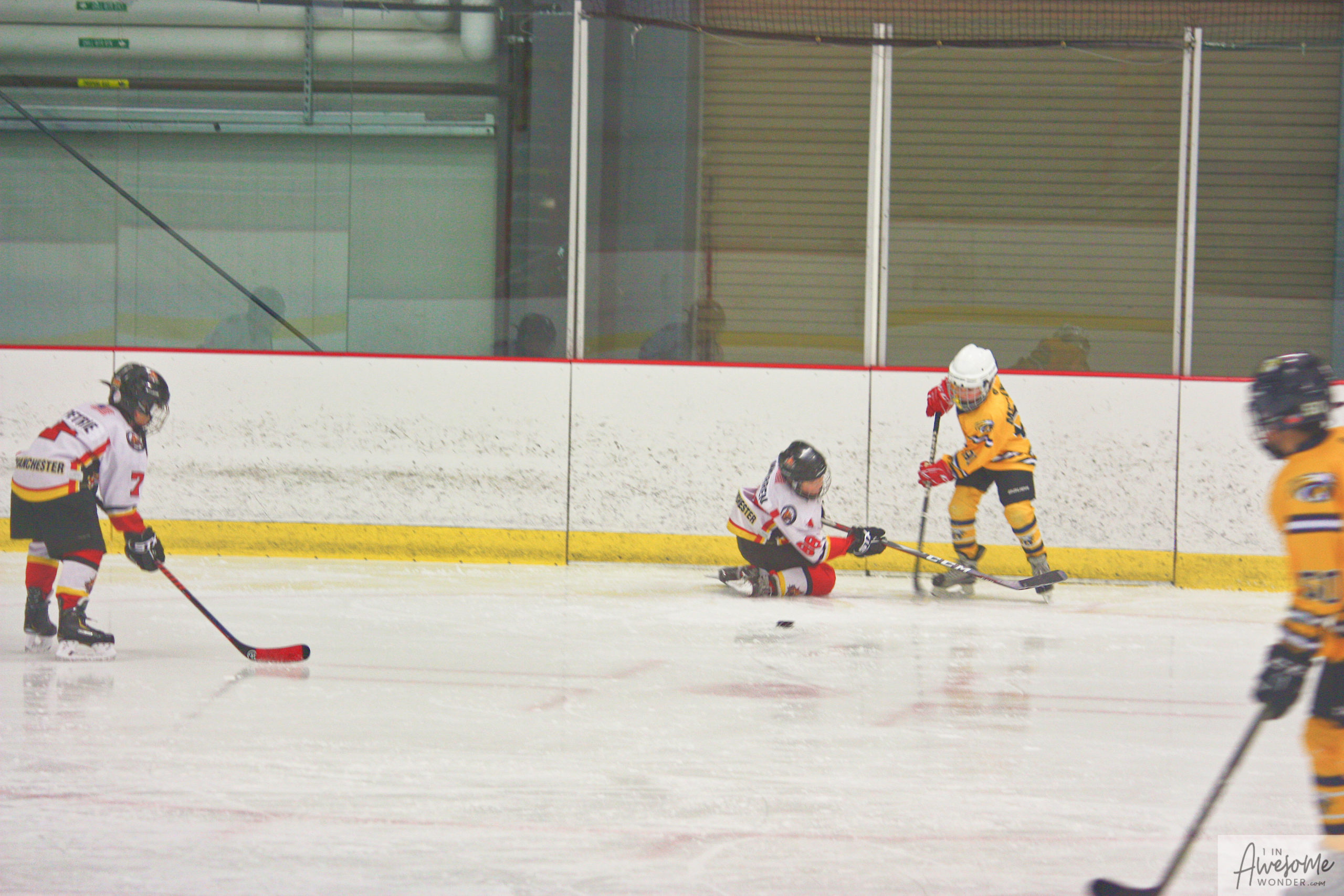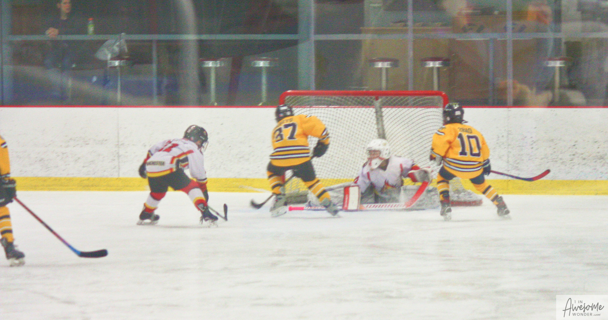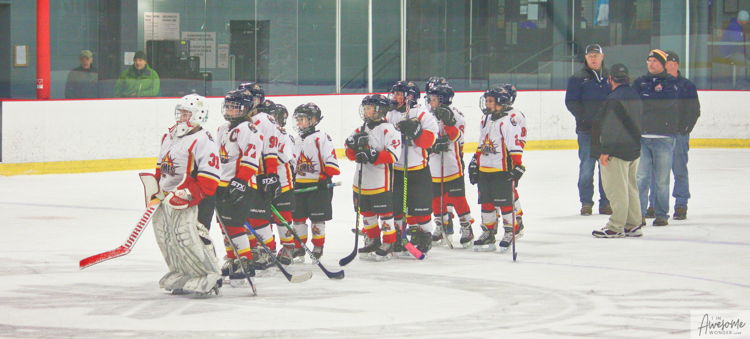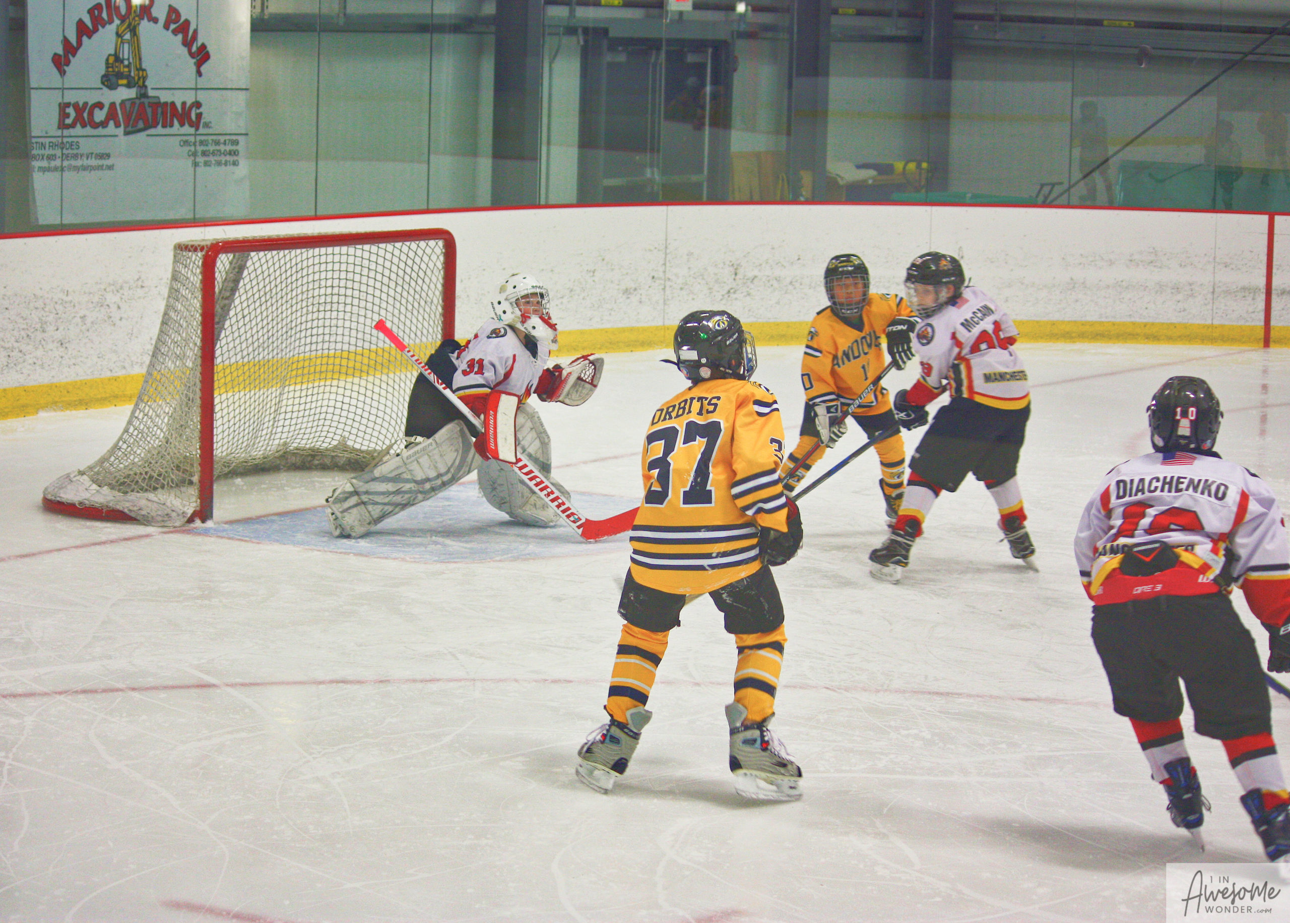 Jordan and Austin are hustling up ice while the scorekeeper seems to think that watching the game on his phone is better than the live action right in front of him.