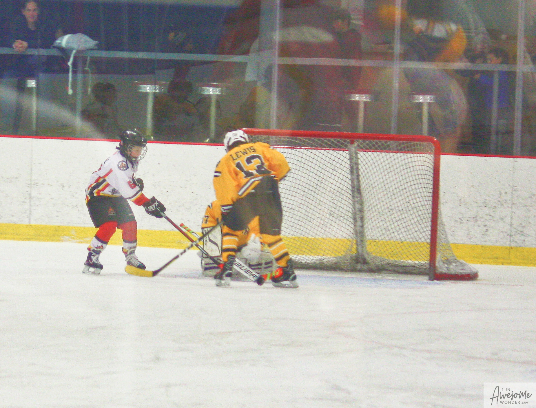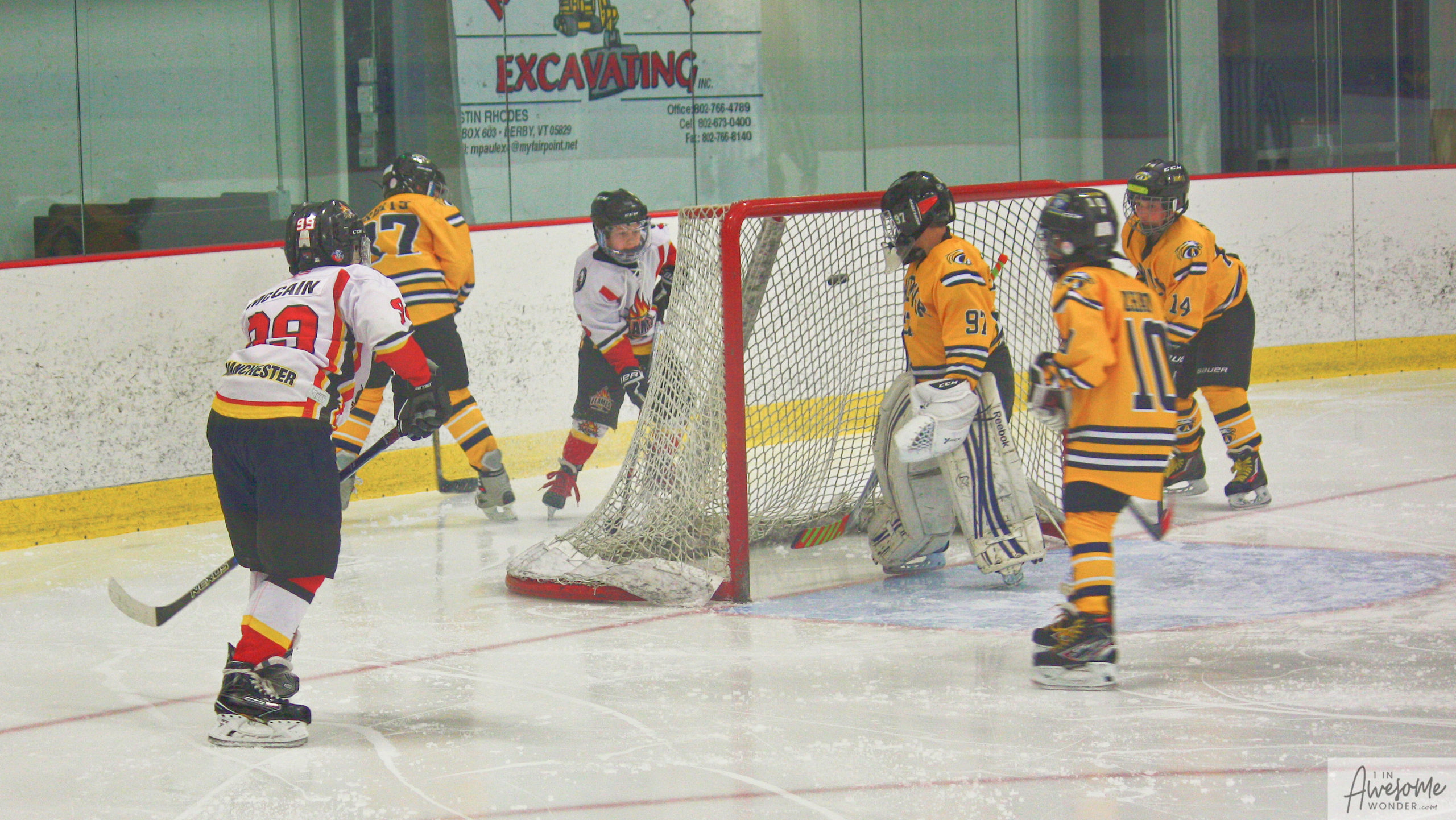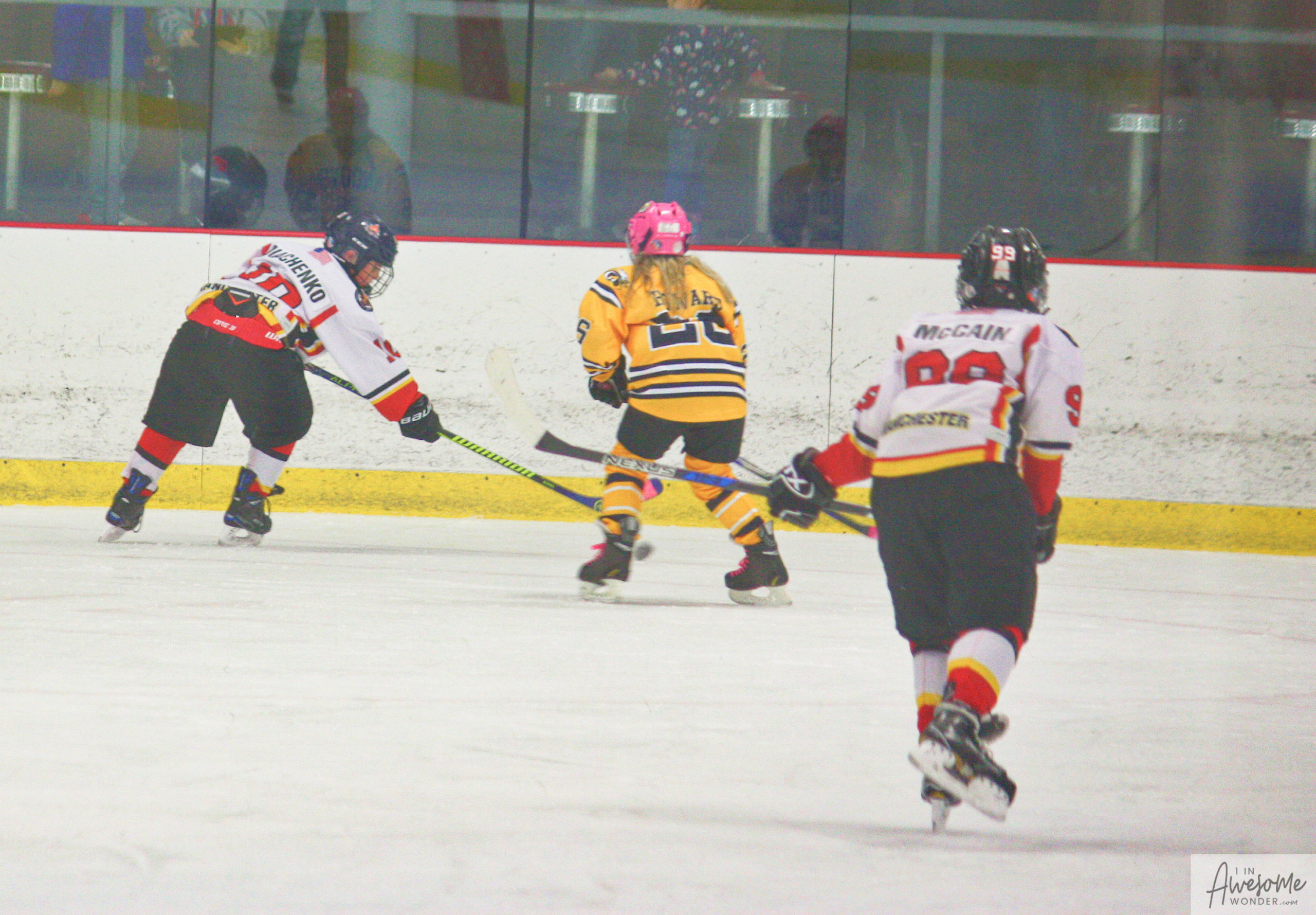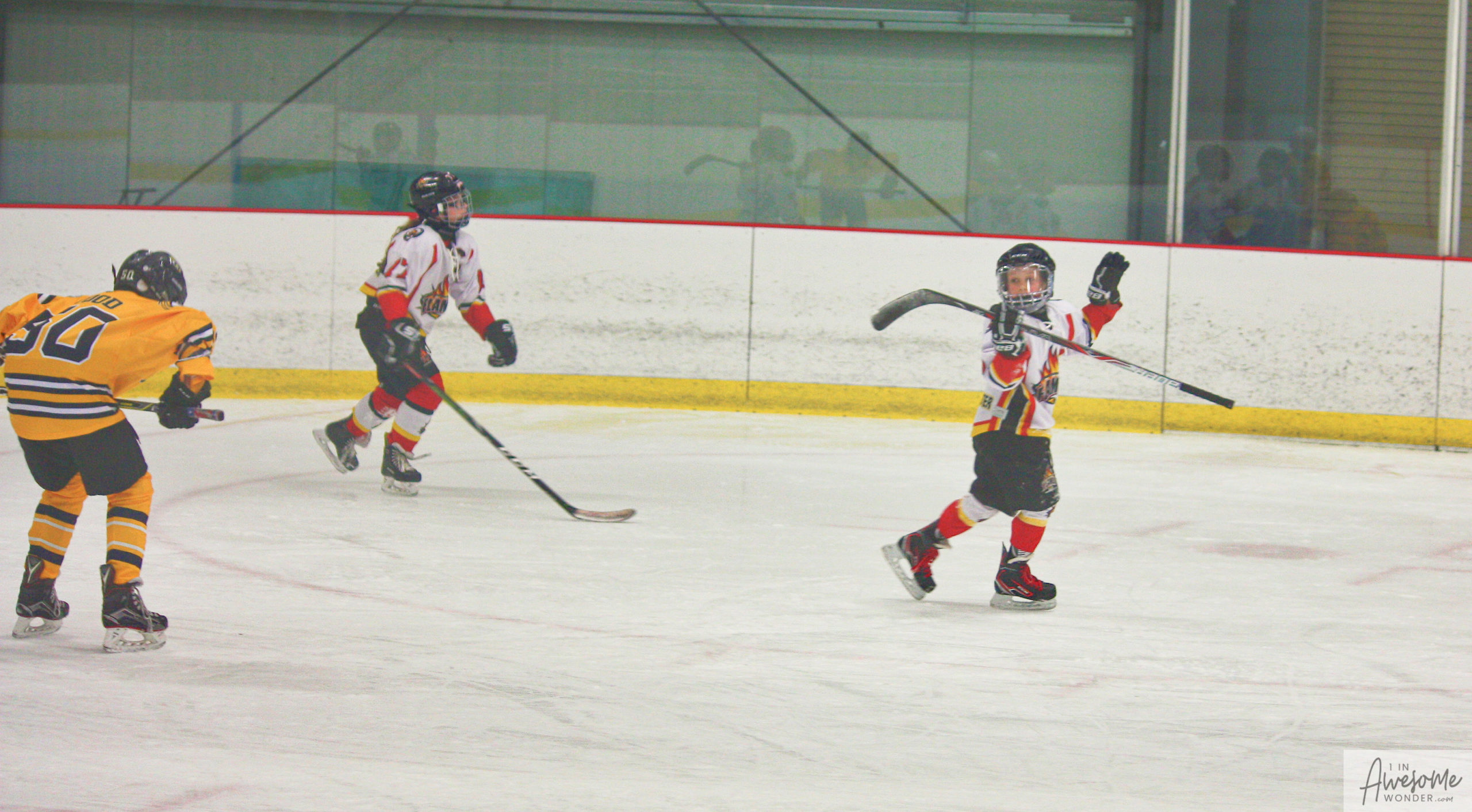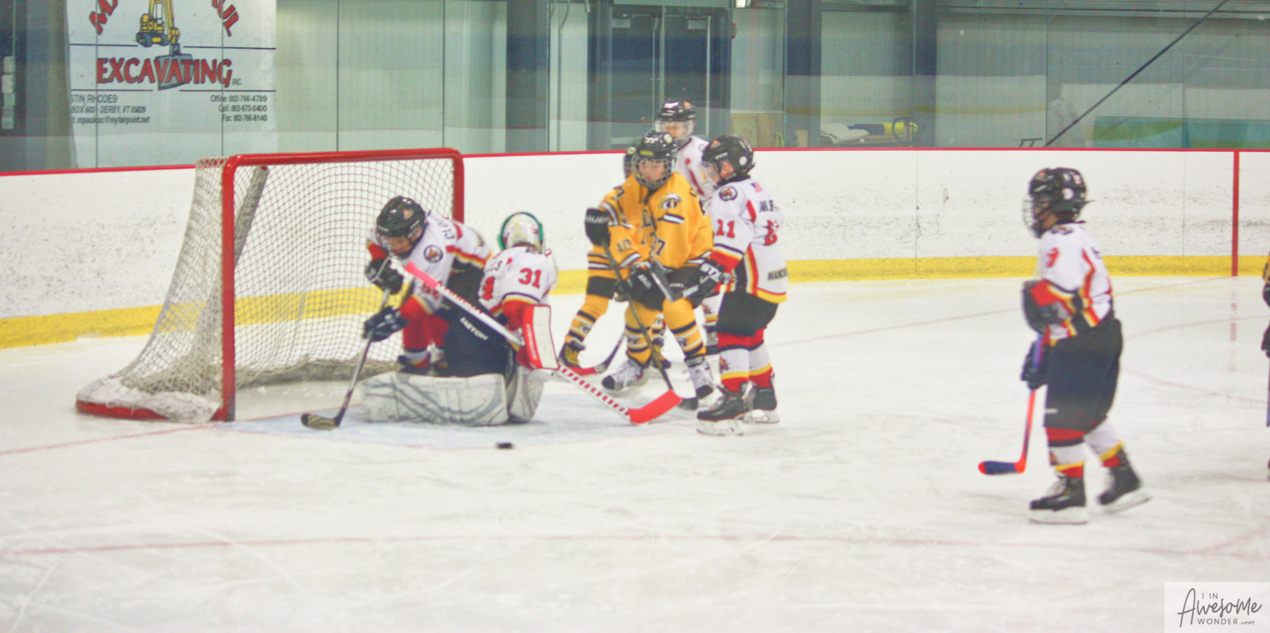 Jordan and Austin are hustling up ice while the scorekeeper seems to think that watching the game on his phone is better than the live action right in front of him.