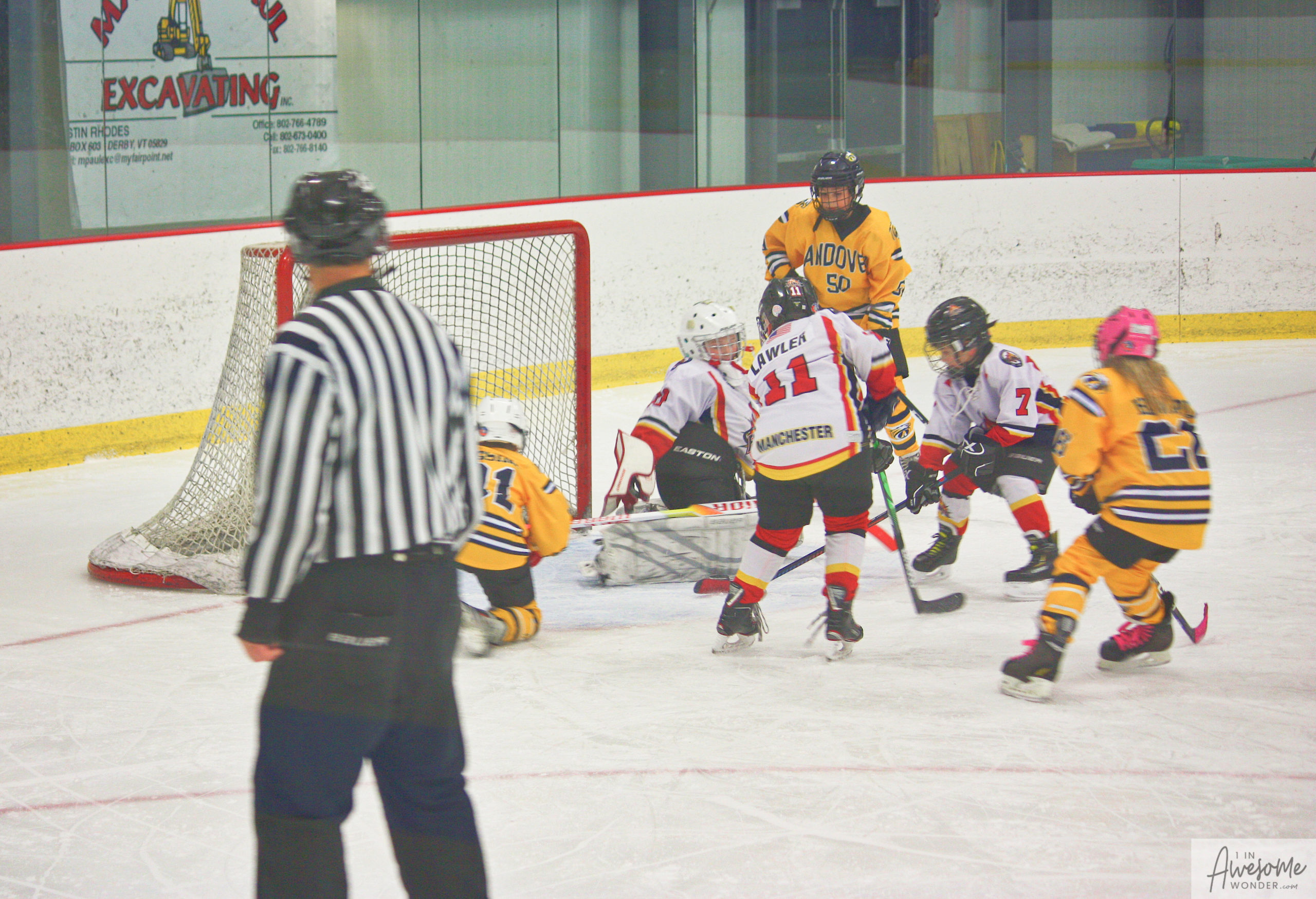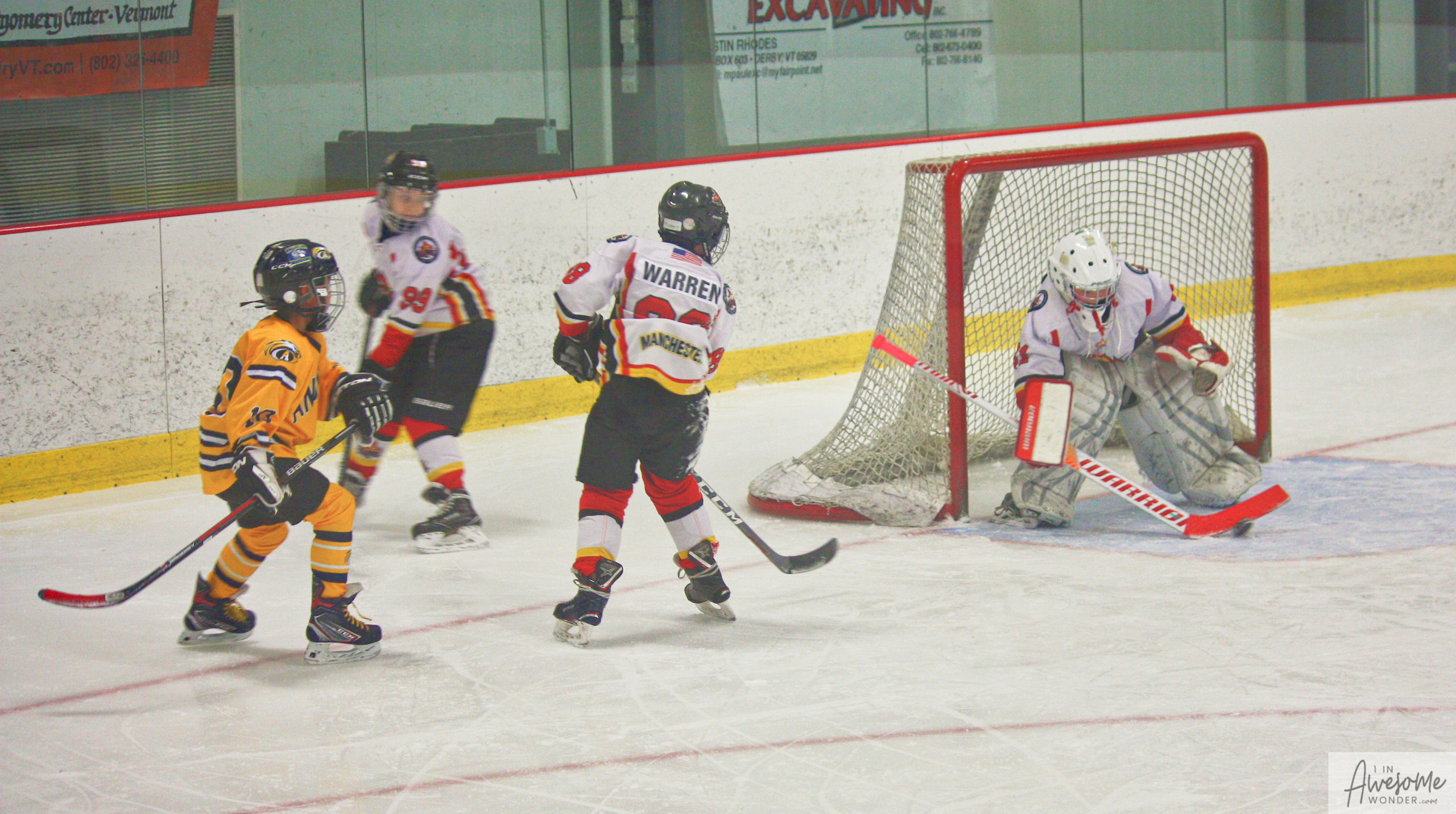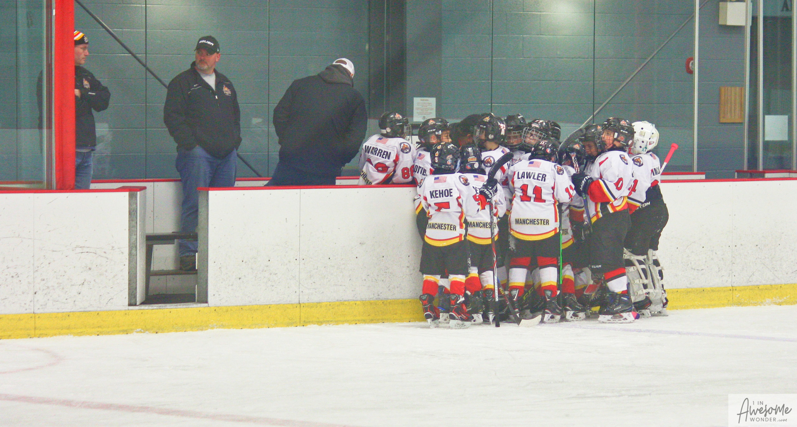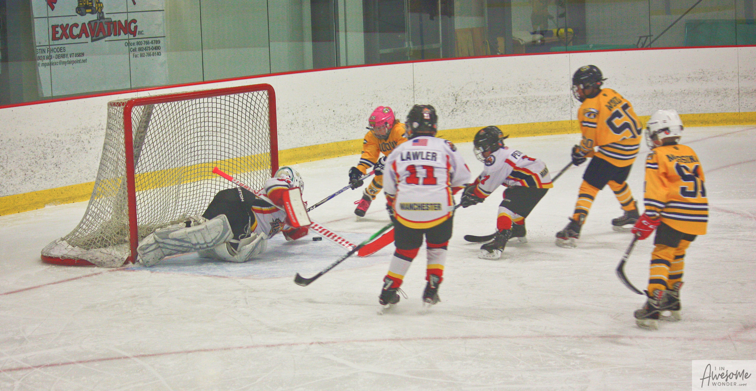 Jordan and Austin are hustling up ice while the scorekeeper seems to think that watching the game on his phone is better than the live action right in front of him.