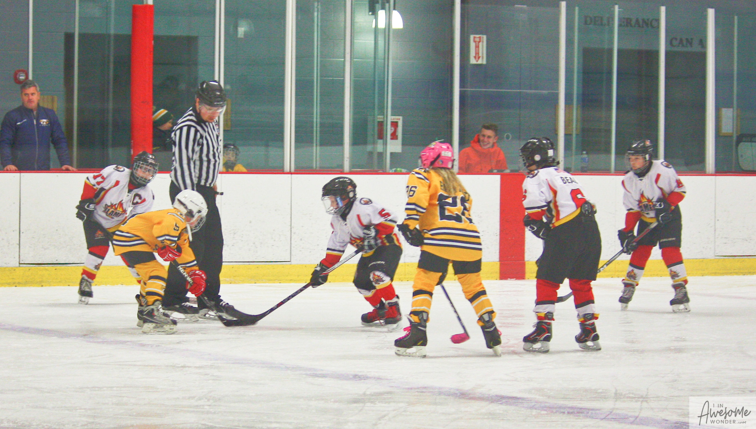 Flames face-off picture. The scorekeeper is genuinely happy about it.