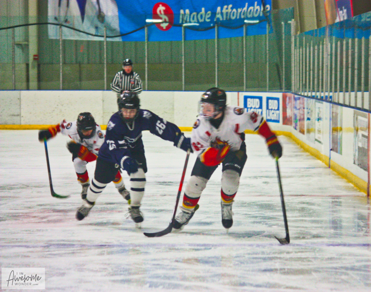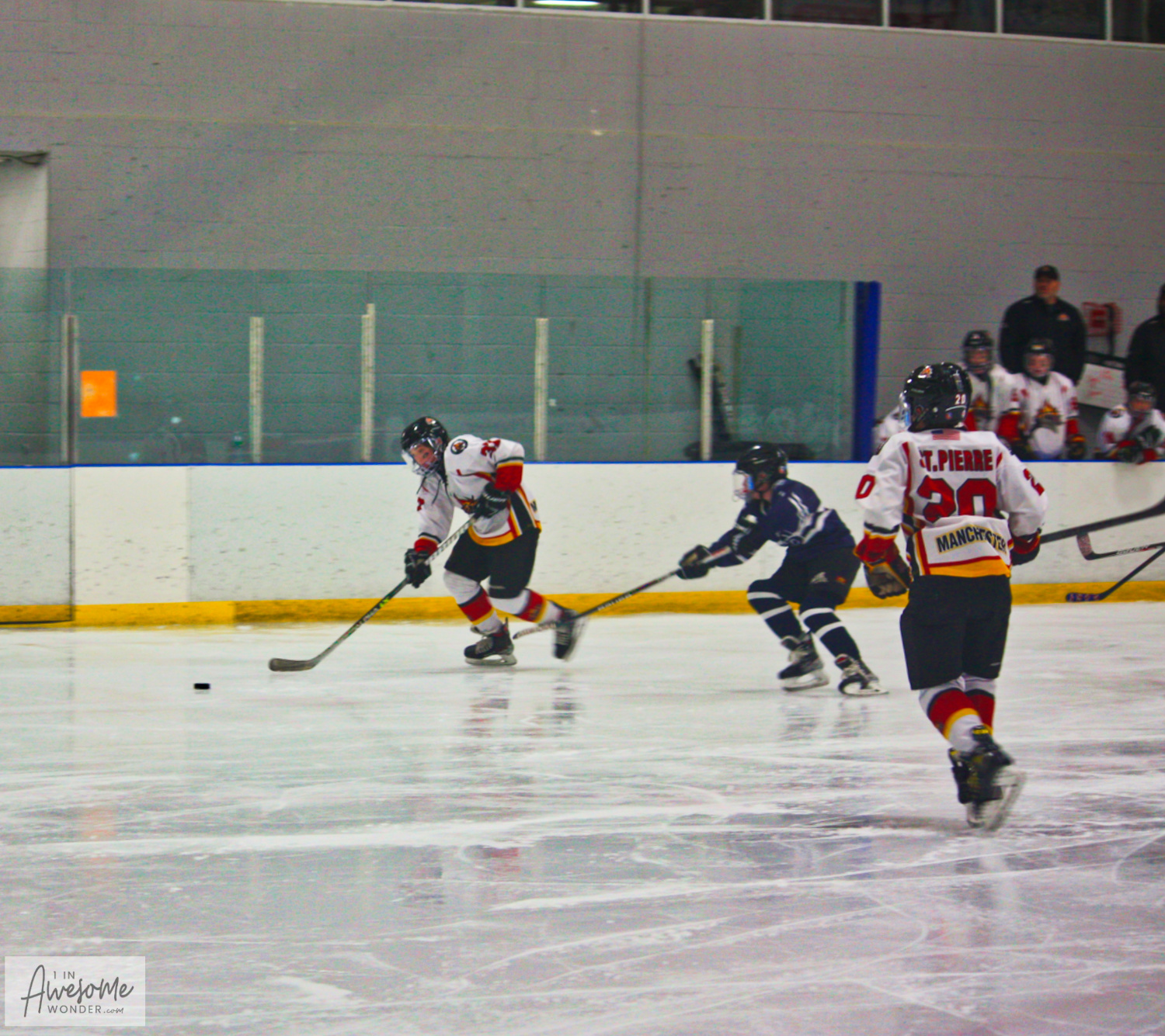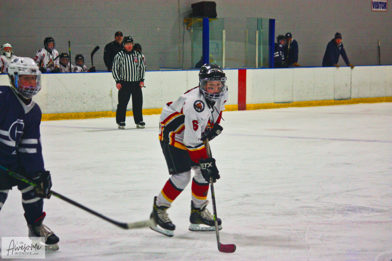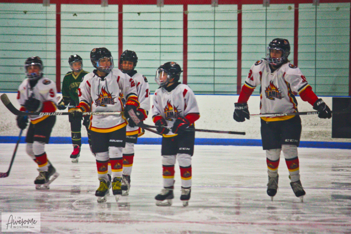 After roughly six hours between games, the Flames made their way back to Tri-Town Arena. They were there for their third and final game of the round-robin part of the tournament. These games would ultimately decide the teams seeding order for Sunday’s games. The top four teams would play in semifinal games on Sunday morning.
