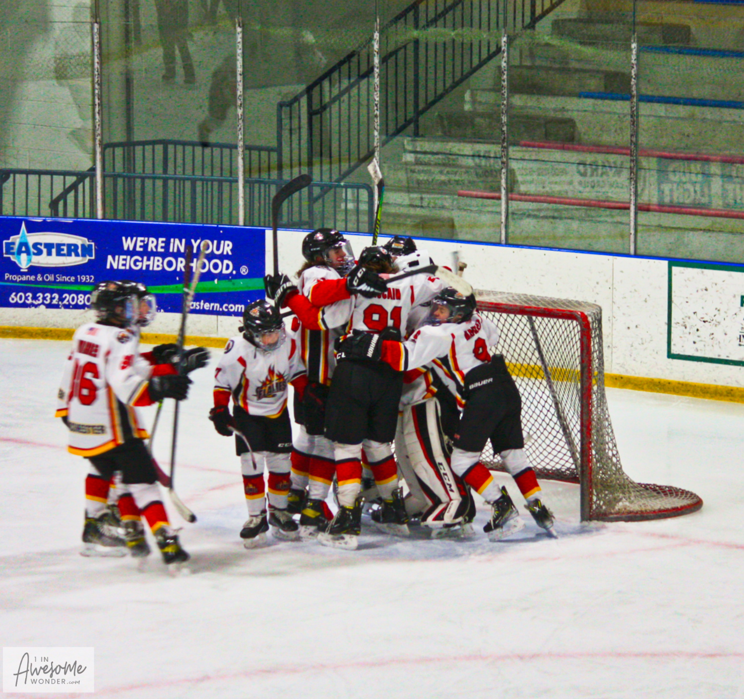 Later in the afternoon the Flames were back at the rink to play the Oyster River Cats in the Turkey Shootout 2022 Championship Game. The only two teams that had not lost in their division met for the top spot. The Flames had piled up 15 goals in their final two games entering Sunday afternoon, but that failed in comparison to the 33 goals that the Cats had scored in the final two games.