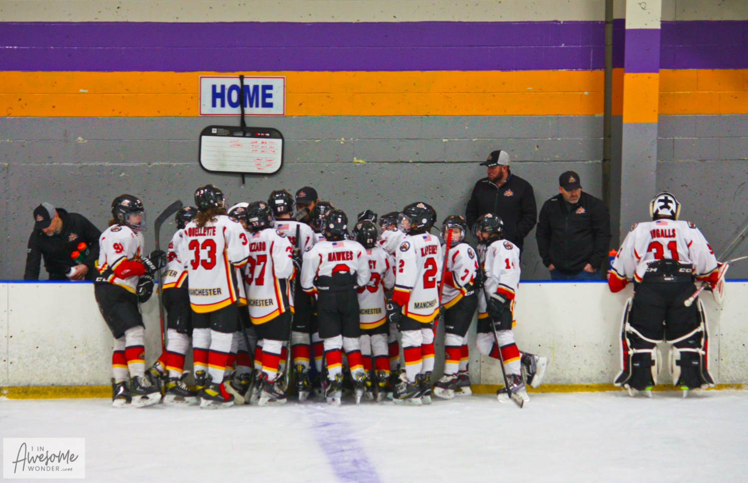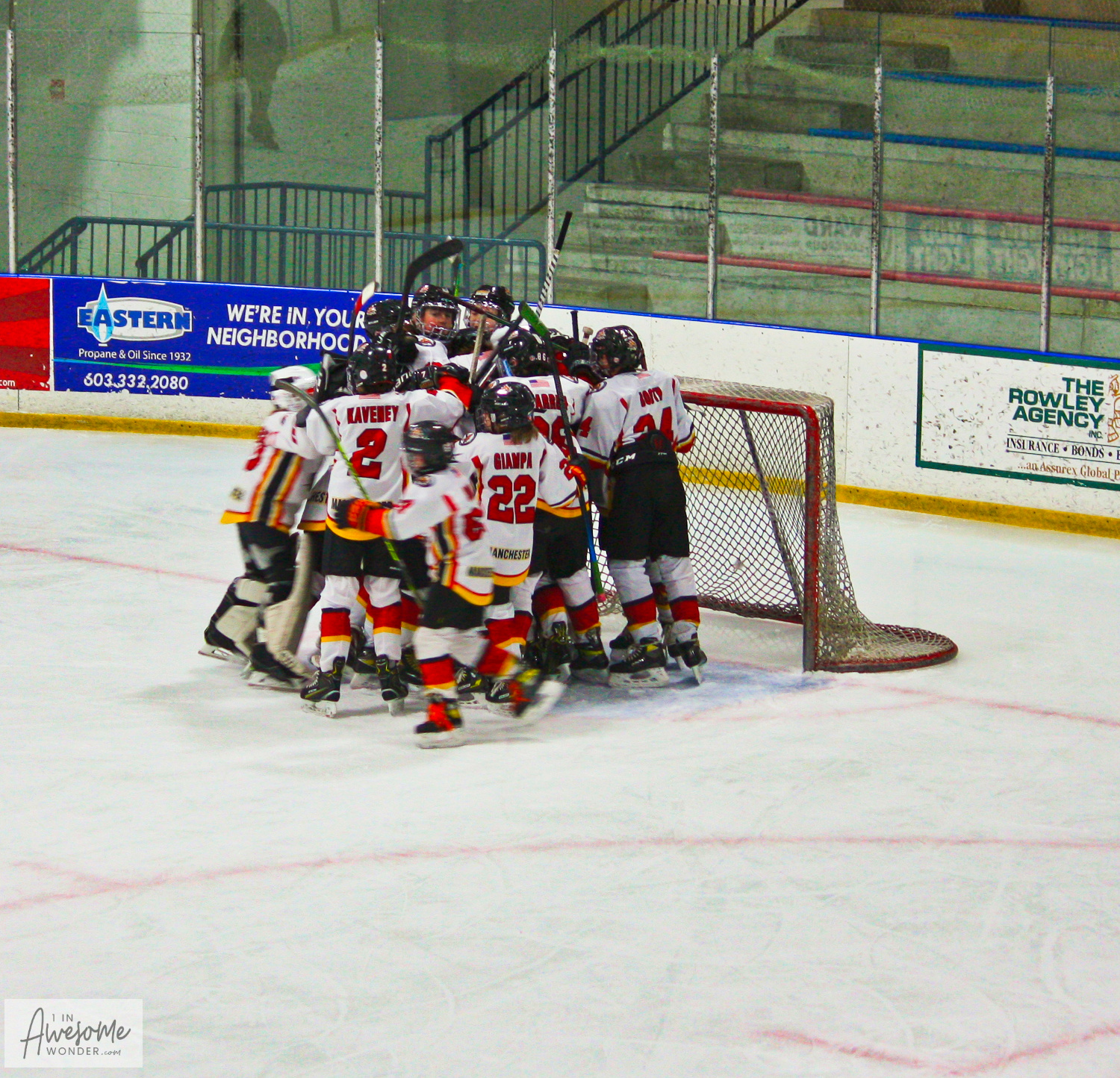 The Flames played the North Attleborough Devils on Ryan Frew Memorial Rink. The team knew from the earlier scores that this might not be the most competitive game. Kids played out of position and even opposite handed, but kept skating regardless. The Flames were the better team for sure, but they didn’t need to run up scores. So they had some fun trying different things. The Devils goalie ended up taking quite a spill and had to leave the game with an injury, unfortunately. We all hope that the player is doing okay and back to good health.