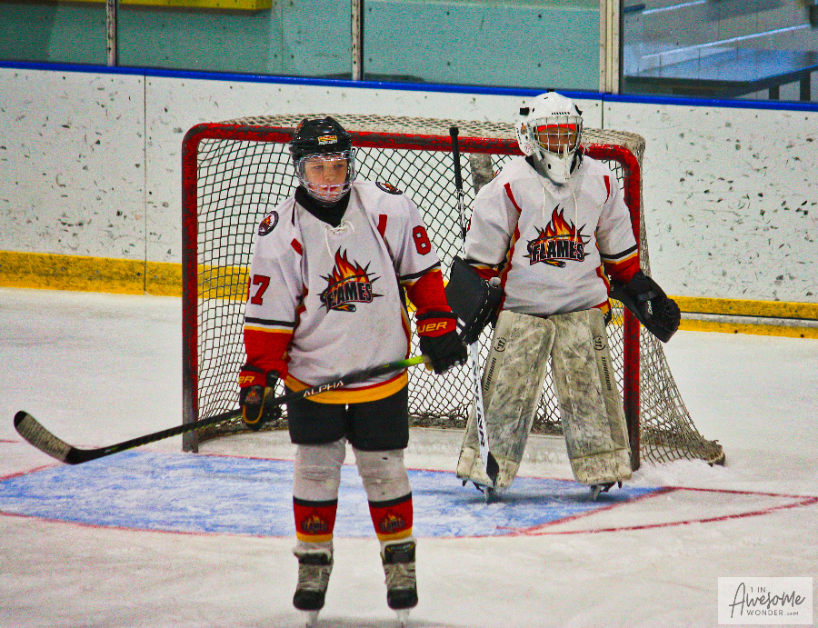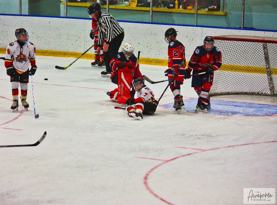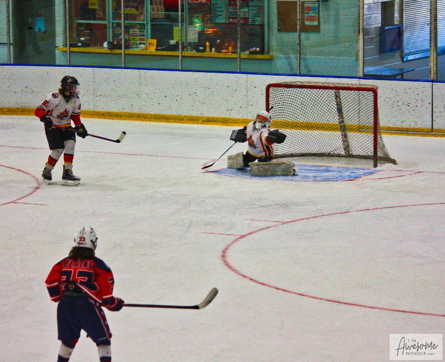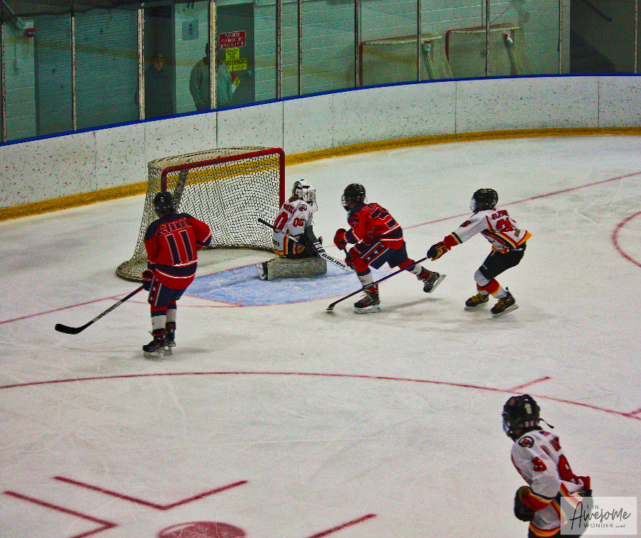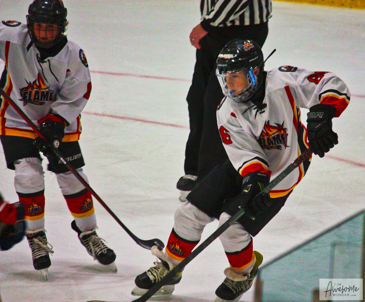 Sunday morning everyone was up and at ’em early, traveling to Bavis Arena to play the Jr. Terriers. The 2010 Flames had lost a 3-1 decision to this team a few weeks back and after a 60-90 minute ride to start the day, who knew what would come of it. The Flames showed up in fine form. They scored in each of the three periods and skated north taking two for the road, with their second straight 5-1 decision of the weekend.