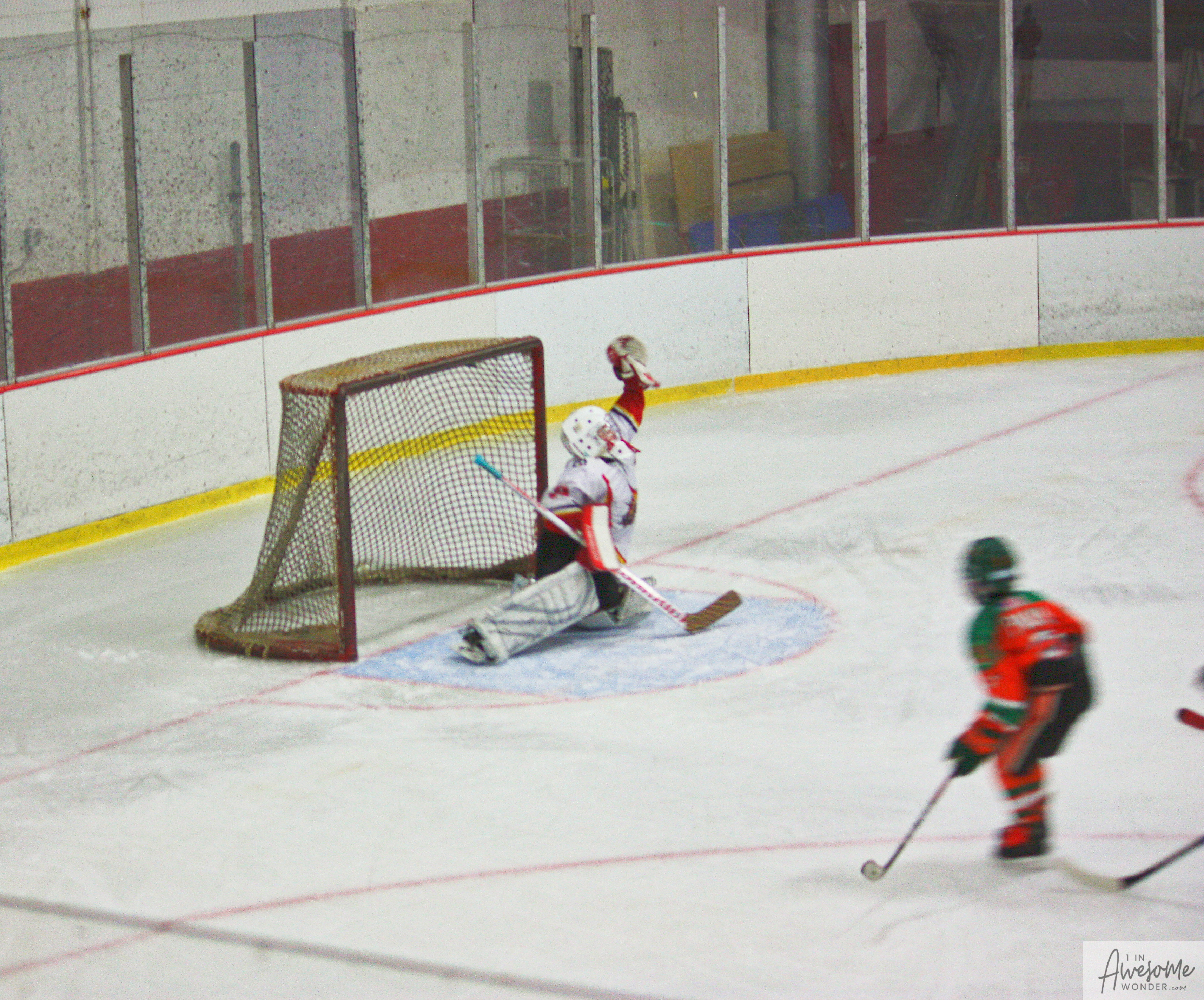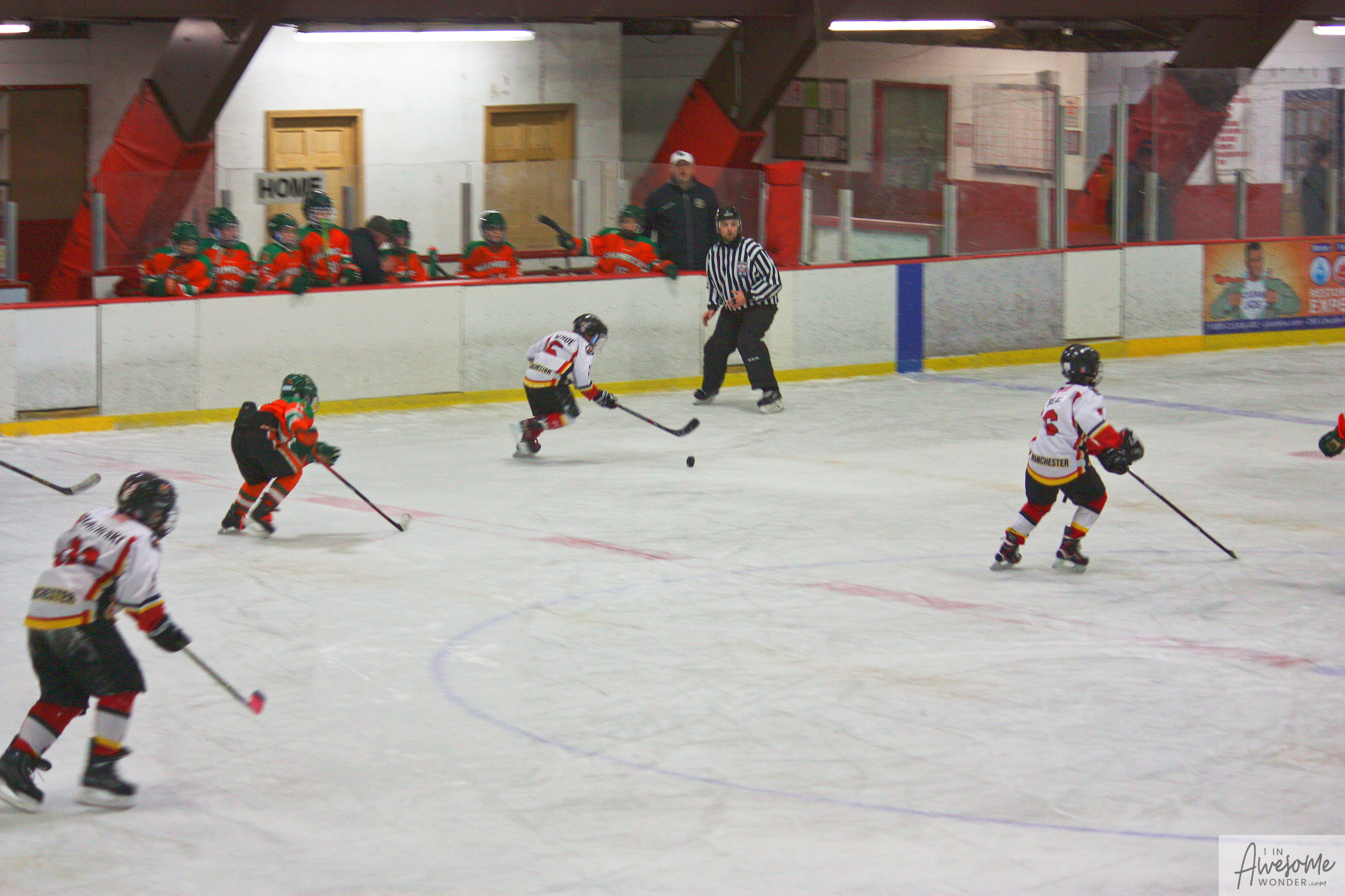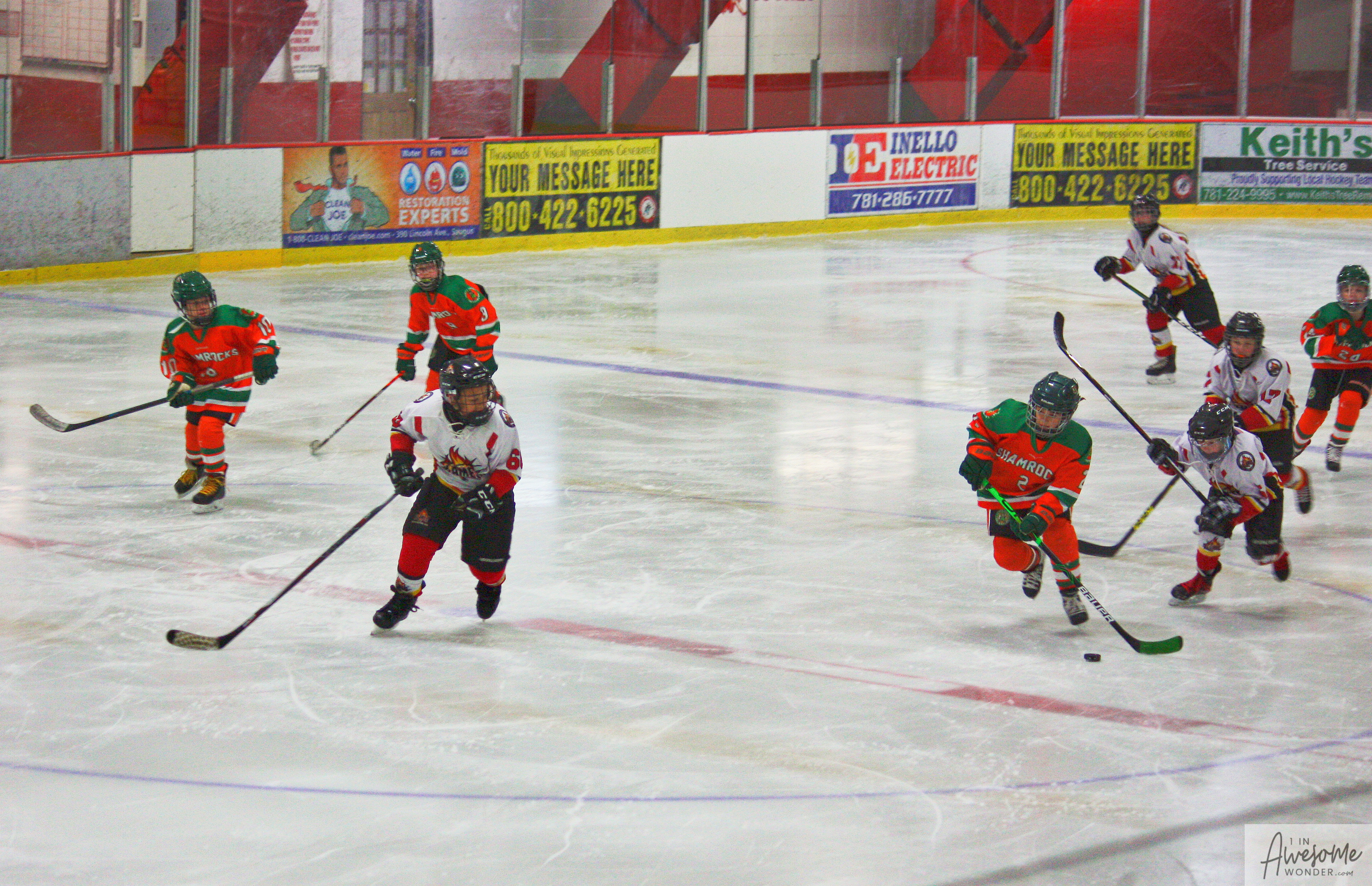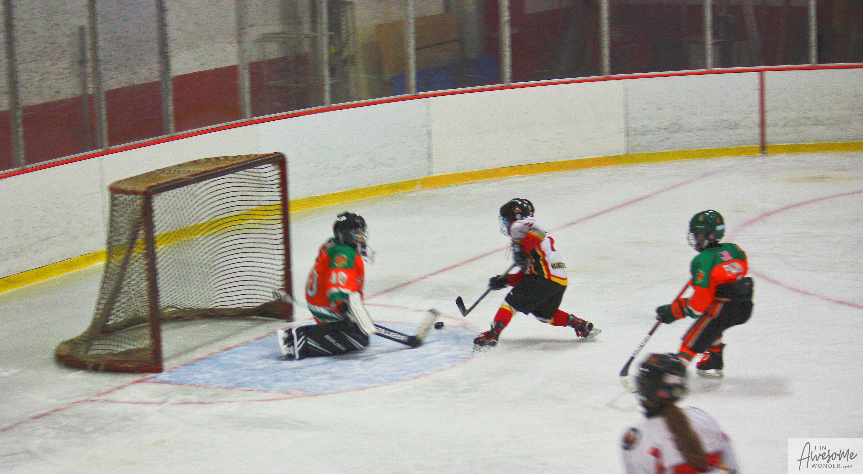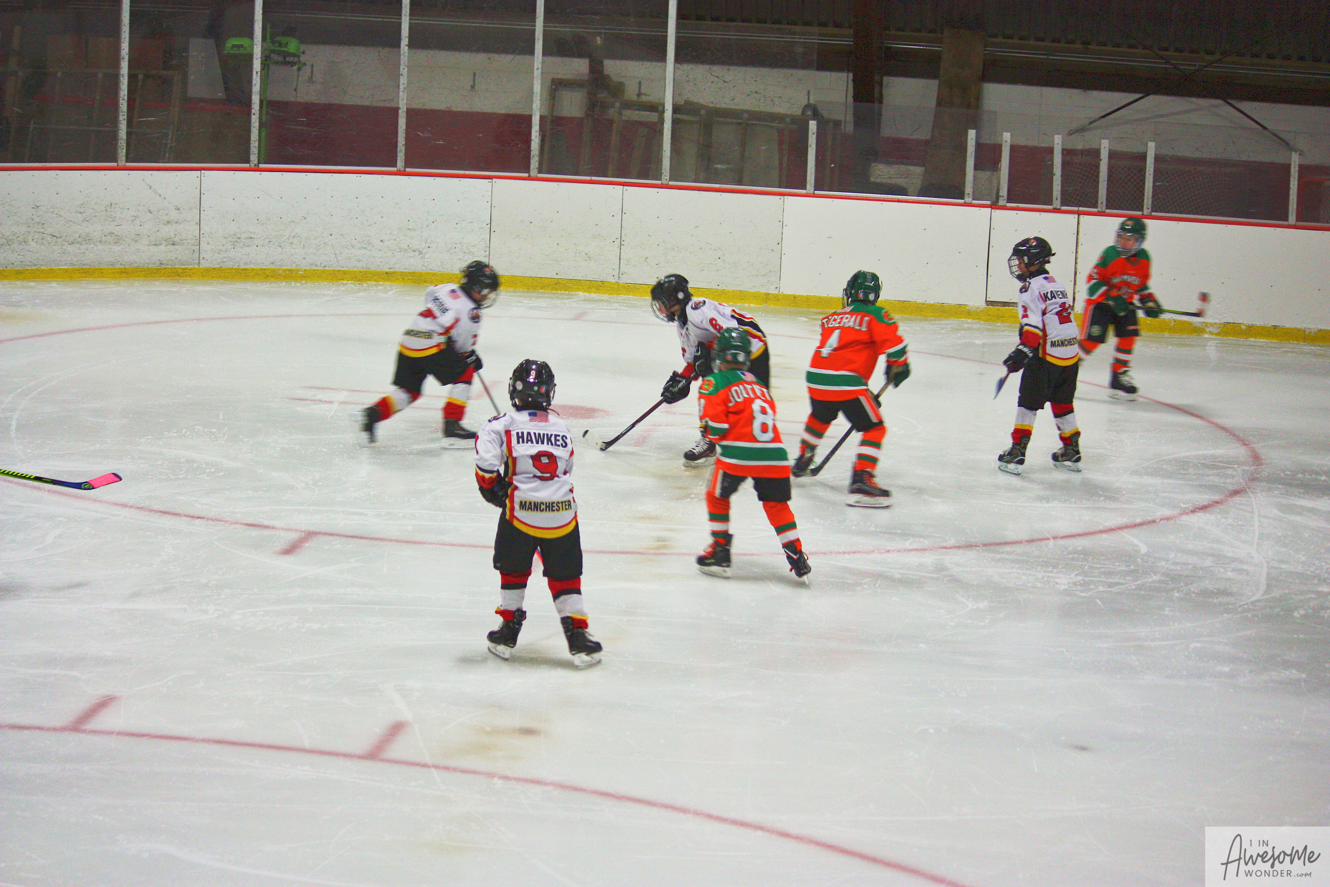 The temperature was 12 degrees Fahrenheit when we left the house at 6:30 this morning. It was frosty, cold, and early. By 7:30 am we were at Kasabuski Rink in Saugus, MA. The game started early, just before 8:30 am. The Flames fell behind 1-0, but had tied the game, 1-1 by the time the first period ended. When all was said and done, the Flames skated out of Saugus with a 7-4 victory.