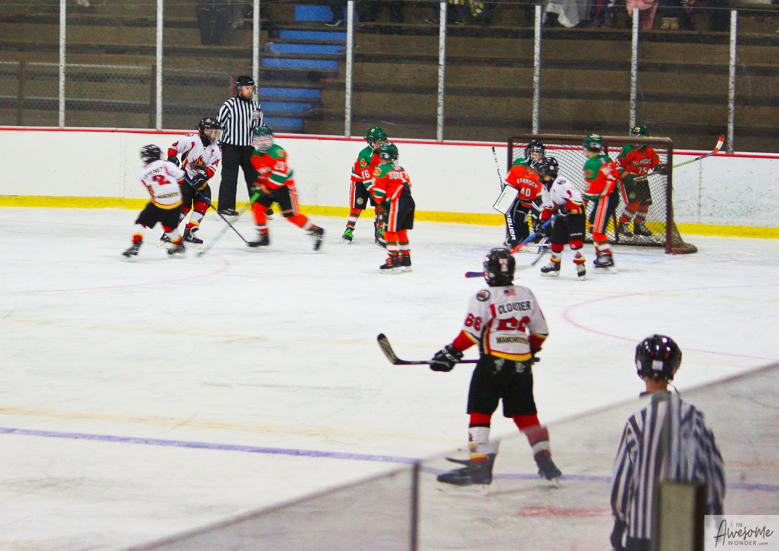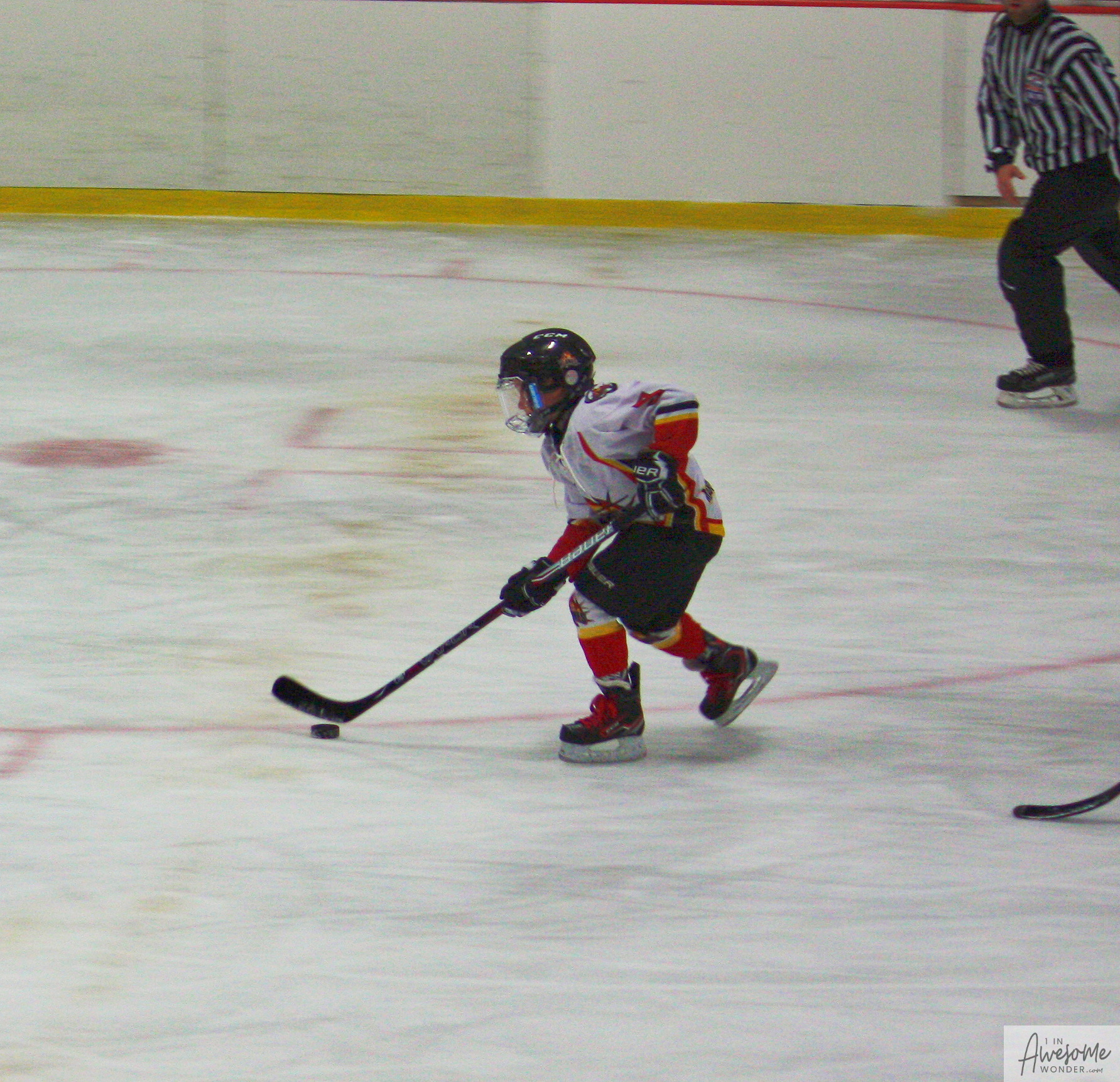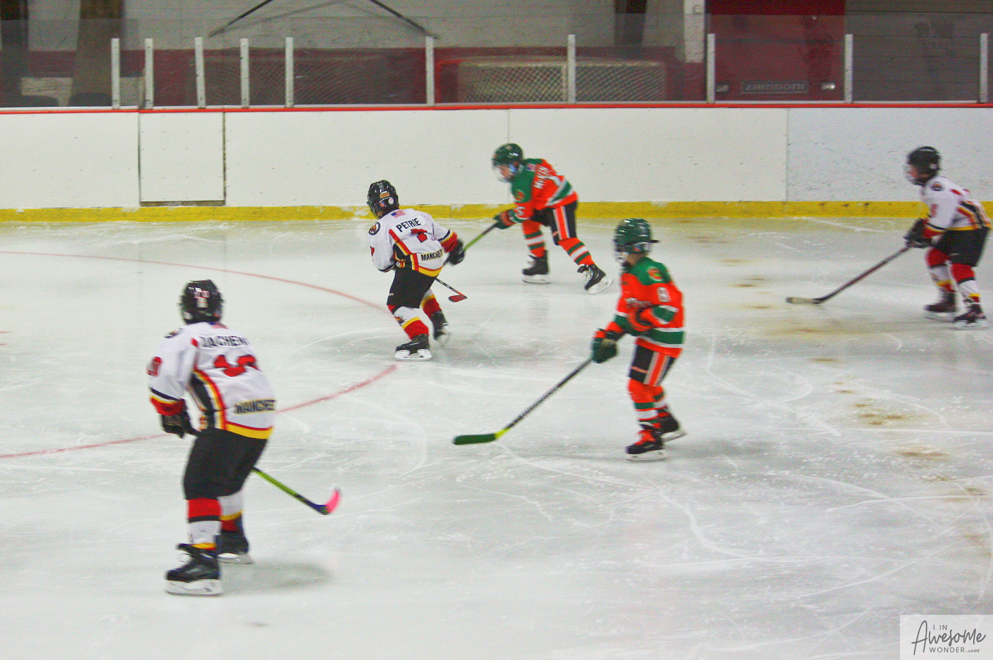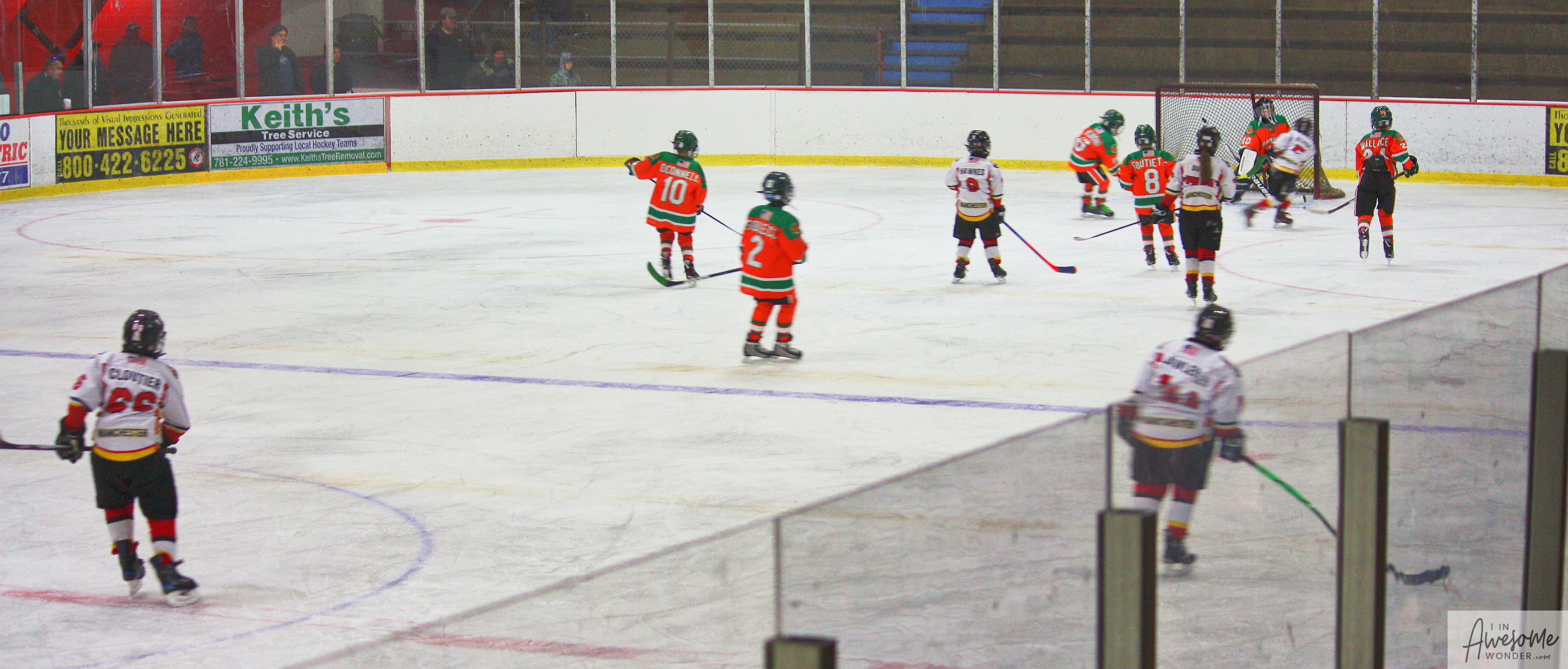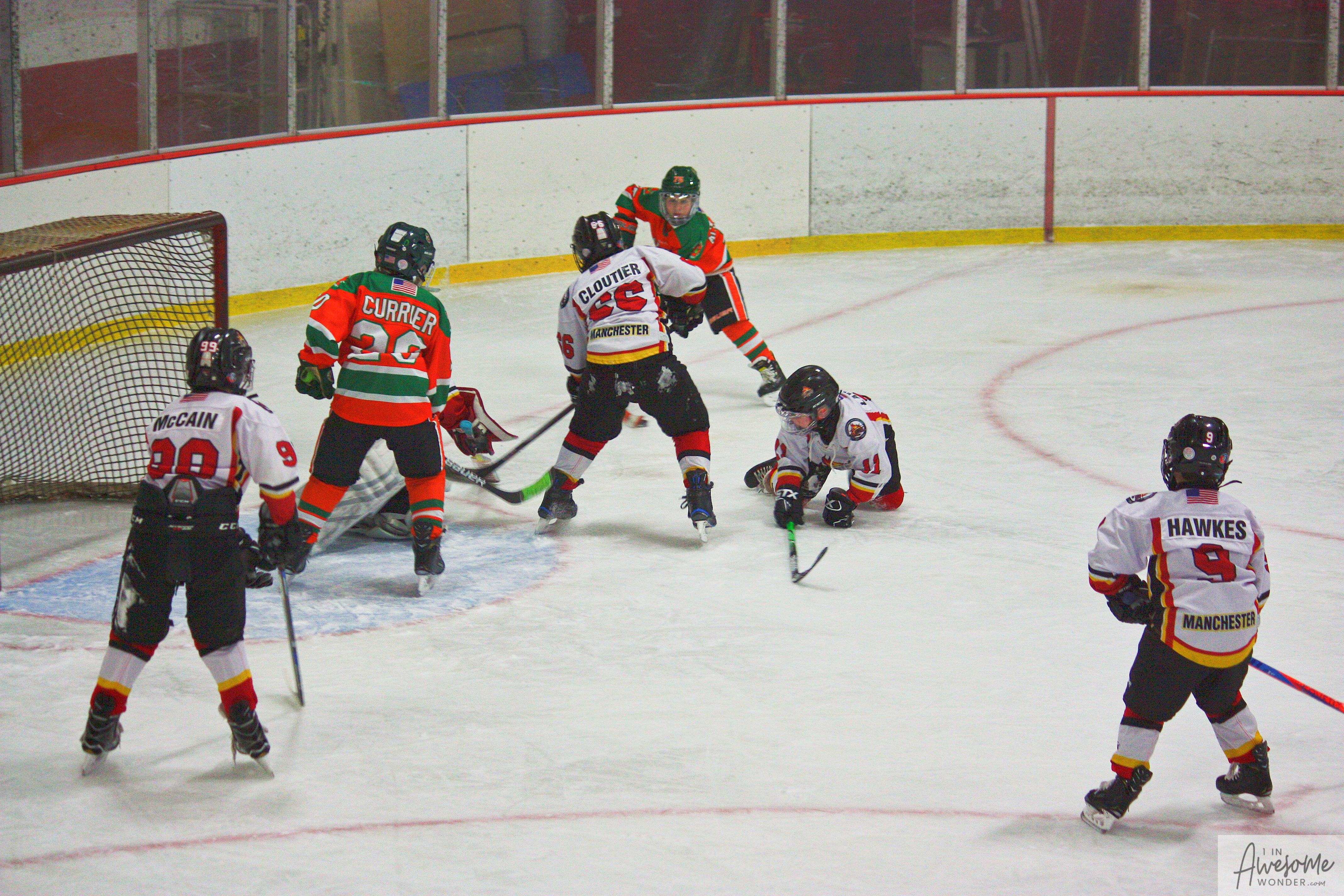 The temperature was 12 degrees Fahrenheit when we left the house at 6:30 this morning. It was frosty, cold, and early. By 7:30 am we were at Kasabuski Rink in Saugus, MA. The game started early, just before 8:30 am. The Flames fell behind 1-0, but had tied the game, 1-1 by the time the first period ended. When all was said and done, the Flames skated out of Saugus with a 7-4 victory.
