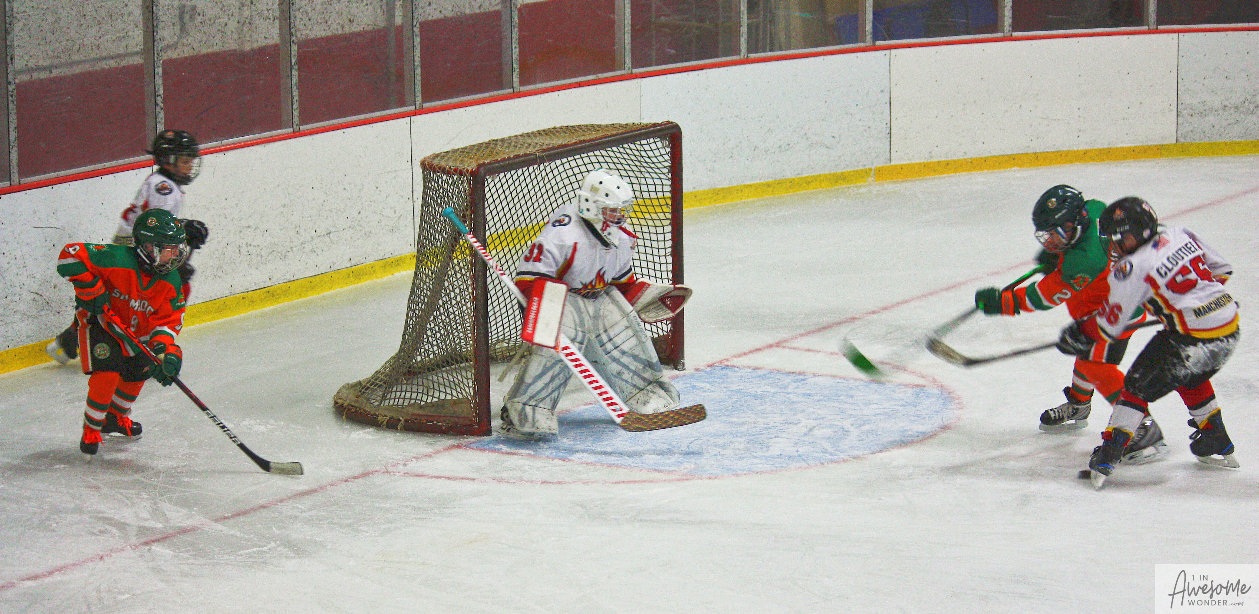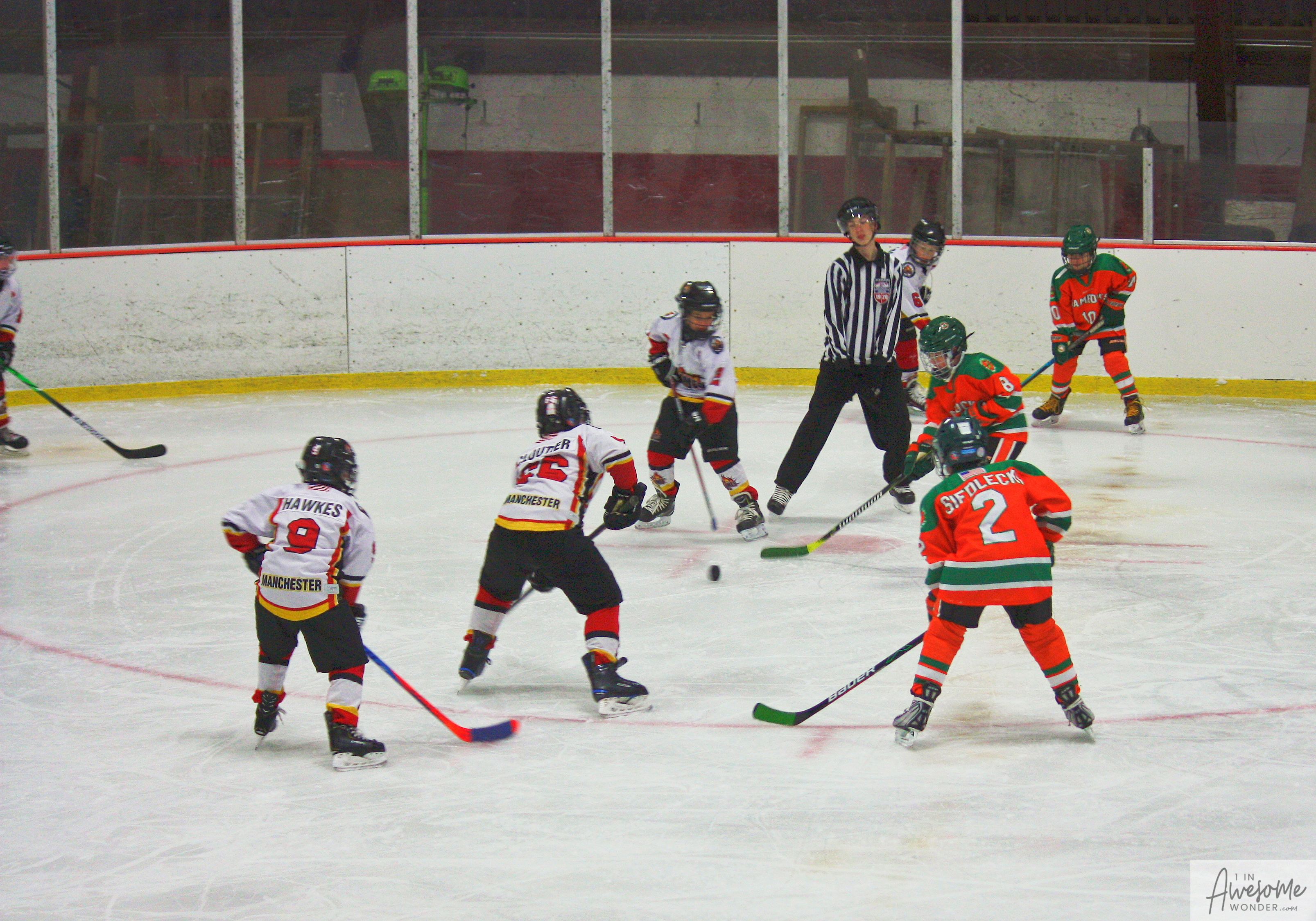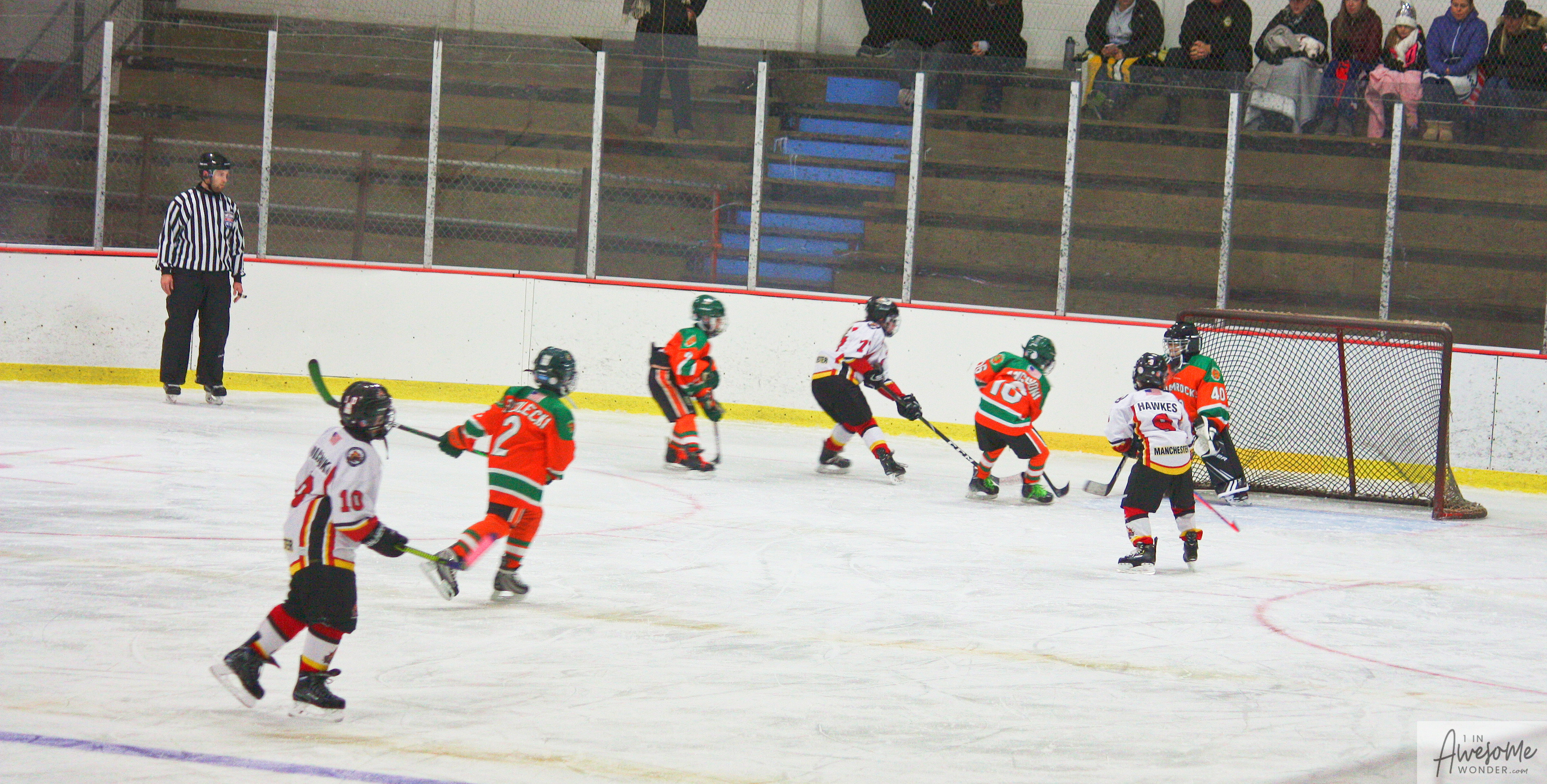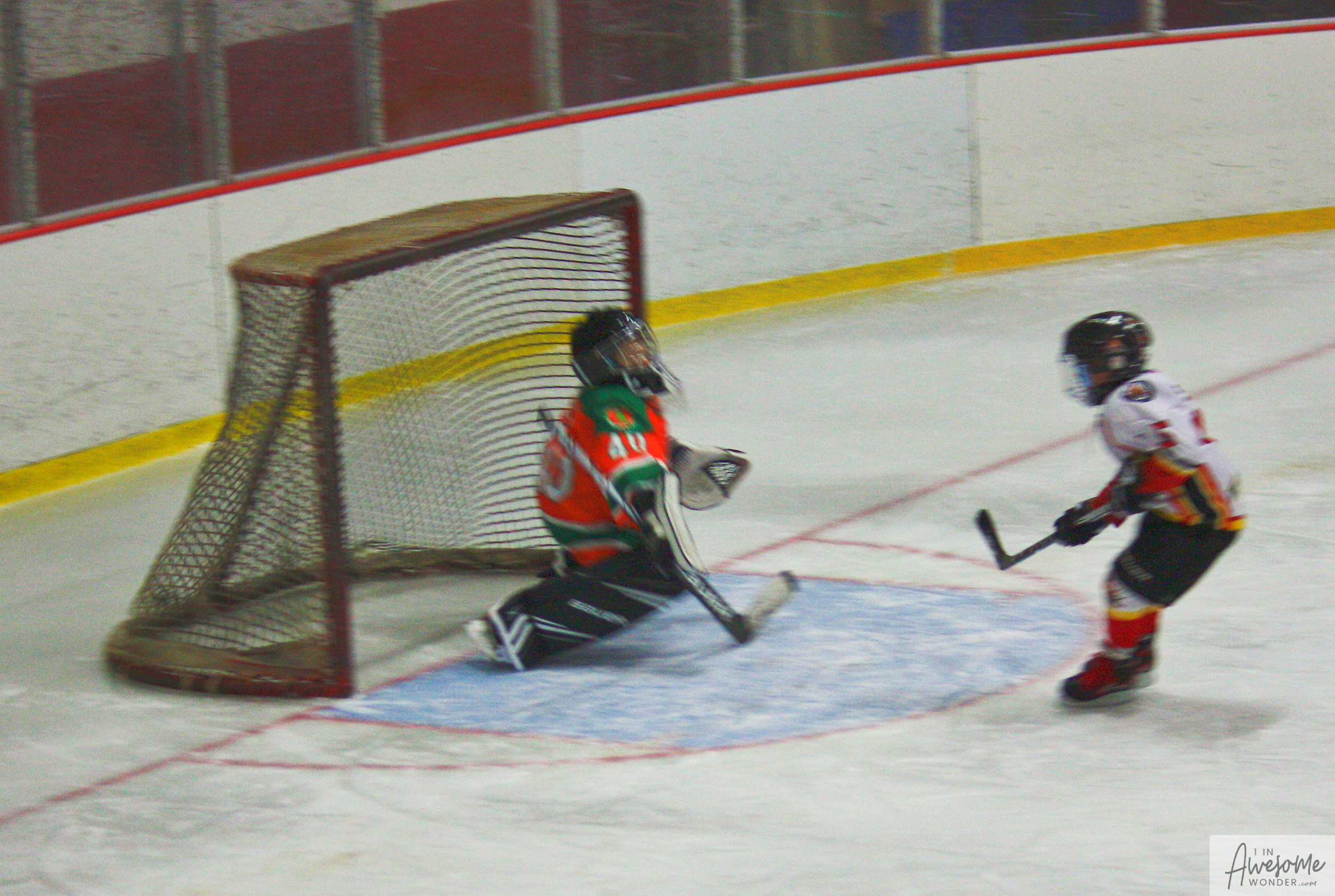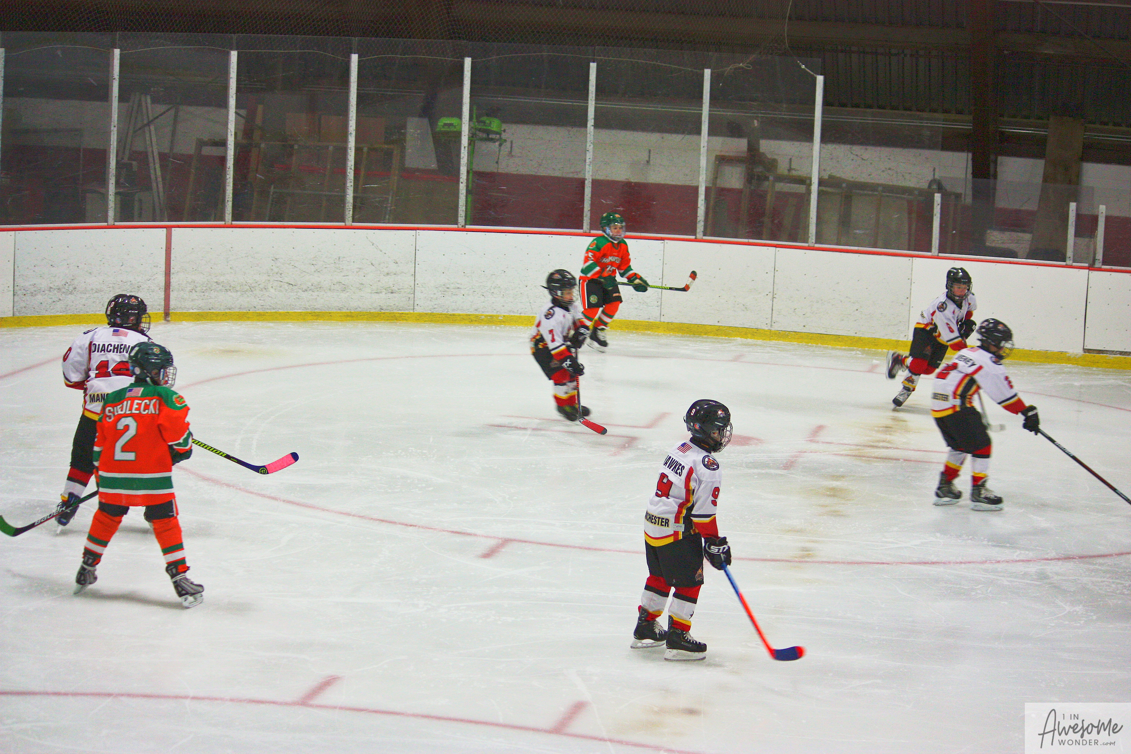 The temperature was 12 degrees Fahrenheit when we left the house at 6:30 this morning. It was frosty, cold, and early. By 7:30 am we were at Kasabuski Rink in Saugus, MA. The game started early, just before 8:30 am. The Flames fell behind 1-0, but had tied the game, 1-1 by the time the first period ended. When all was said and done, the Flames skated out of Saugus with a 7-4 victory.