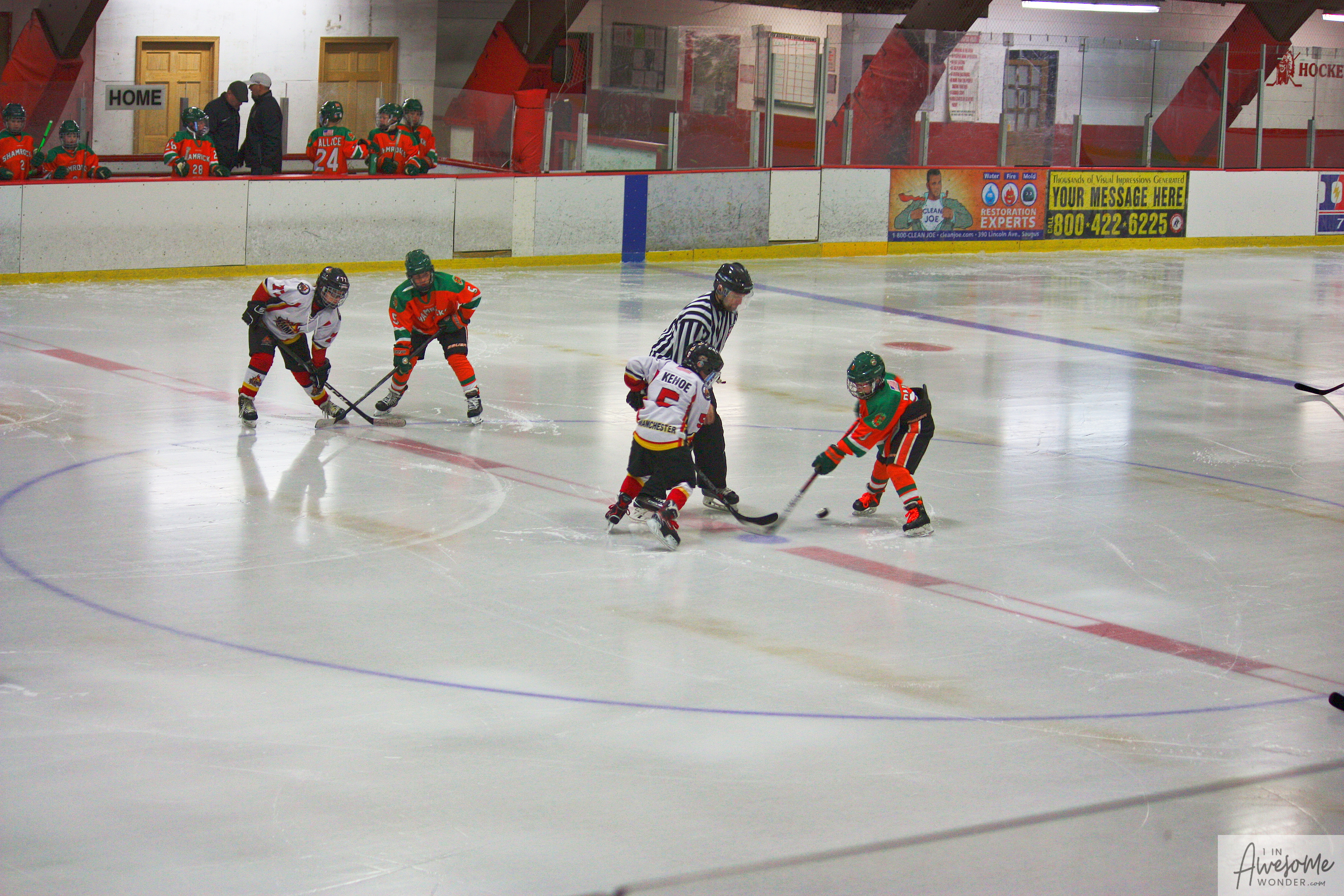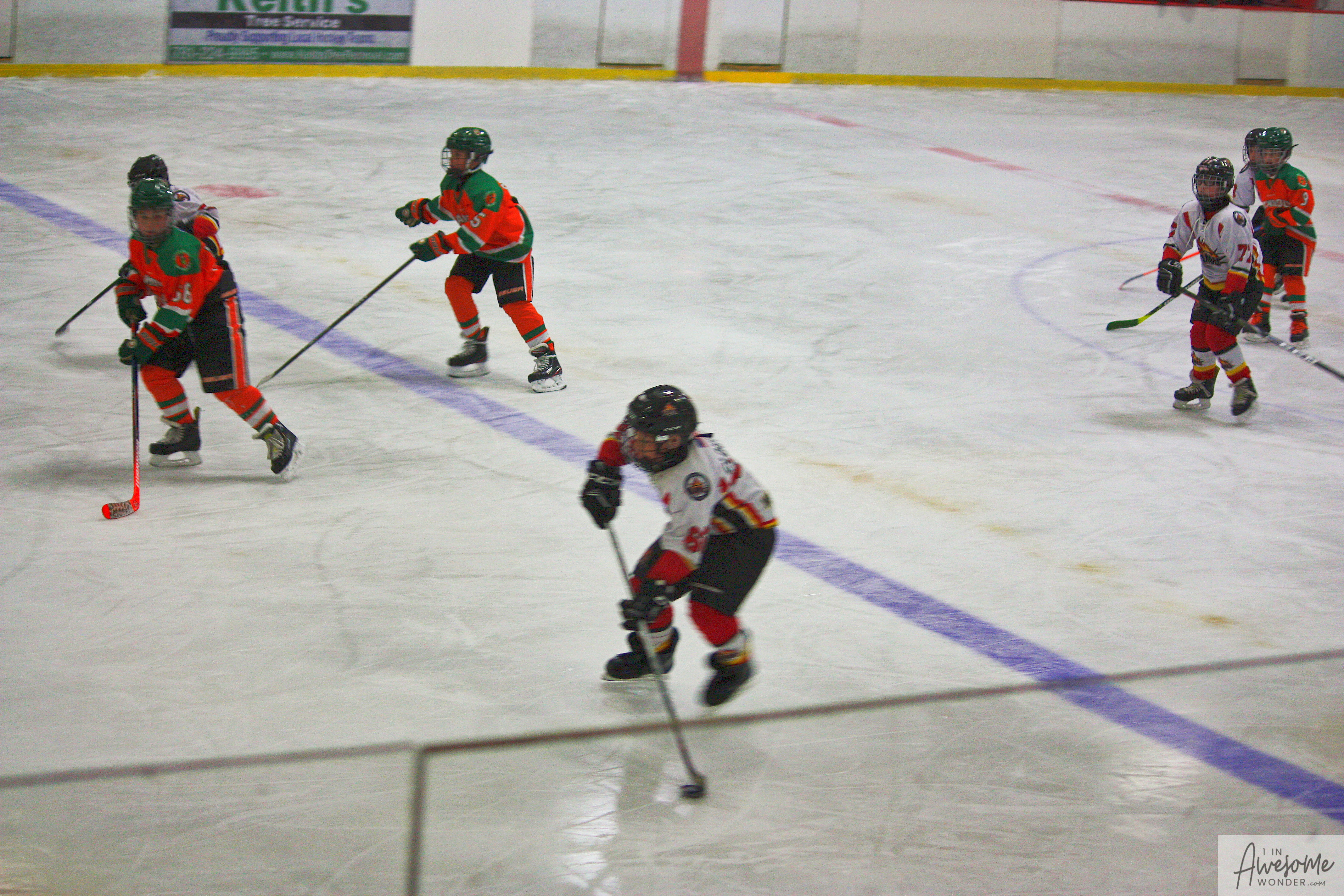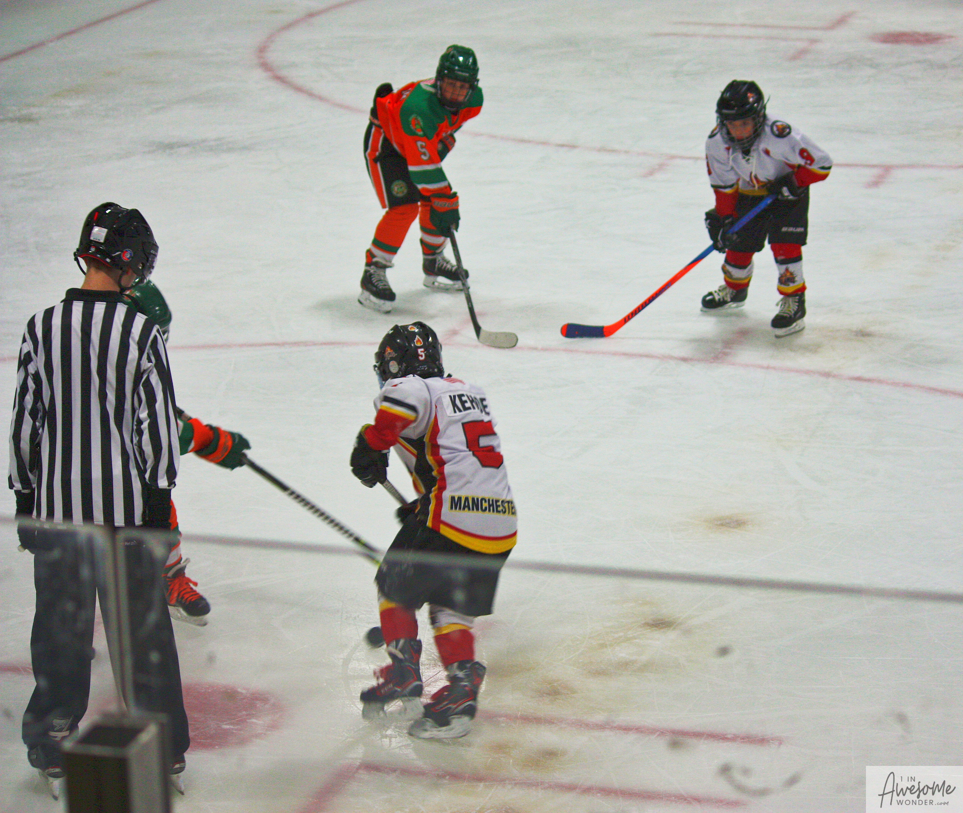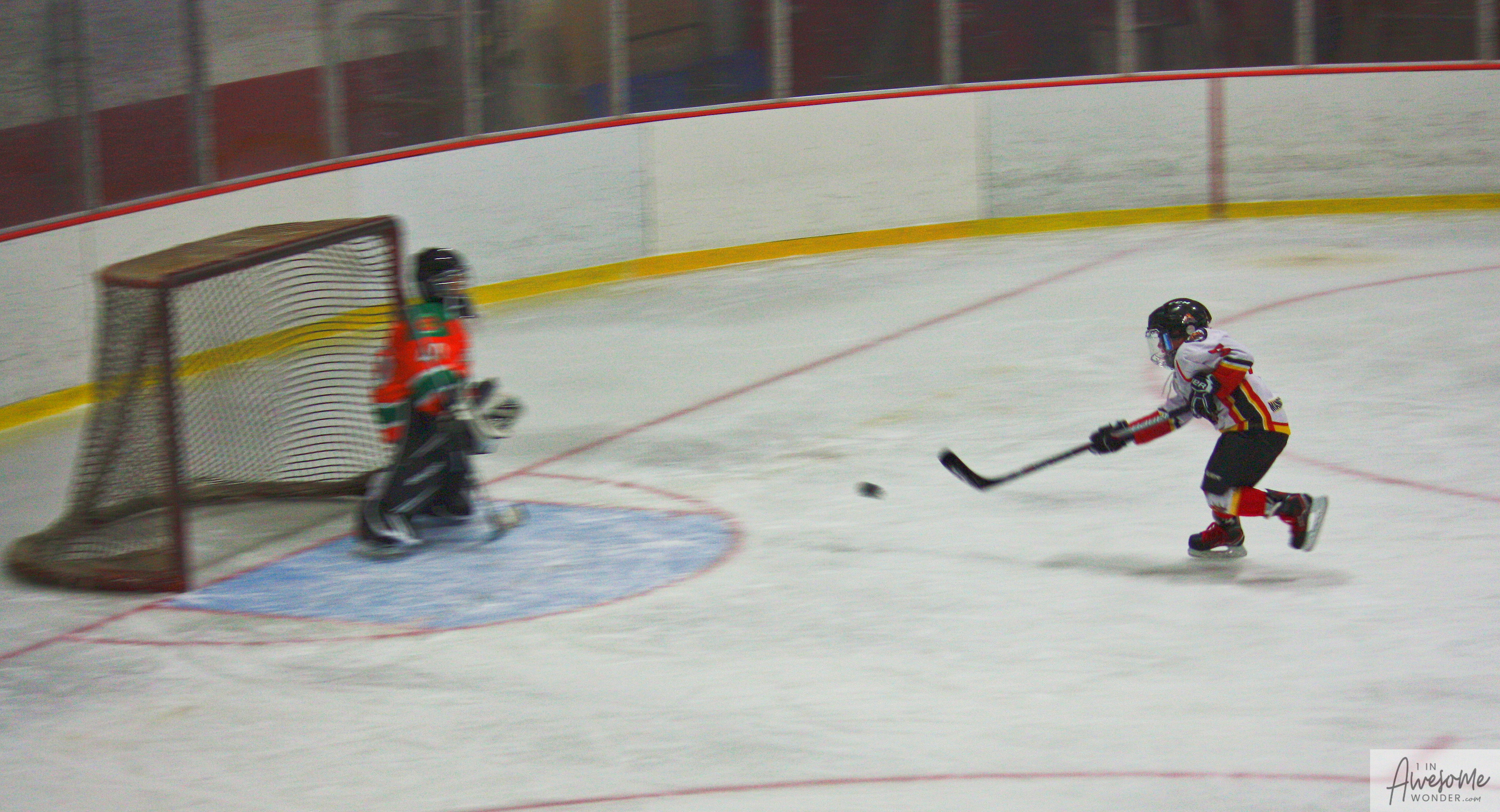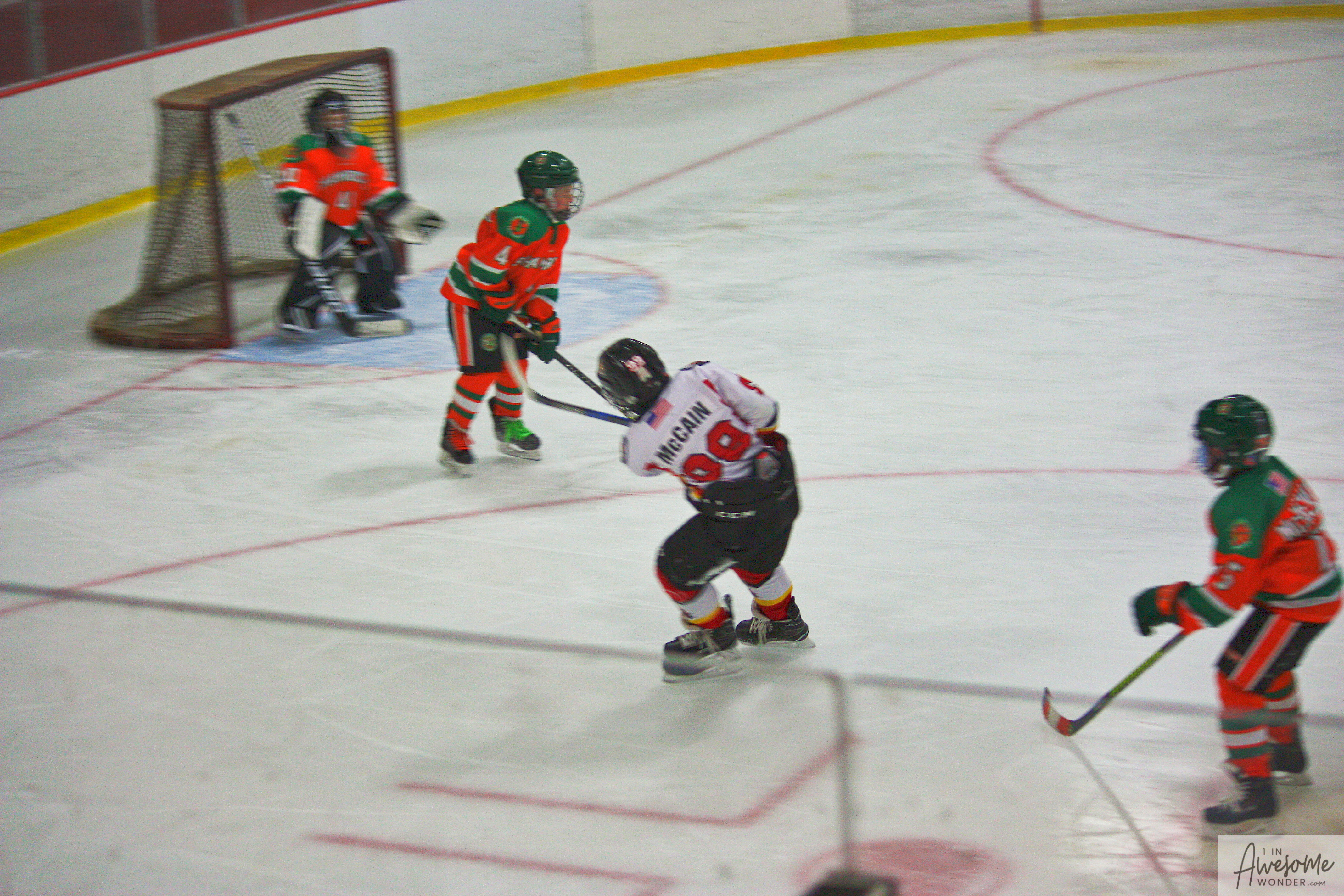 The temperature was 12 degrees Fahrenheit when we left the house at 6:30 this morning. It was frosty, cold, and early. By 7:30 am we were at Kasabuski Rink in Saugus, MA. The game started early, just before 8:30 am. The Flames fell behind 1-0, but had tied the game, 1-1 by the time the first period ended. When all was said and done, the Flames skated out of Saugus with a 7-4 victory.