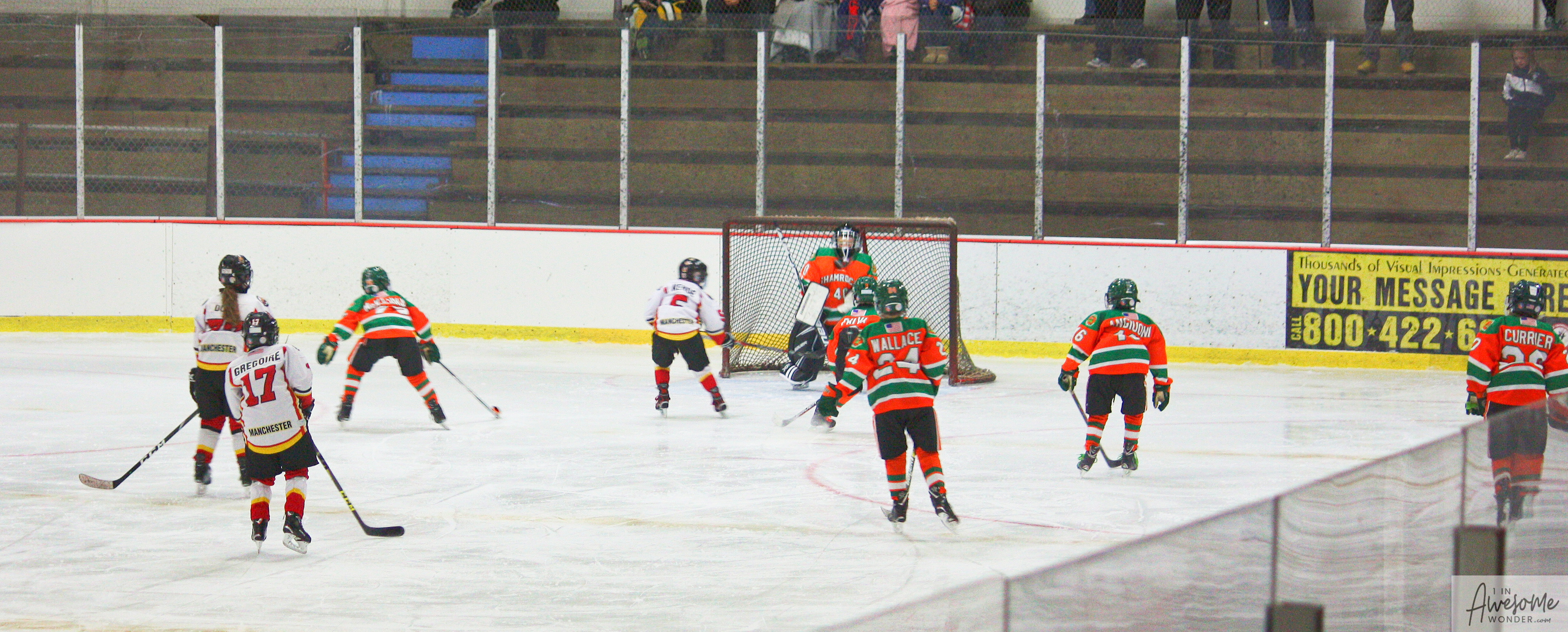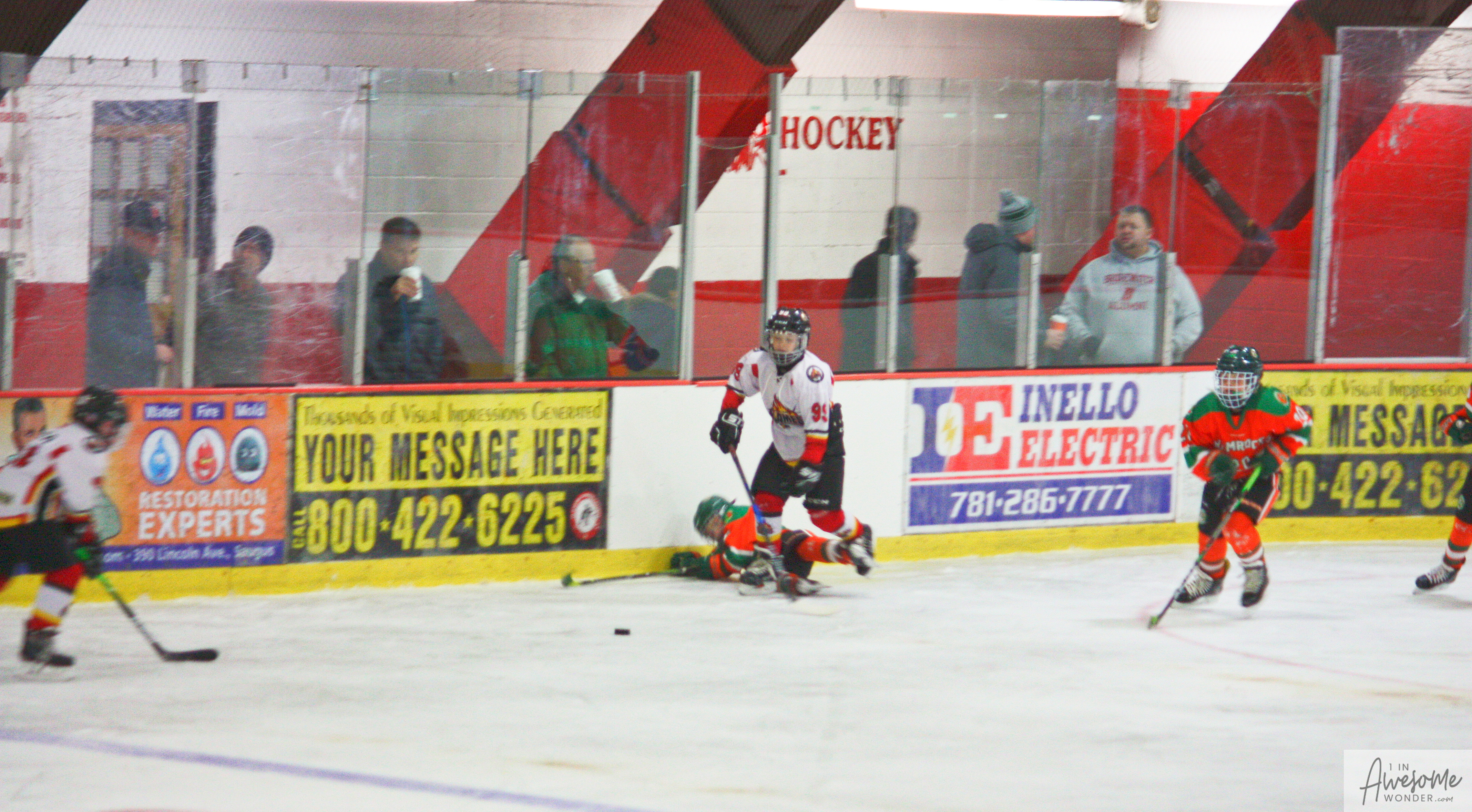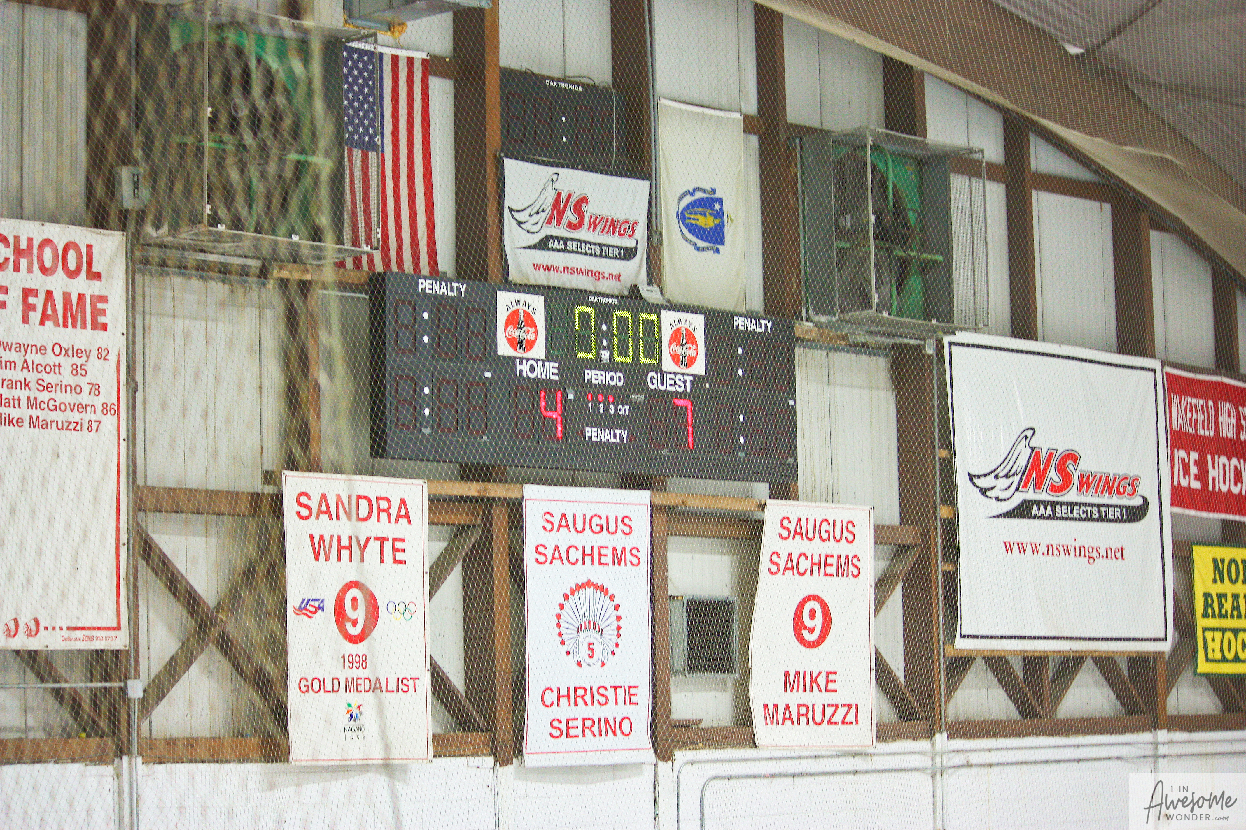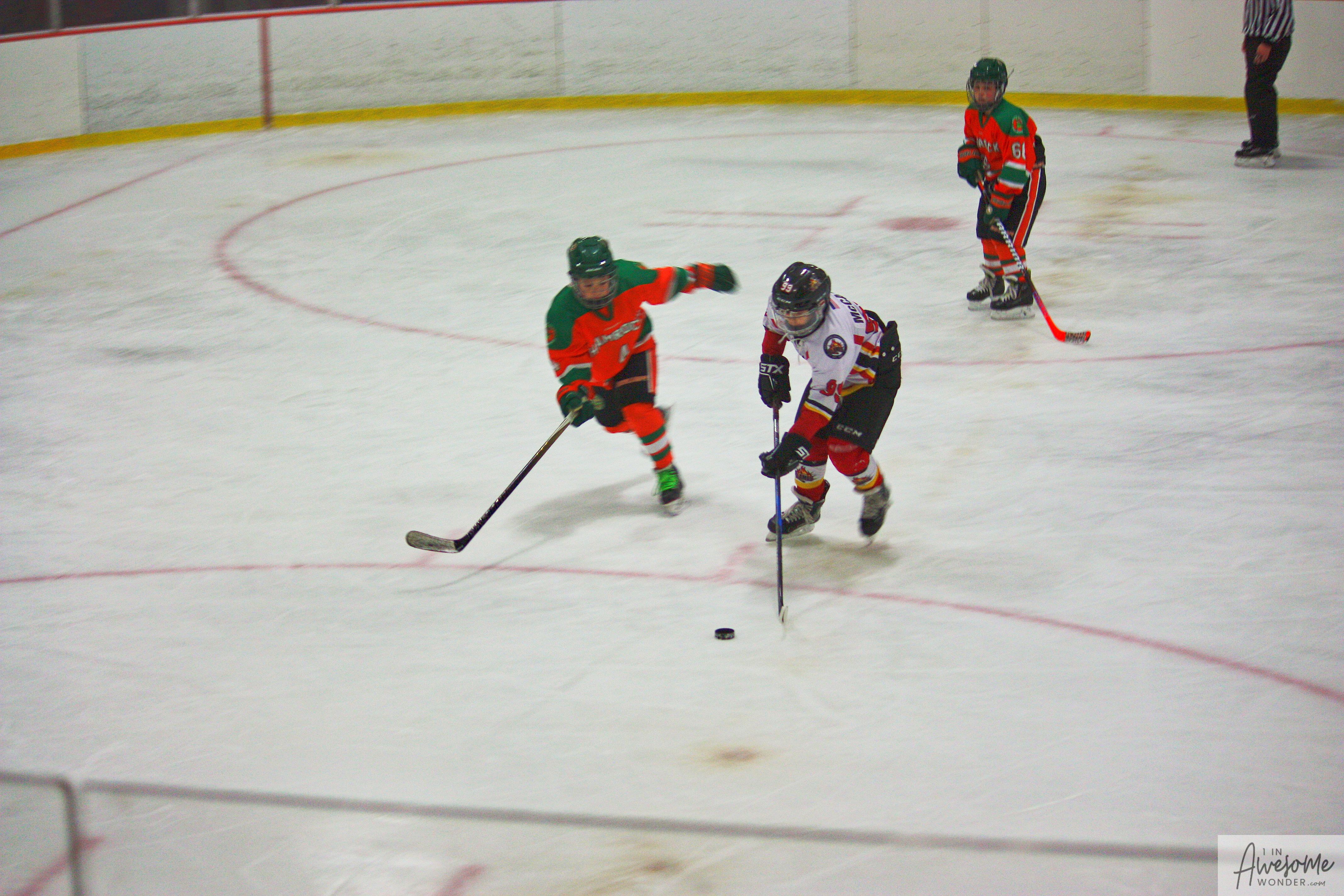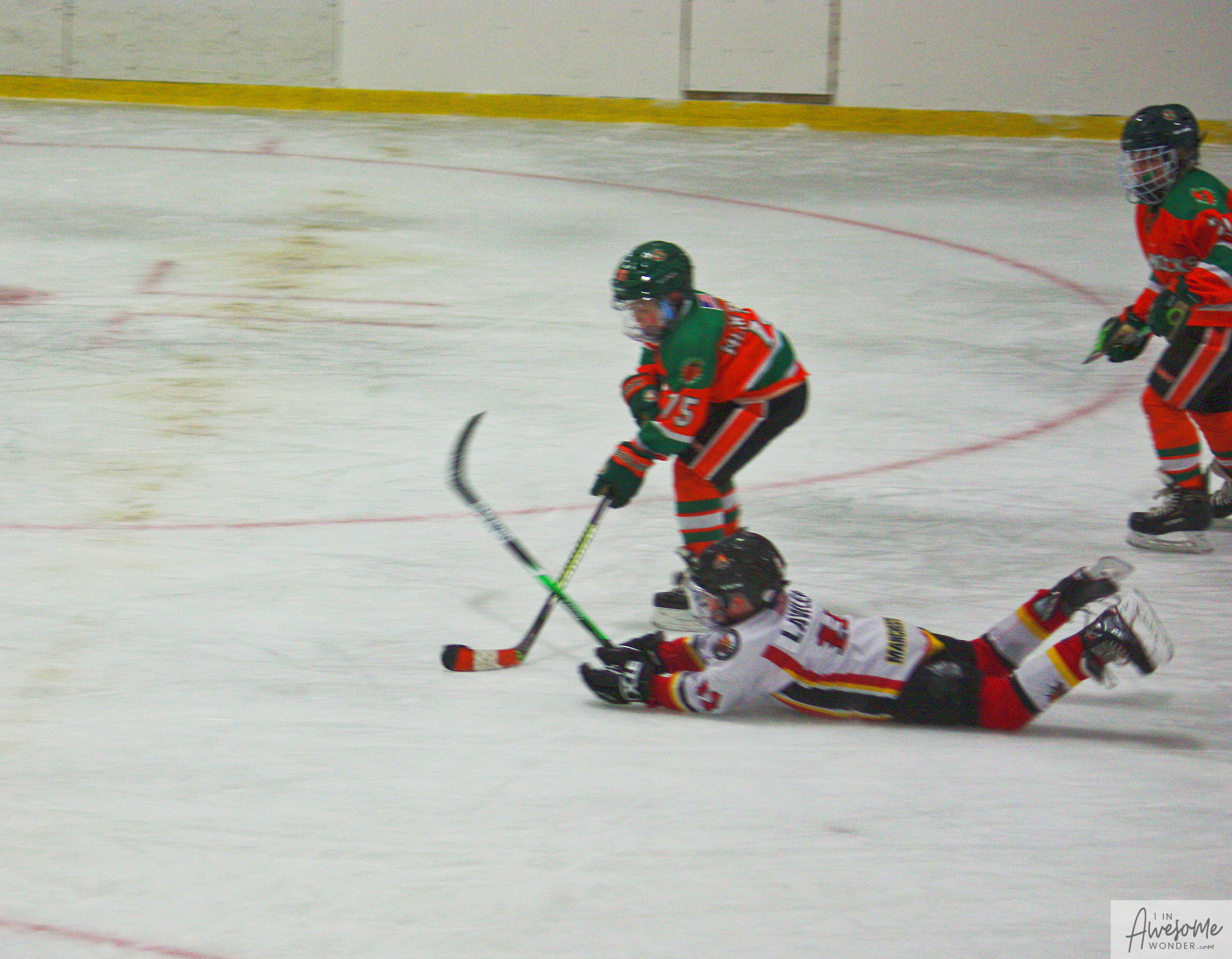 The temperature was 12 degrees Fahrenheit when we left the house at 6:30 this morning. It was frosty, cold, and early. By 7:30 am we were at Kasabuski Rink in Saugus, MA. The game started early, just before 8:30 am. The Flames fell behind 1-0, but had tied the game, 1-1 by the time the first period ended. When all was said and done, the Flames skated out of Saugus with a 7-4 victory.