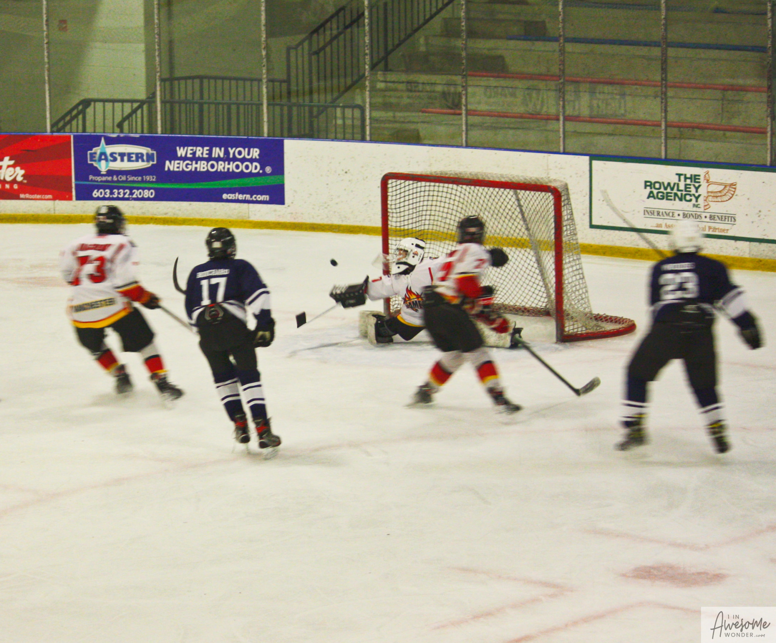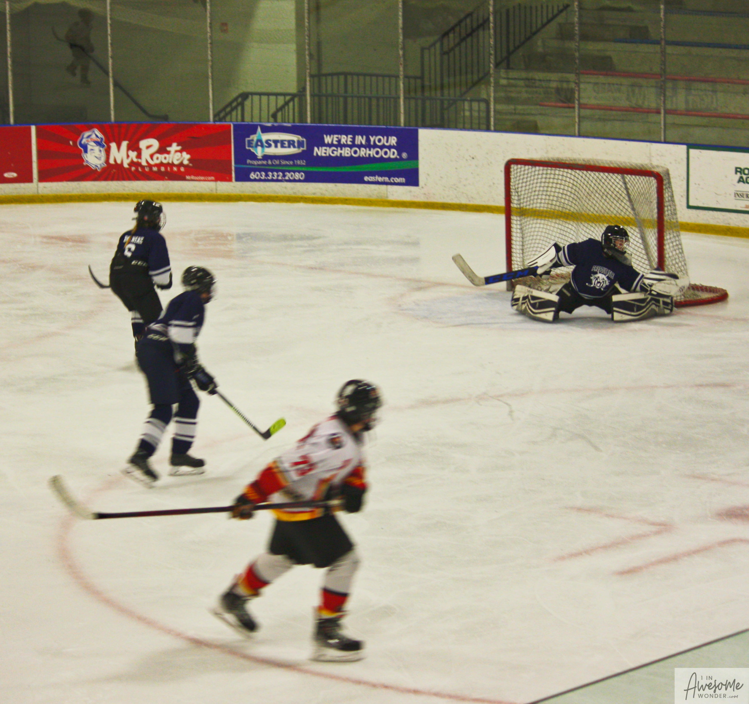 That was it. There was no more scoring in the game despite the offensive onslaught from the Flames. I don’t have rosters, or names of the players or coaches for the team from Aroostook County, but their goaltender was outstanding.