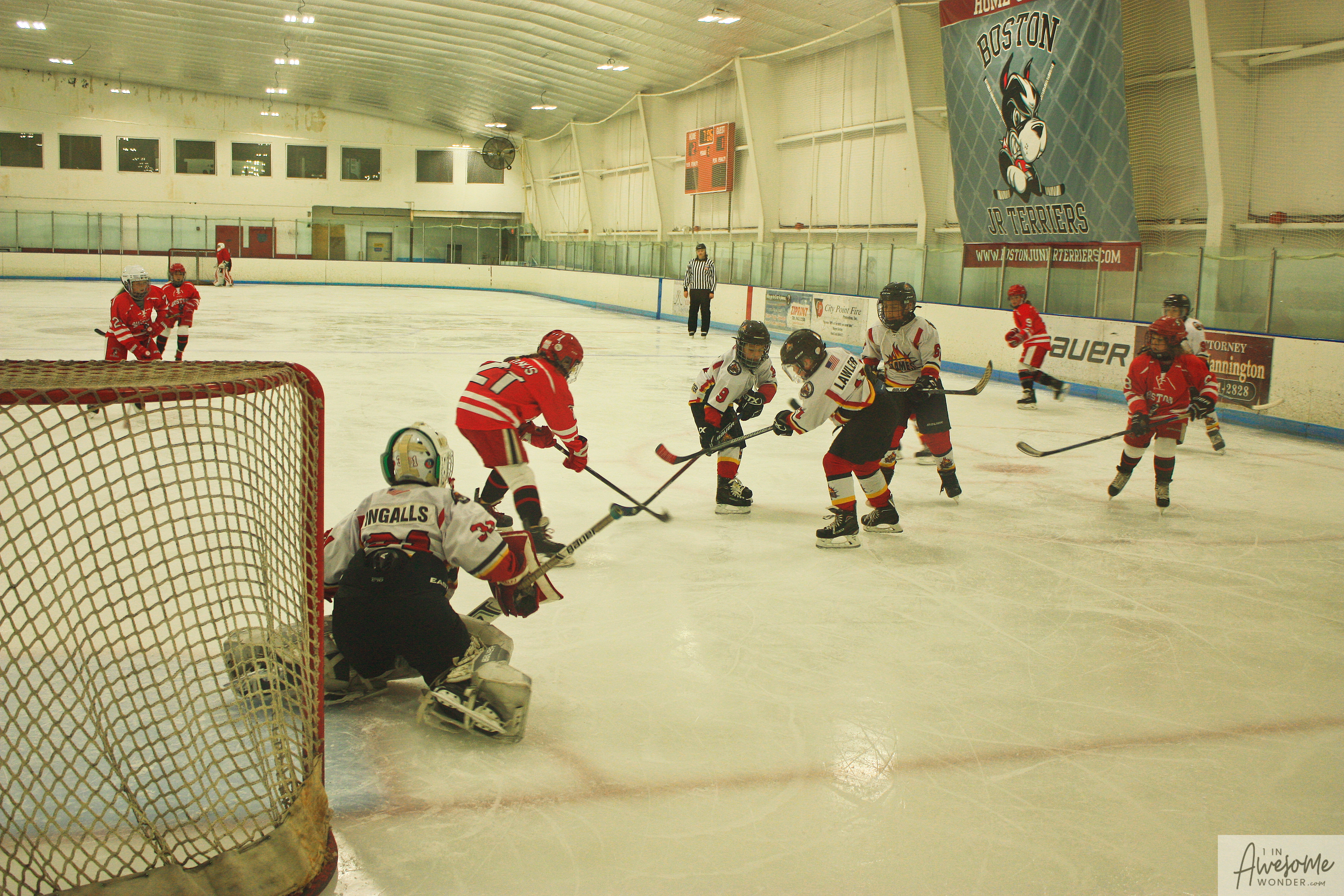 The game was a welcomed break from intense, heavy traffic to get past the routes to and from Boston. The result didn’t favor the visiting team from NH. Regardless of the score, the Flames group of kids gave a solid effort right until the final whistle. And that alone makes me smile. Enjoy some pictures from the game. My first attempt at hockey pictures in quite a few years. (click on the picture to enlarge)