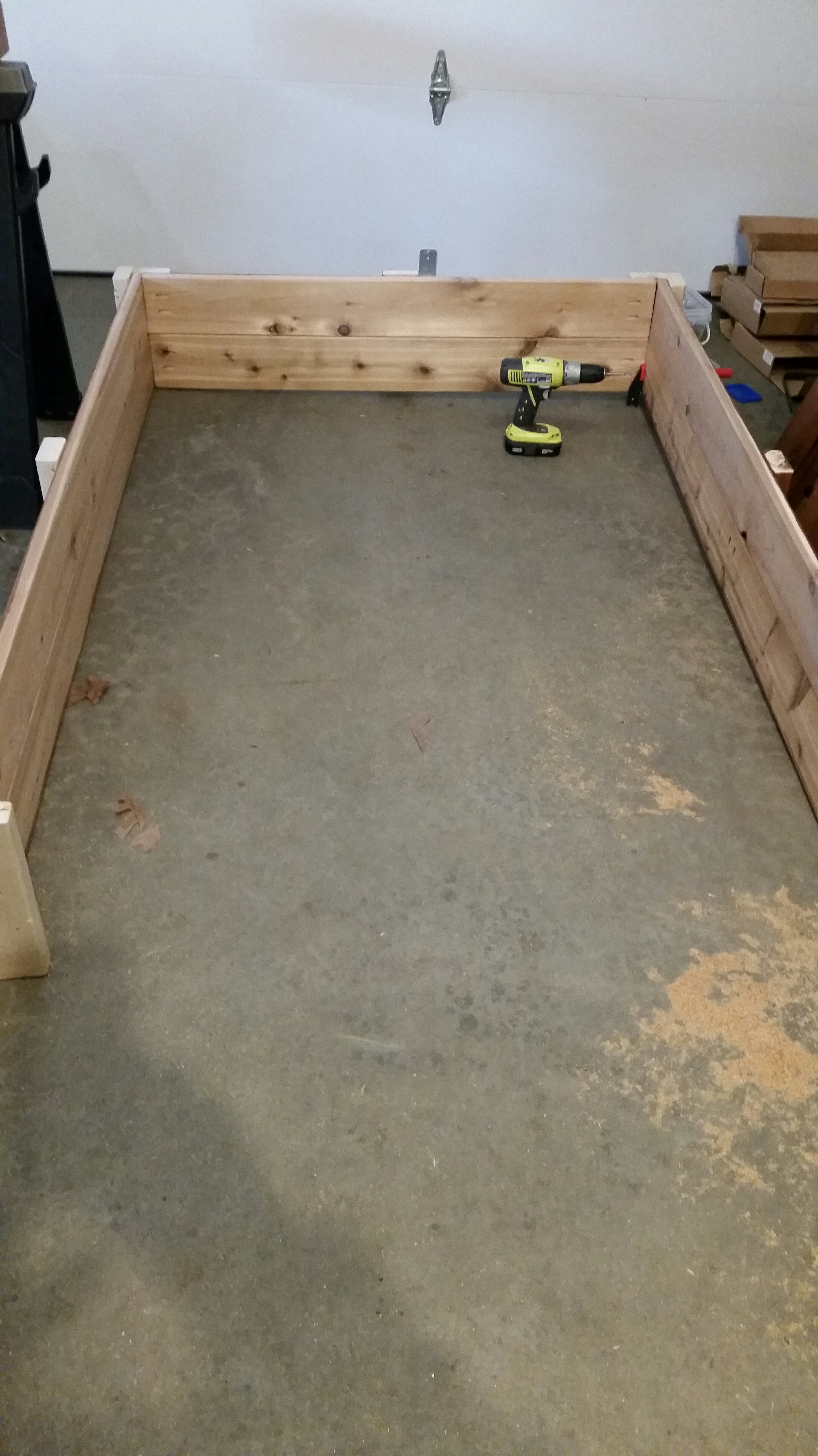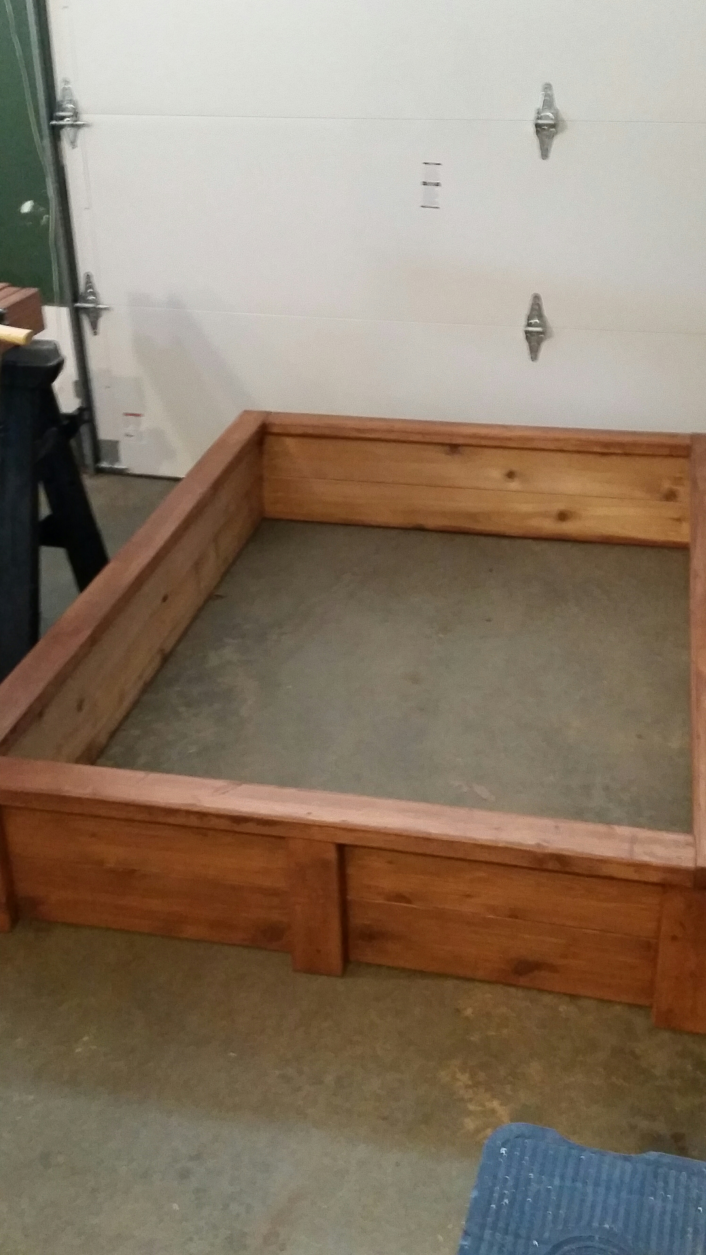 So, an innocent conversation with friends last year, about the possibility of having raised garden beds and whether or not they could place one on the side of a hill, turned into a woodworking project that has continued this year. It all started with manufacturing the sides and ends by cutting and combining boards to get walls that were 12″ deep. Then some pilot holes, support for the corners, and a 3 1/2″ lip all the way around (to lean on or sit on), and I had a finished product.